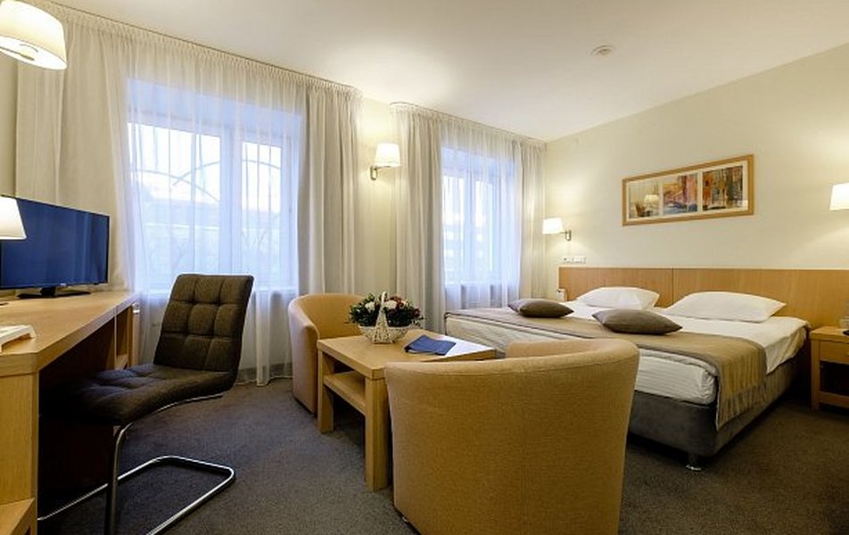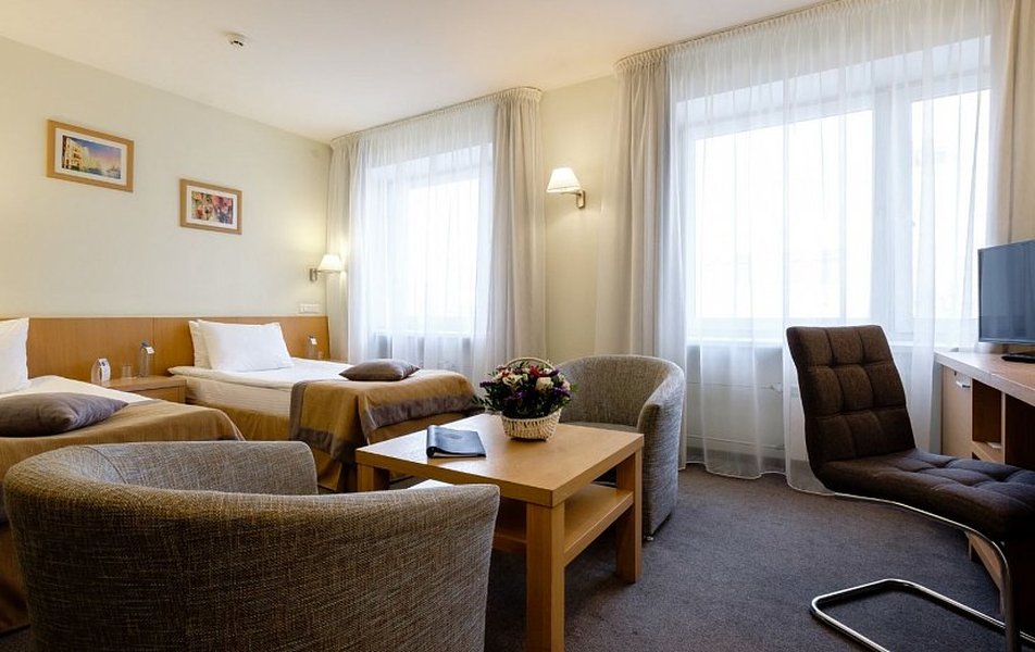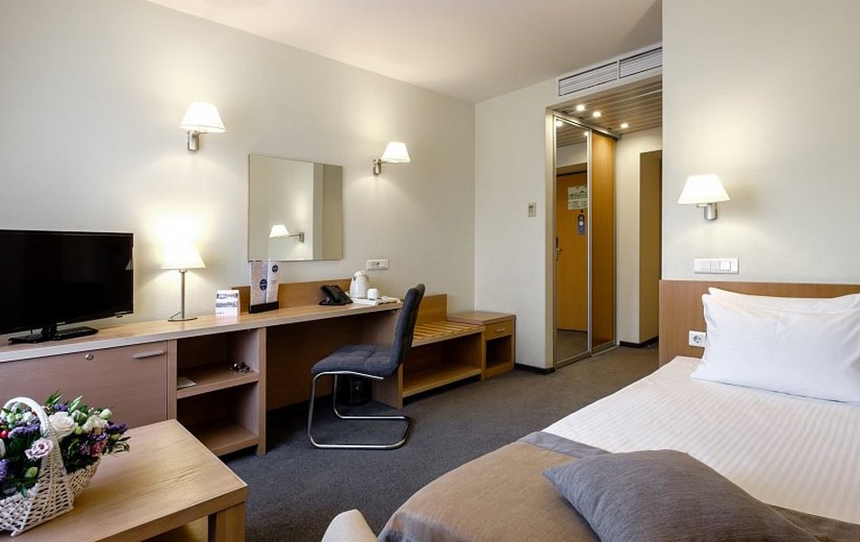 Пребывание в отеле началось сразу наперекосяк нас заселили в номер отличный от забронированного (в полтора раза меньше с душевой кабиной). Почему не заселили сразу в забронированный номер загадка т. к. номера в наличии были. - Что касается номера: номера уставшие, ремонта давно не видевшие, кресла полу-рваные со следами каких то разводов, в бронировании была указана двуспальная кровать, по факту 2 одинарные сдвинутые т.е. посередине образуется провал. Останавливались на 4 ночи, искать другой отель уже сил не было, да и ехали далеко поэтому хотелось поскорей привести себя в порядок и идти смотреть город. На третий день возвращаясь после поездки загород выяснилось что машины нет в списках на парковку что удивительно, так же ключи в номер не активны пришлось возвращаться на ресепшен просить их активировать( ключи не могли сами размагнитится т.к. лежали отдельно от смартфонов техники или других карт); уборка за время пребывания делалась один раз, когда убрали использованные полотенца с пола и то есть ощущение что их просто сложили и положили на полку (полотенца видимо от срока использования уже желтоватые, потрепаные, нитки торчат, местами пятнышки); вода бутилированная является комплиментом отеля поэтому дается только при заезде, как позже выяснилось видимо так же чай (2 пакетика черного и 2 зеленого), туалетная бумага, так как ничего из этого не пополнялось т к и уборки то не было. После того как подошли на ресепшен попросить нам великодушно положили еще 1 пакетик черного и 1 пакетик зеленого чая. Поздно вечером несколько раз звонил стационарный телефон в номере, как только вставали чтобы ответить, звонки прекращались. Если у вас возникают вопросы обращайтесь на ресепшен , серьезно с таким количеством проблем проще уже не селиться в отель или уже переезжать жить на ресепшен. Завтраки однотипные, шведский стол но изо дня в день меняется только 1 гарнир или горячее, на третий день приедается. После описания проблем при выезде нам предложили кофе и десерт как комплимент. Это уже было вишенкой на торте сюра всего происходящего. За свои деньги абсолютно не стоит. При заселении нам несколько раз сказали , что являются трехзвездочным отелем и четко соблюдают стандарты, получается не соблюдают, все стандарты дальше ресепшен не уходят.