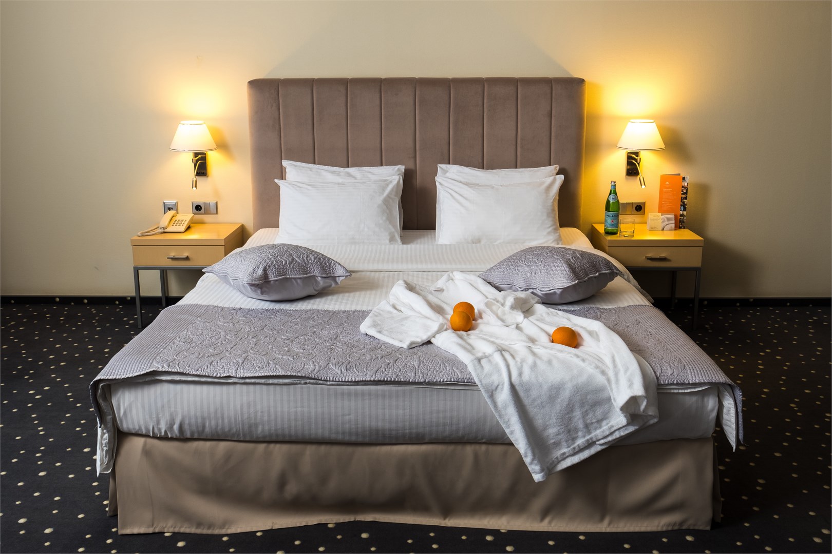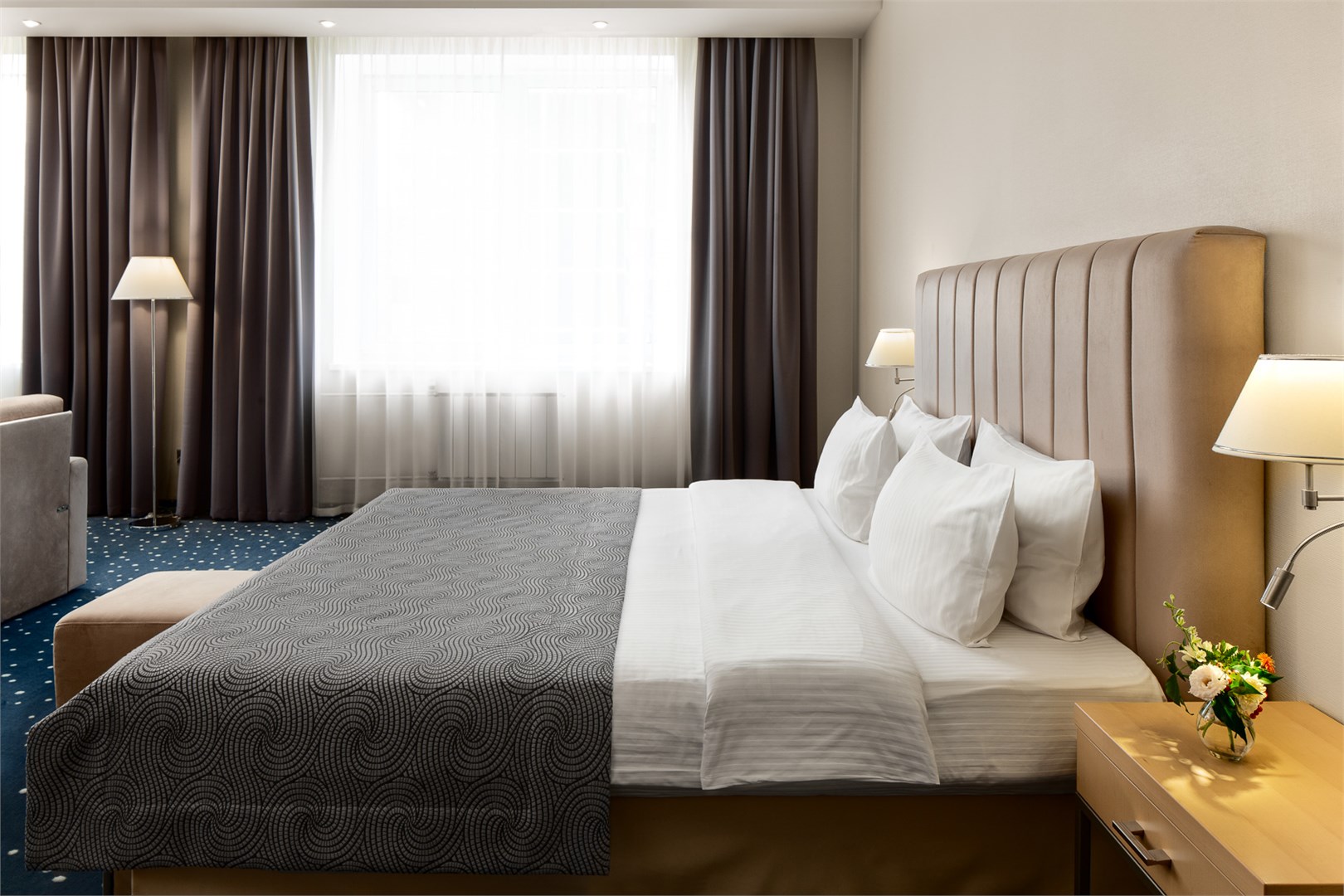 Проживали в отеле две ночи семьей с двумя детьми дошкольного возраста, разместились в двухкомнатном номере Люкс на седьмом этаже. Прекрасный, просторный номер, для второго ребенка поставили дополнительное спальное место, получилось очень комфортно, двуспальная кровать в спальне и в гостиной диван и хорошая раскладушка. Номер чистый, подушки и матрацы удобные, все спали сладко, никаких посторонних шумов не слышали, тишина. Ванная комната отличная, все принадлежности хорошего качества. Завтраки вкусные, каждый найдет на свой вкус что-то, дети кушали с удовольствием и кашу и запеканки, это для меня показатель, они у нас привереды)) Персонал вежливый и приветливый, в целом атмосфера в отеле очень располагающая. Отель однозначно рекомендуем, мы прекрасно провели время.