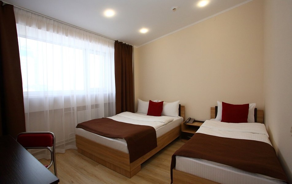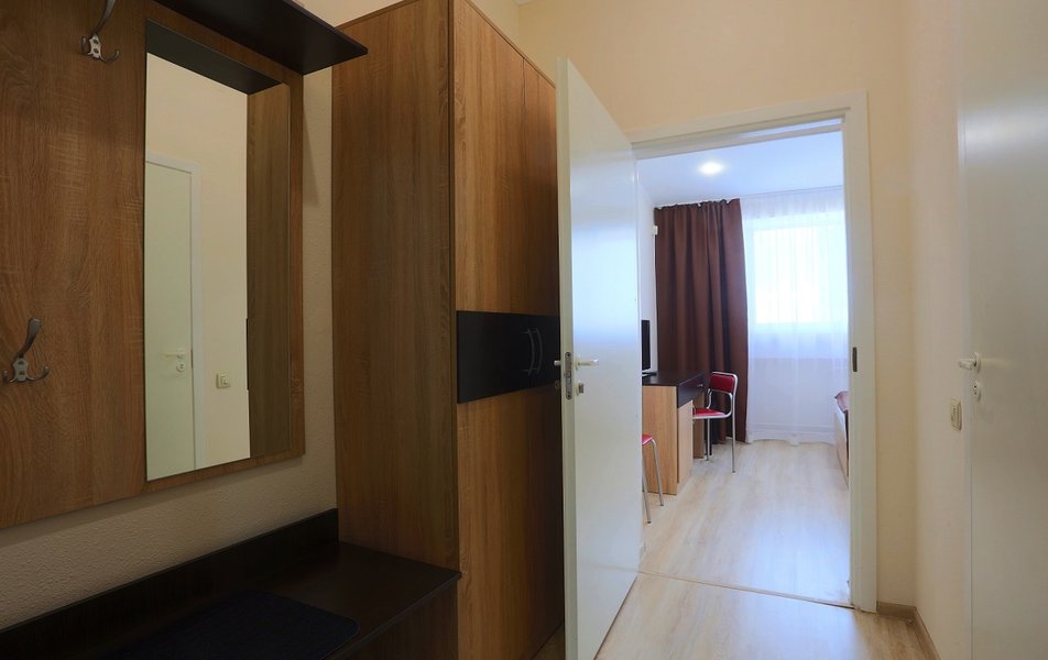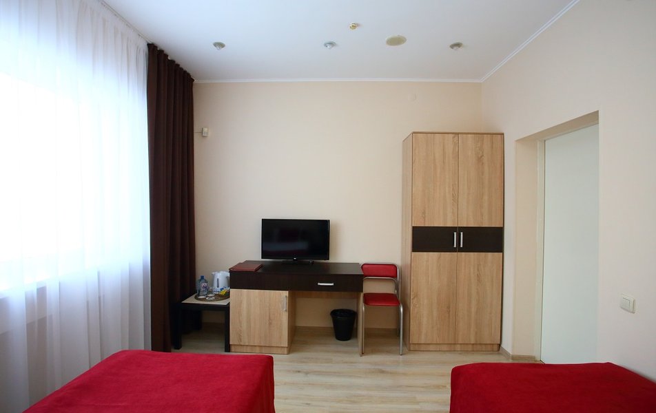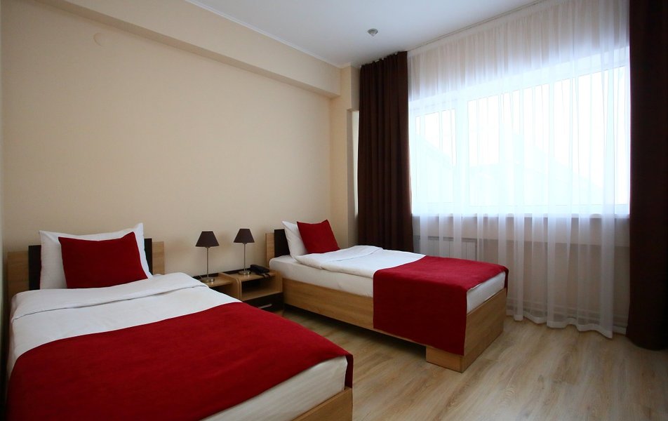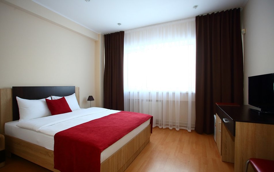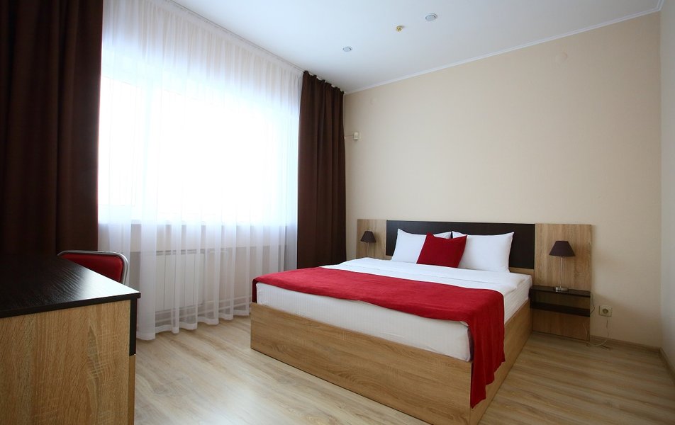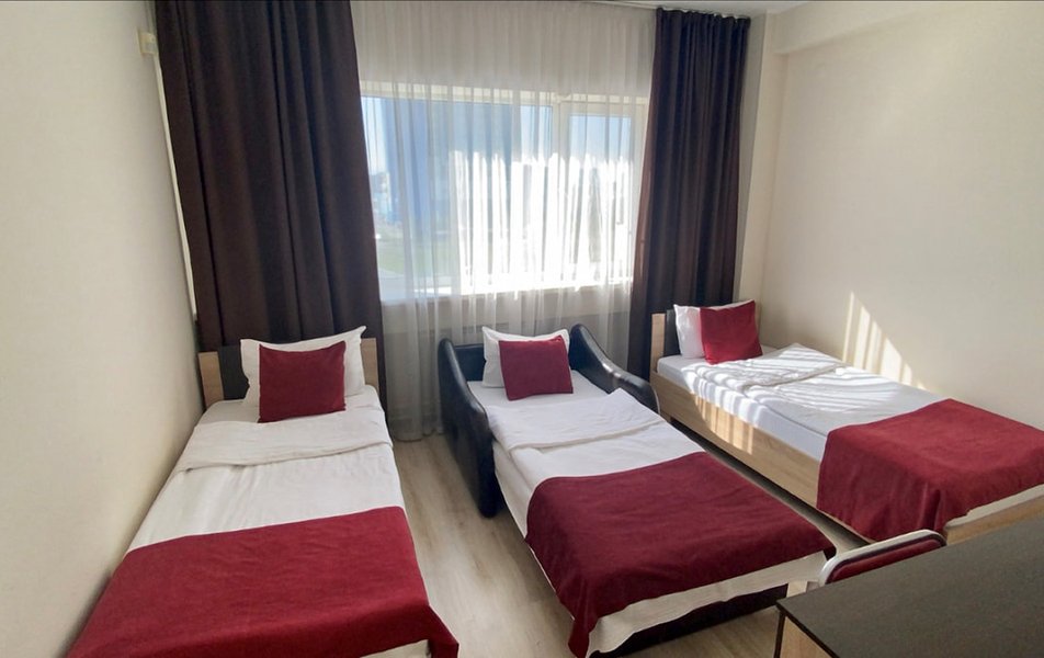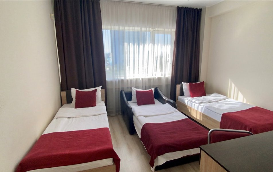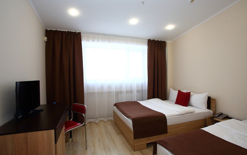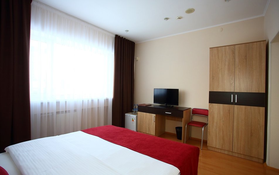 Удобное расположение. Вежливый персонал. В номере чисто. Комфортный отдых обеспечен. Так же на третьем этаже есть кафе, кормят вкусно и недорого. В шаговой доступности есть аквапарк, в отеле можно приобрести абонемент со скидкой. Рядом остановка транспорта.