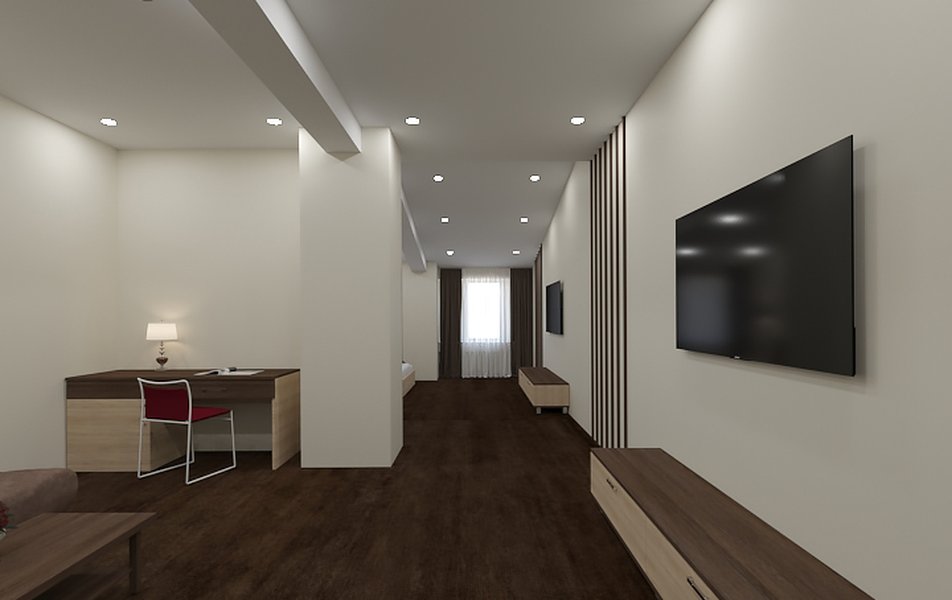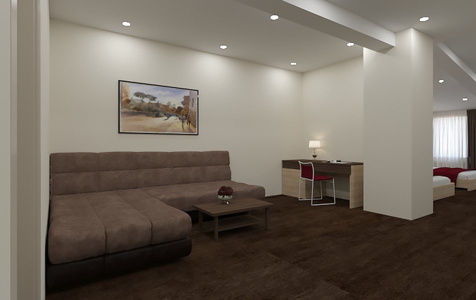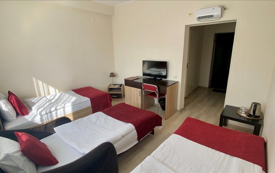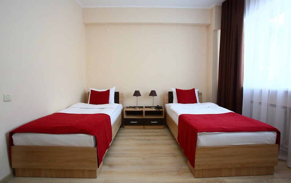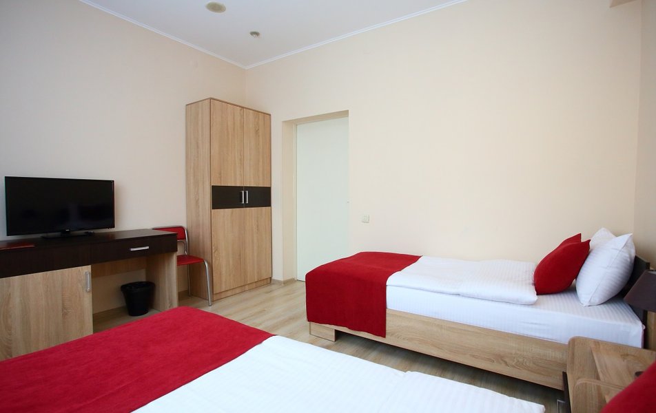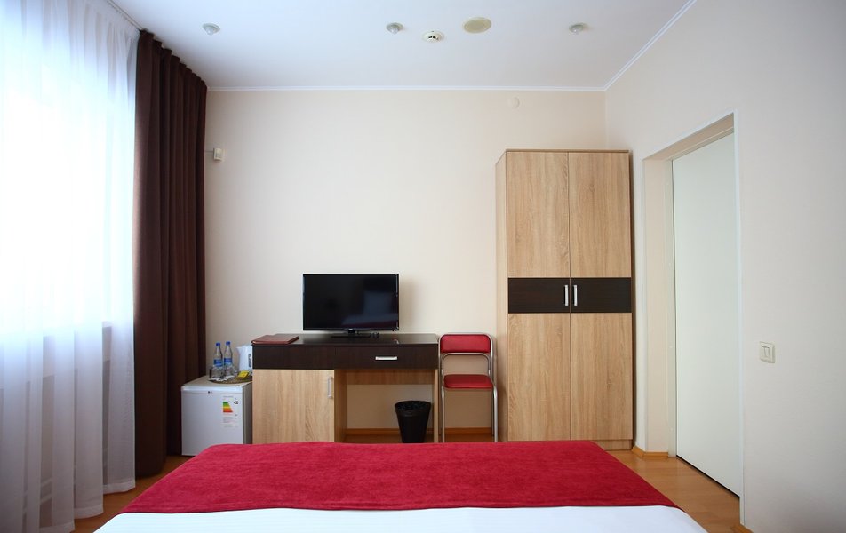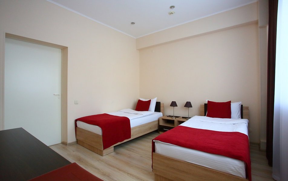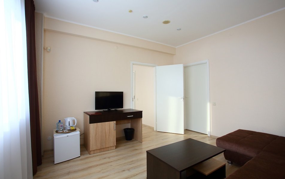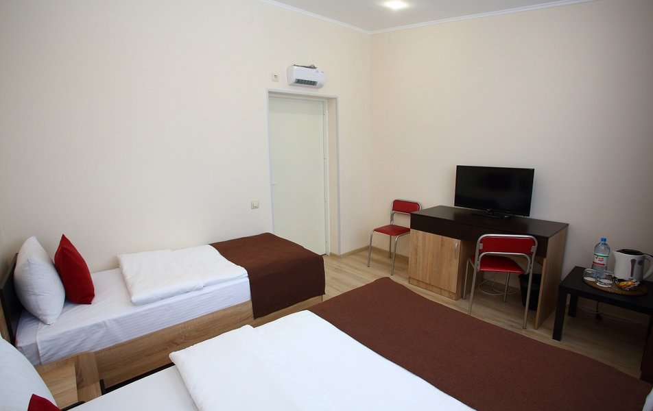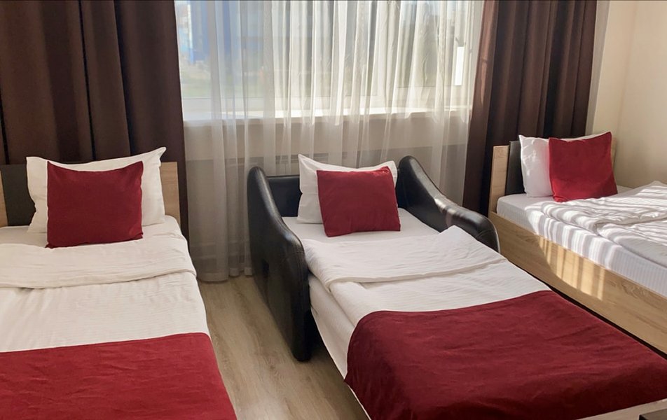 Удобное расположение. Вежливый персонал. В номере чисто. Комфортный отдых обеспечен. Так же на третьем этаже есть кафе, кормят вкусно и недорого. В шаговой доступности есть аквапарк, в отеле можно приобрести абонемент со скидкой. Рядом остановка транспорта.