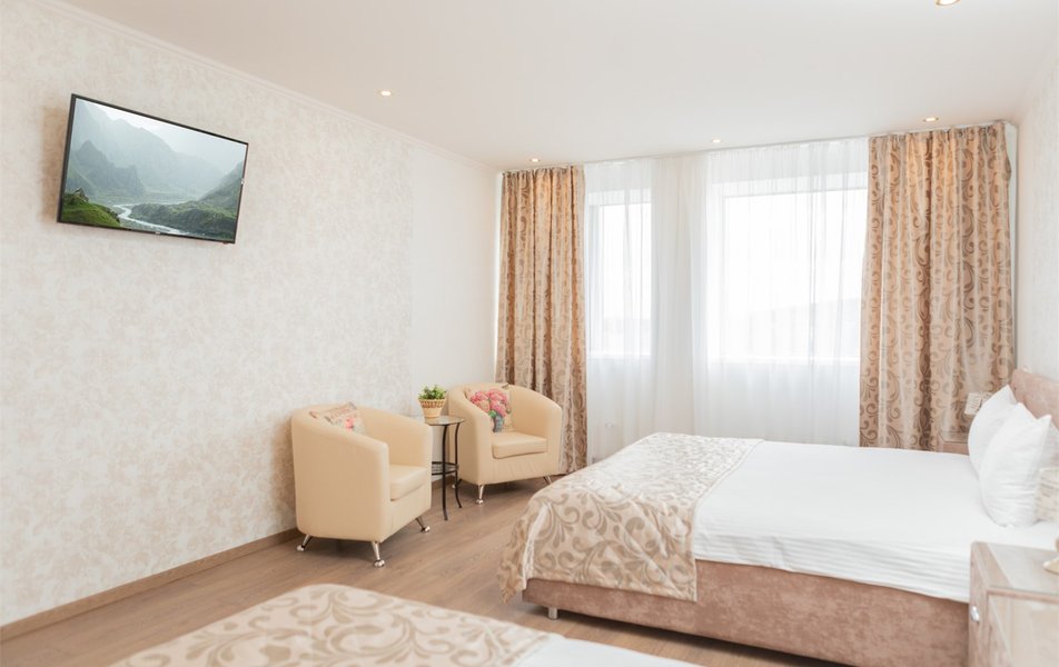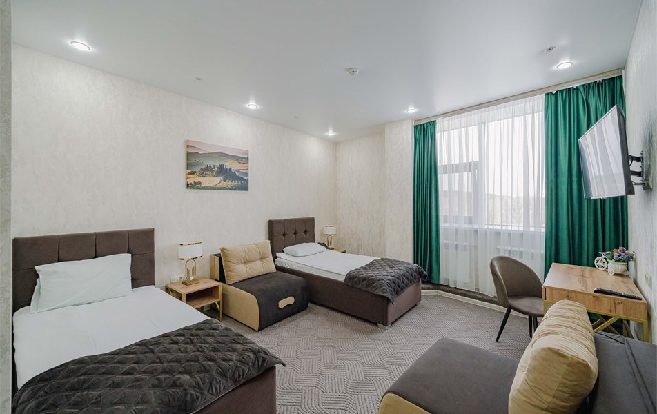 Останавливались в данном отеле уже второй раз. Максимально удобное расположение, мы приехали с Челябинска и чтобы добраться до отеля не нужно проезжать весь город. Отличные номера, тихо, уютно, комфортно, кровати удобные, есть все необходимое для отличного отдыха! А вот персонал, это прям отдельная благодарность! Клиентоориентированность на высшем уровне! Первый раз мы останавливались в одном номере и второй раз хотели остановиться именно в том же, но не помнили в каком, так девушка мне скинула фото всех номеров, чтобы я могла найти именно тот и получилось найти! Обязательно вернёмся ещё!