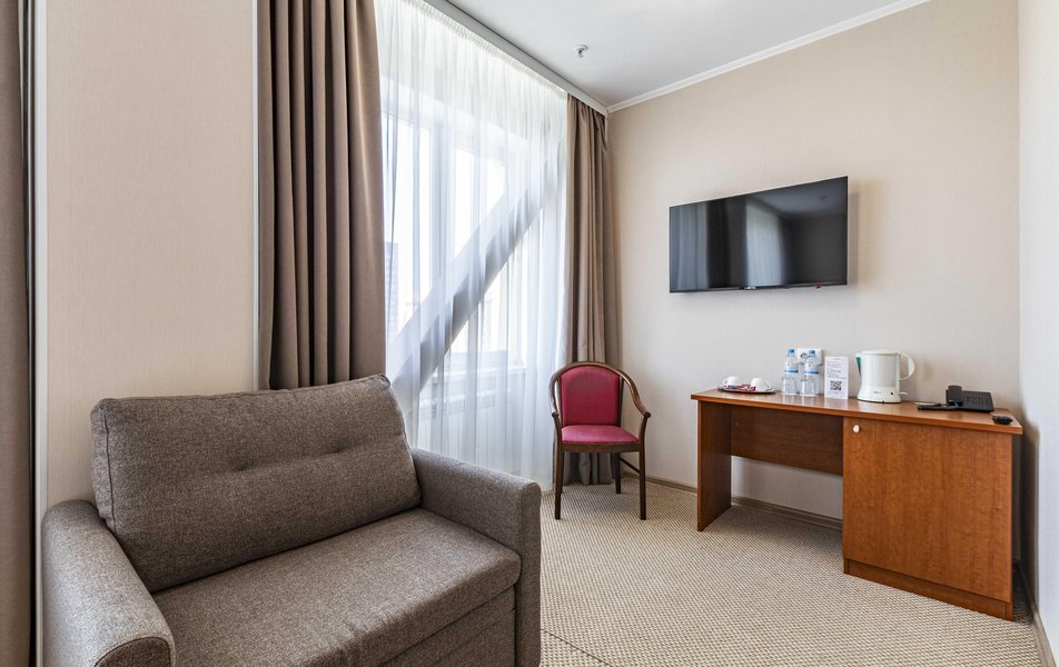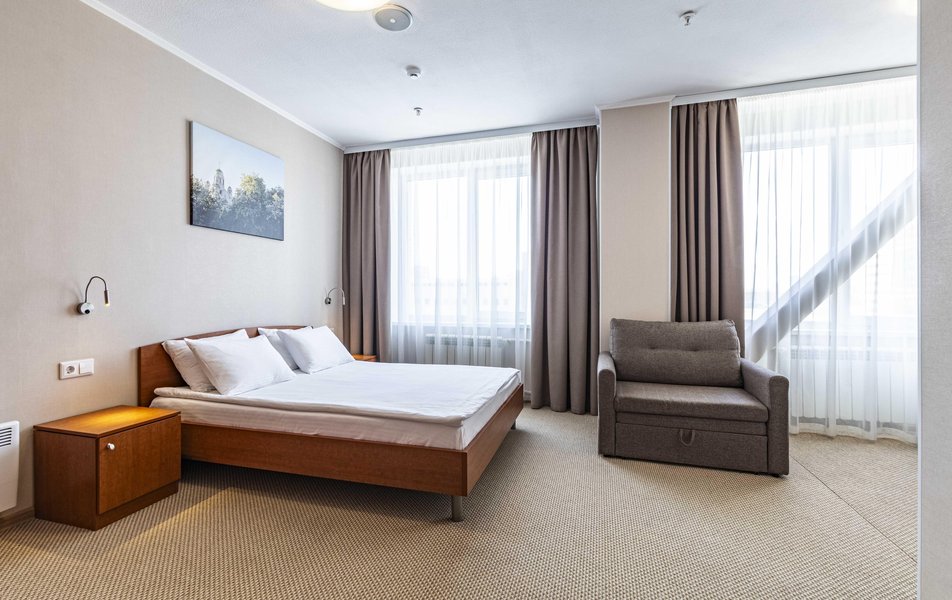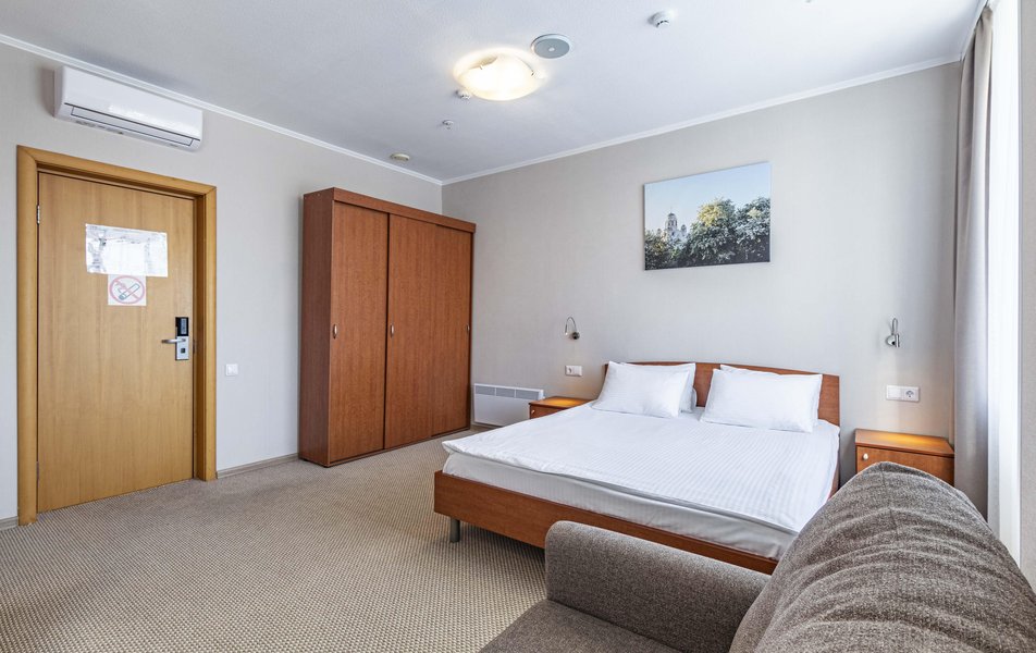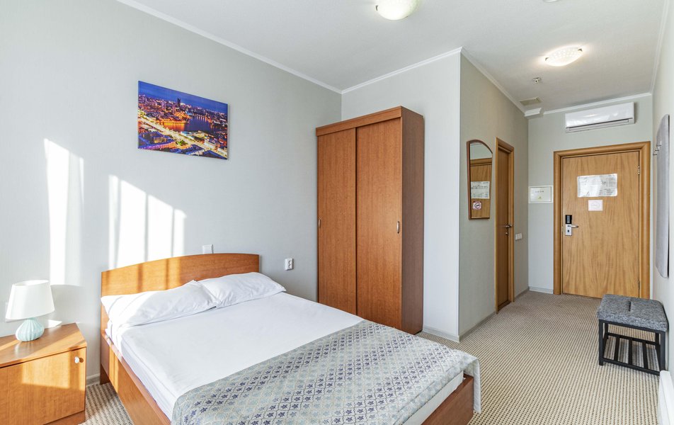 Отель удобно расположен на пересечении Фурманова- Московской. Проходил лечение в этом районе, чтобы не тратить время на дорогу и пробки, снял стандартный номер на полдня без еды. Из окна отличный вид на областной суд. Понравилось: чисто, есть холодильник, чайник, телевизор. В туалетной комнате в хорошем состоянии сантехника, всё блестит. Обратил внимание на слышимость между номерами, возможно потому, что проживал только днем. Ну, и февраль у нас в этом году очень холодный, было прохладно в номере. Отдельное спасибо администратору Анне, приветливая, вникла в ситуацию, что у меня серьёзное лечение, оформила номер, быстро разместила. Приятно встретить профессионала! Благодарю.