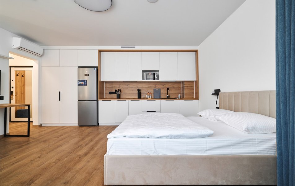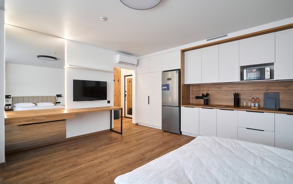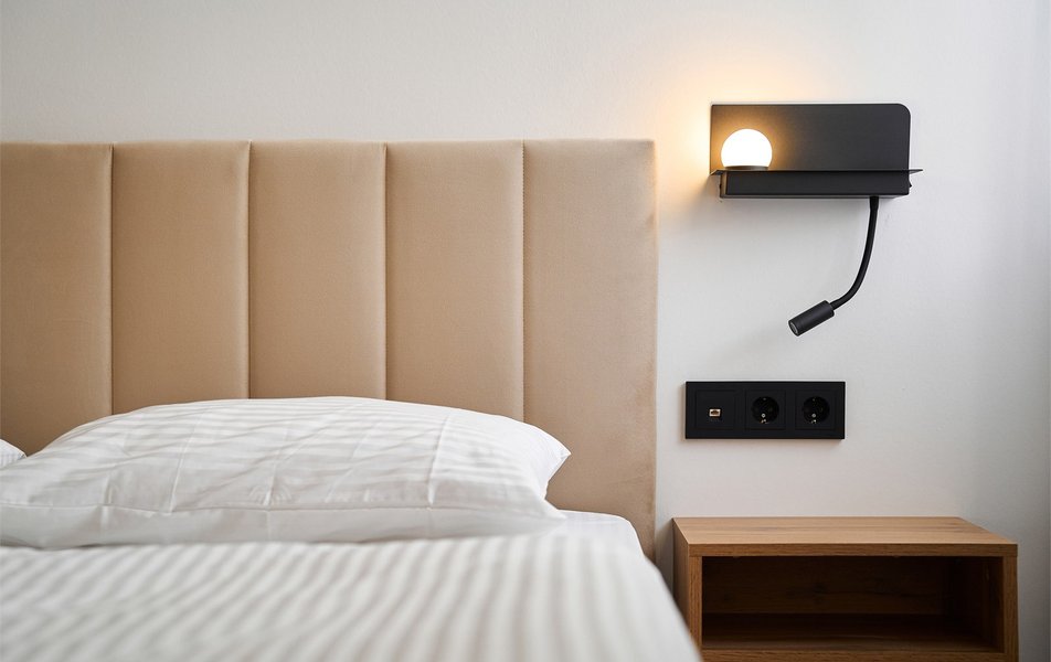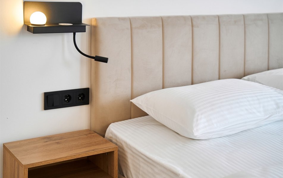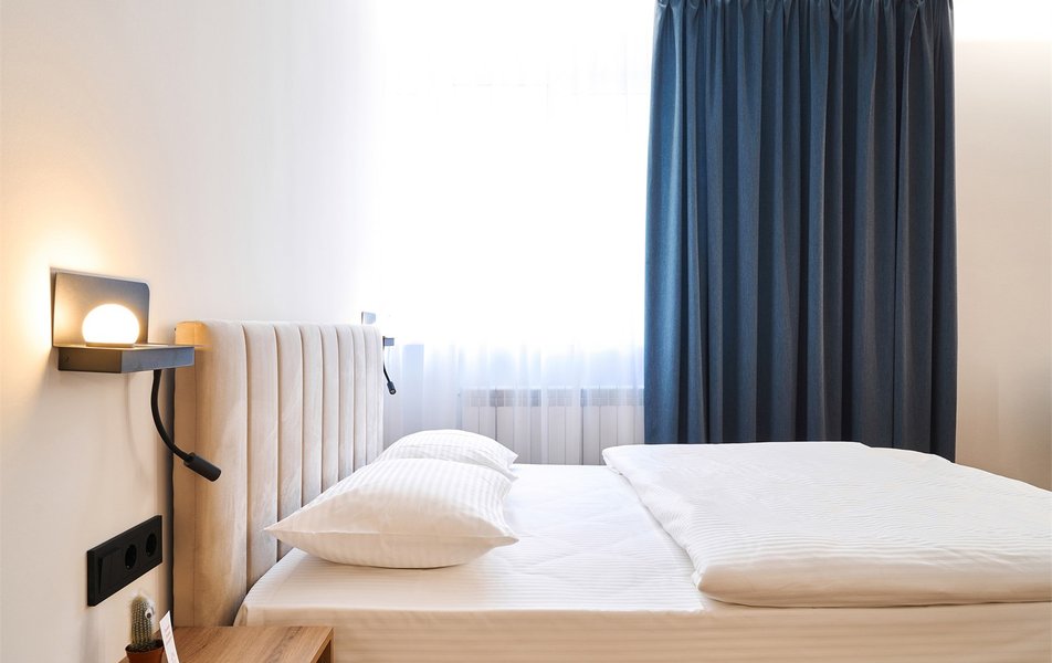 Из минусов - в описании номера указан сейф, по факту его не было, так как приходилось либо носить рабочие ноуты с собой, либо оставлять на ресепшн, но для этого нужно было составлять акт. Двуспальная кровать - это две односпальные, приставленные друг к другу, то есть между ними деревянный бортик, спать было не очень удобно. Из плюсов - очень гостеприимный персонал, в номере чисто, завтраки достаточно вкусные и сытные, хоть и однообразные.