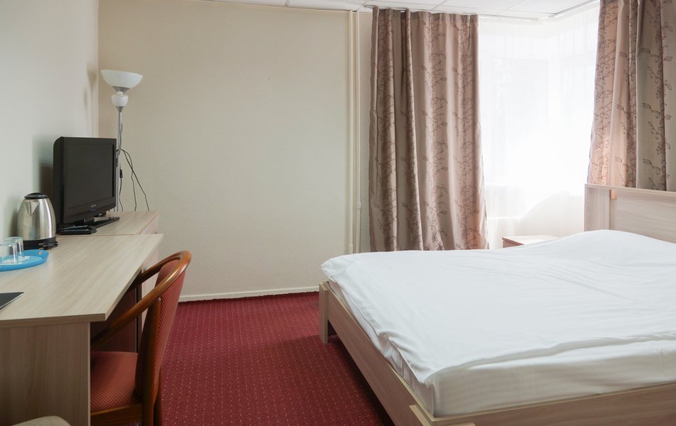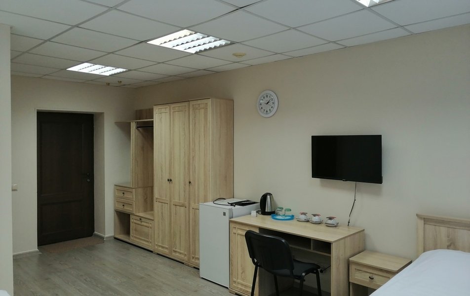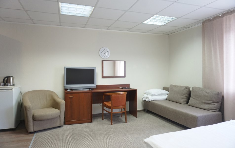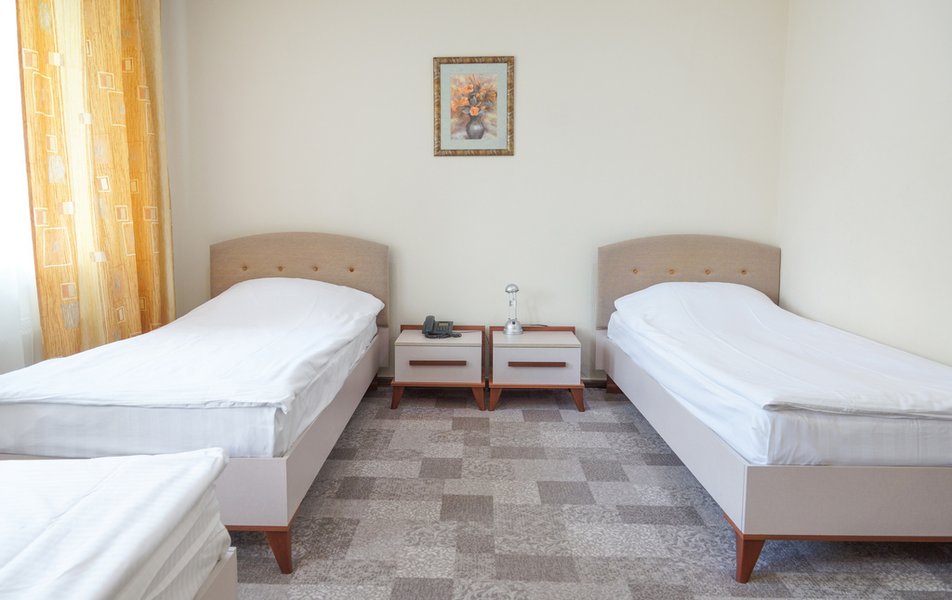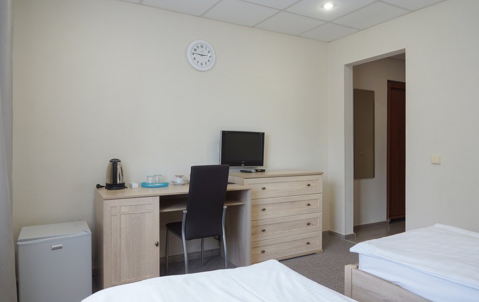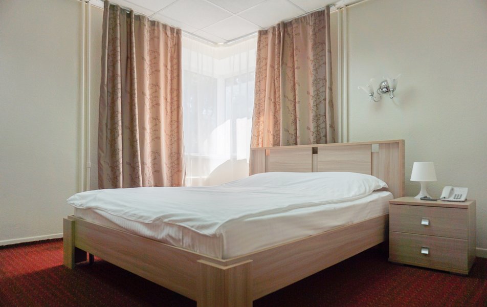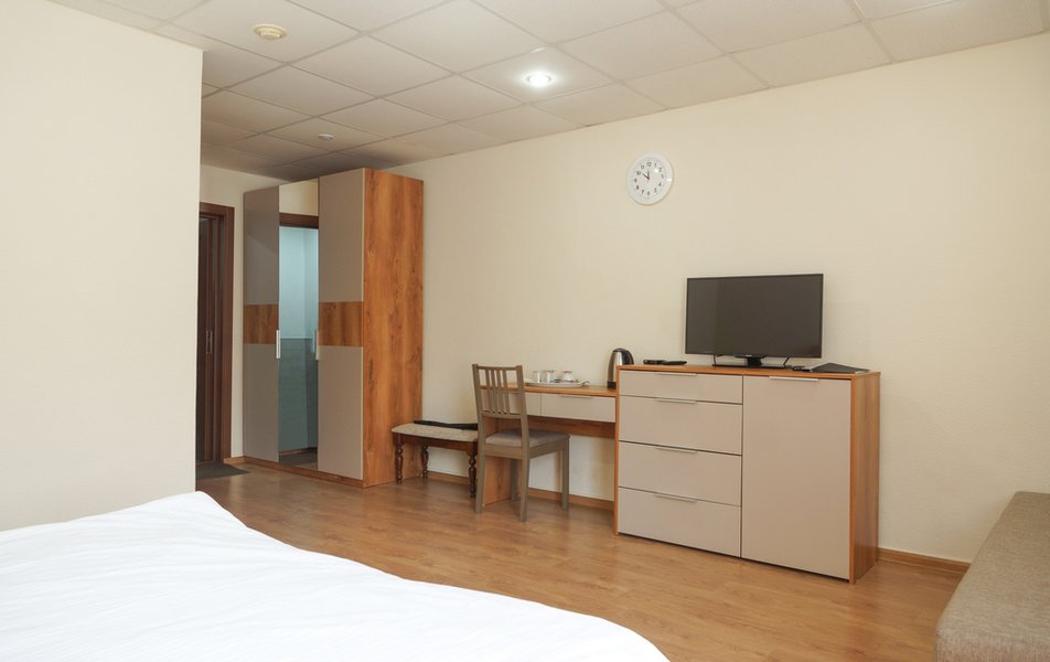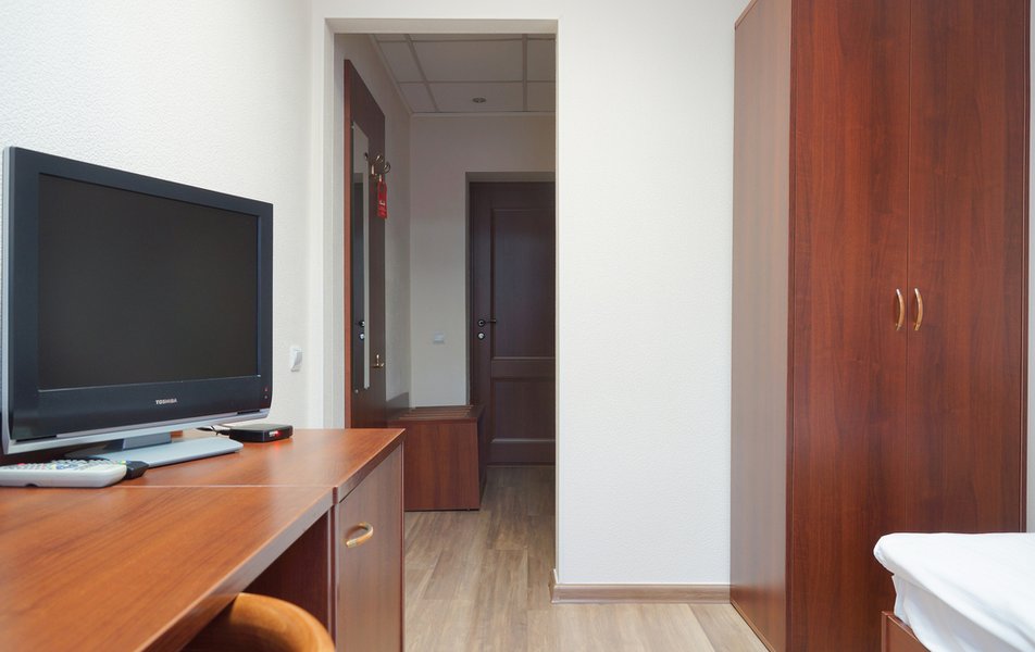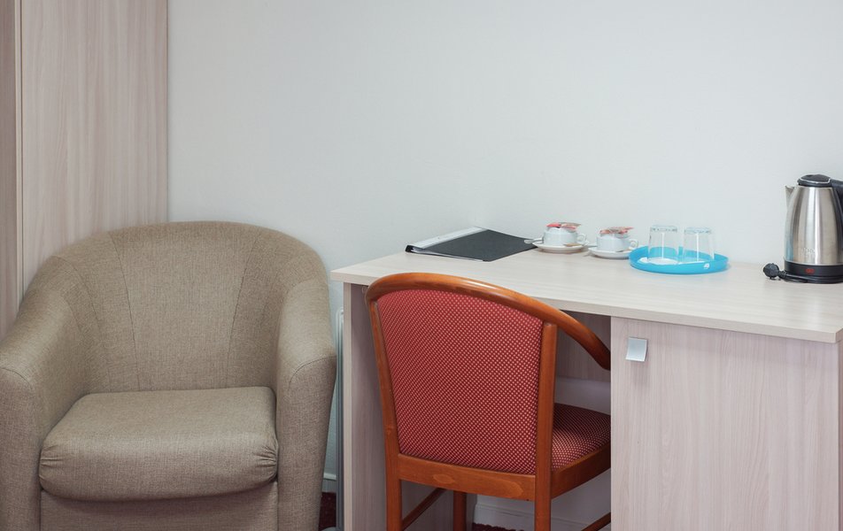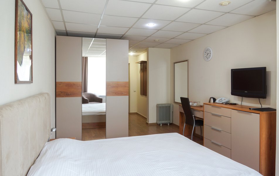 Стандартный 1-местный Количество комнат: 1-комнатный Тип номера: Стандартный Кол-во основных мест: 1 Площадь (кв. м): 14 Мебель: вешалка, зеркало, кровать односпальная, прикроватная тумбочка, стол, стул, шкаф Оборудование: мини-холодильник, телевизор, телефон, чайный набор посуды, электрочайник Санузел: с душевой кабиной, тапочки, туалетные принадлежности, фен Сервис: Wi-Fi бесплатно, смена полотенец, смена постельного белья, уборка номера, услуги внутренней телефонной связи
