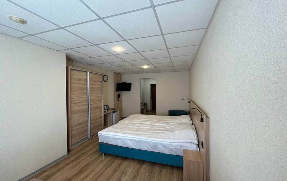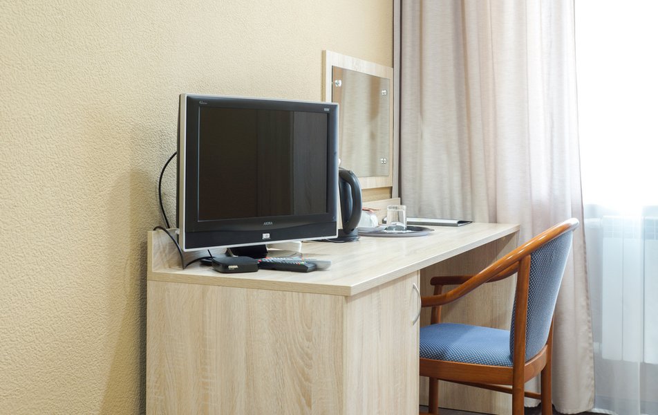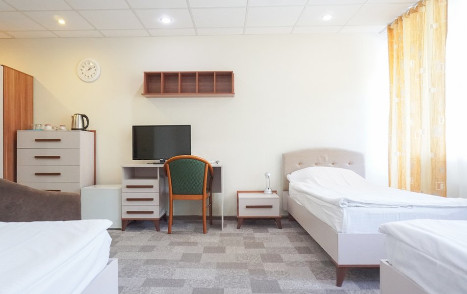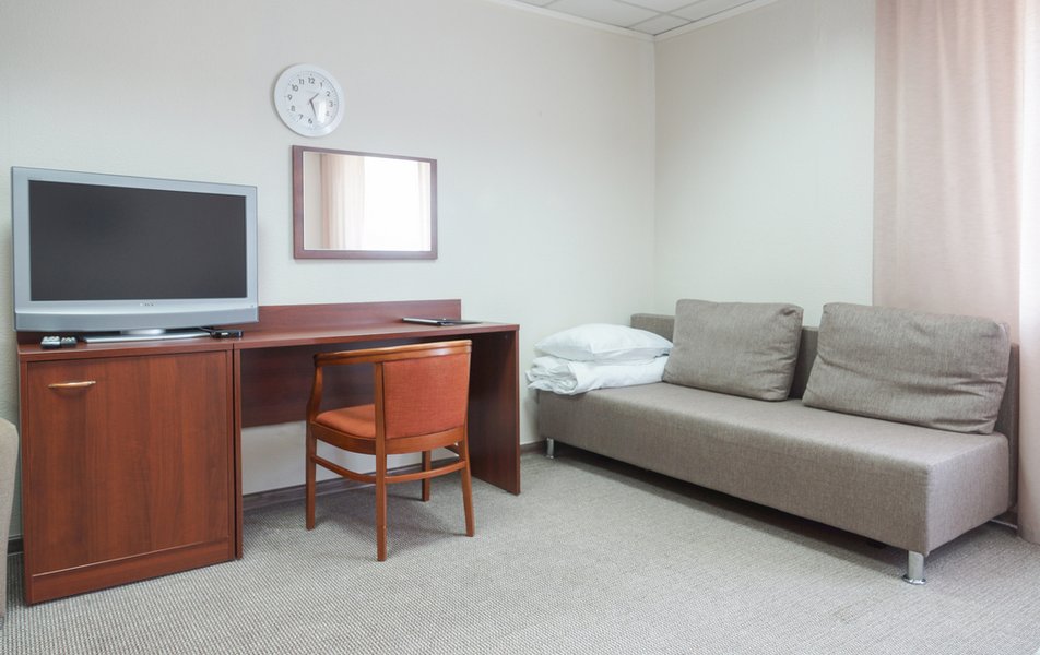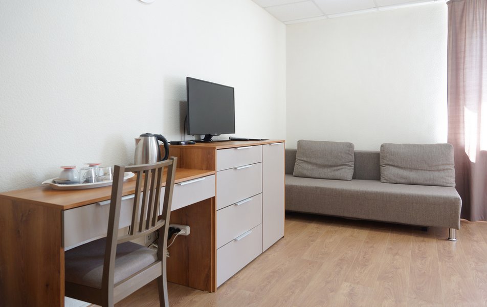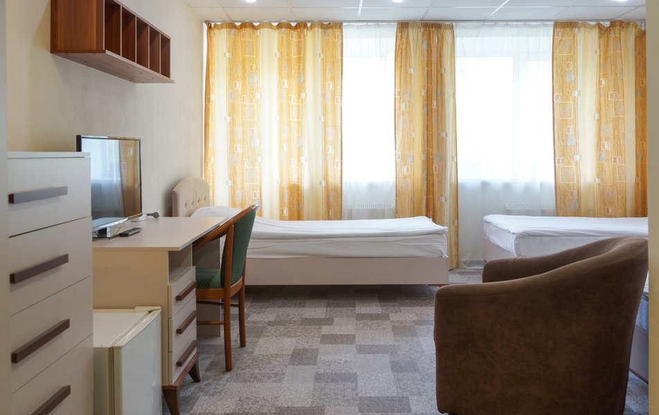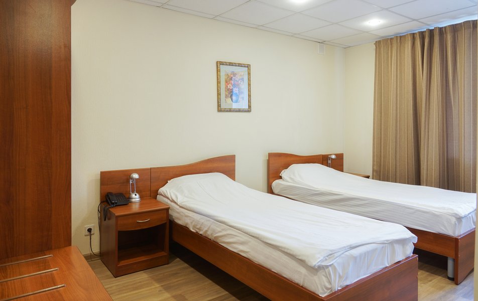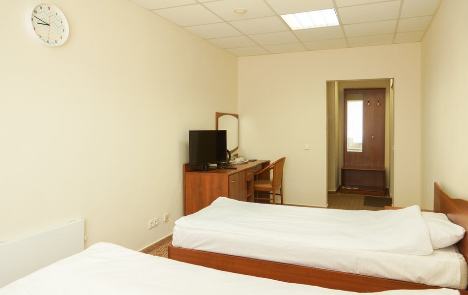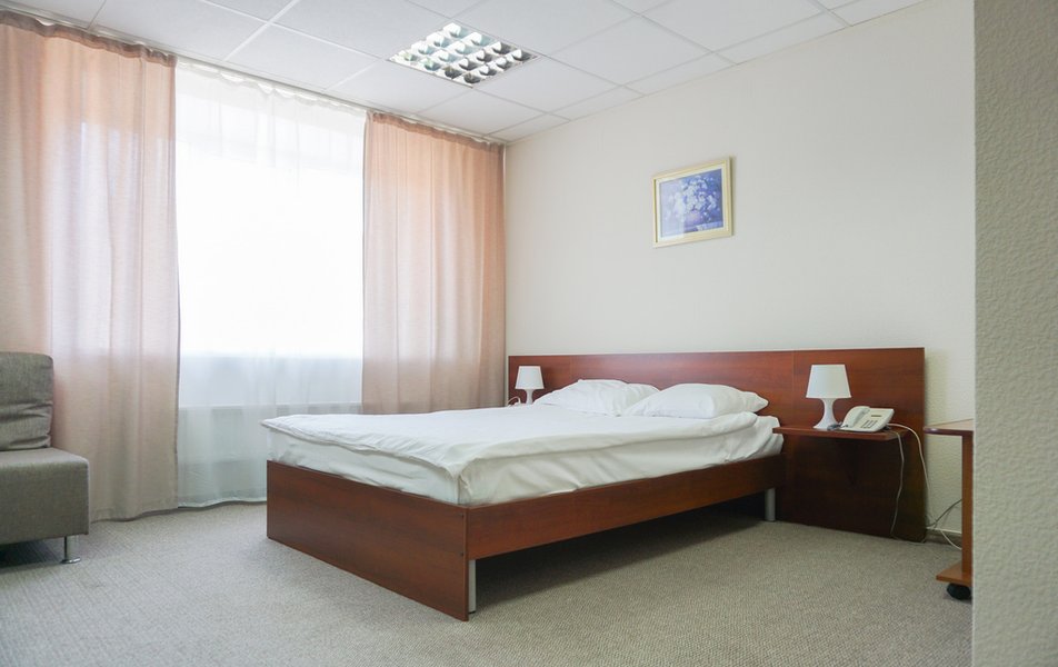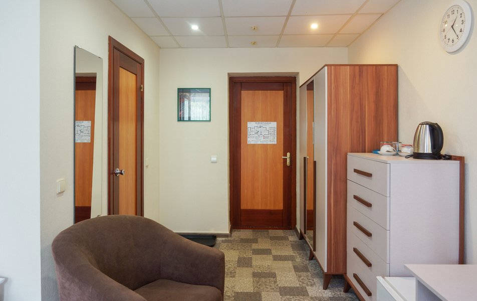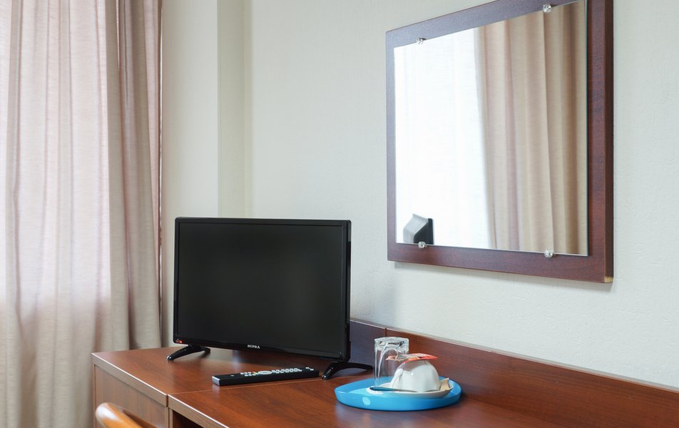 Стандартный 1-местный Количество комнат: 1-комнатный Тип номера: Стандартный Кол-во основных мест: 1 Площадь (кв. м): 14 Мебель: вешалка, зеркало, кровать односпальная, прикроватная тумбочка, стол, стул, шкаф Оборудование: мини-холодильник, телевизор, телефон, чайный набор посуды, электрочайник Санузел: с душевой кабиной, тапочки, туалетные принадлежности, фен Сервис: Wi-Fi бесплатно, смена полотенец, смена постельного белья, уборка номера, услуги внутренней телефонной связи