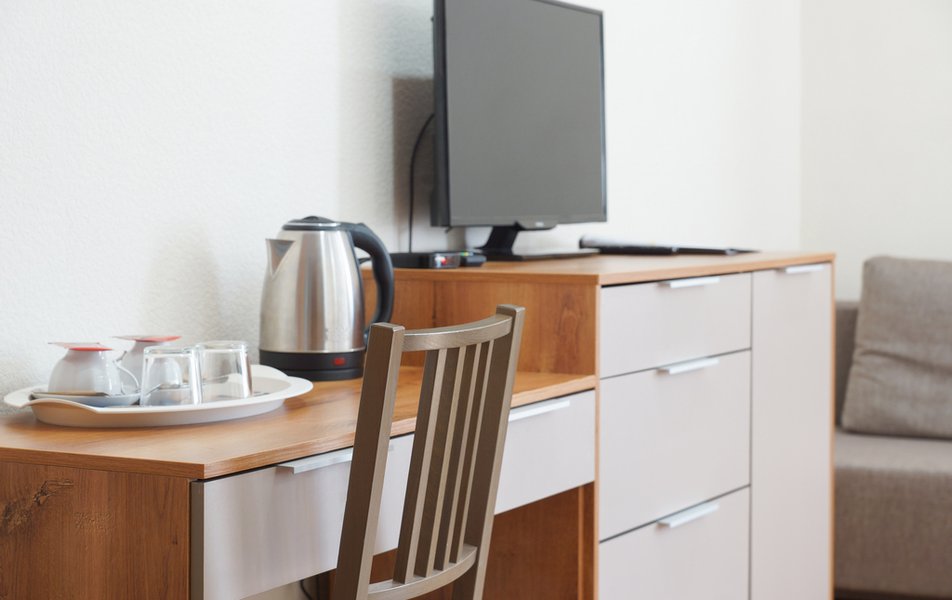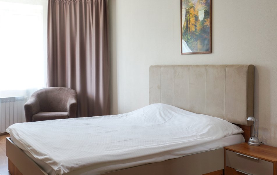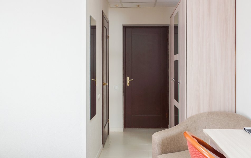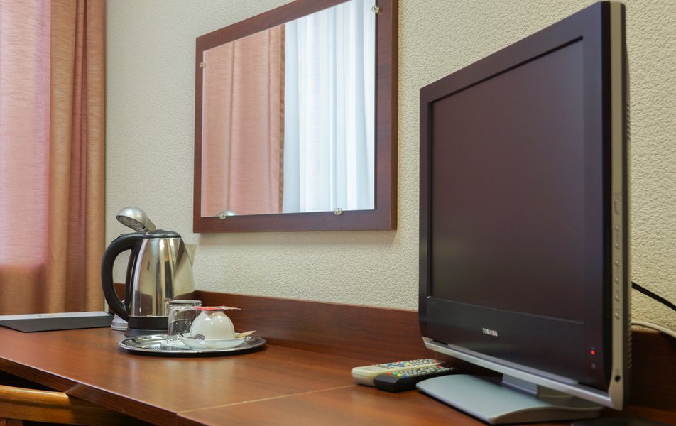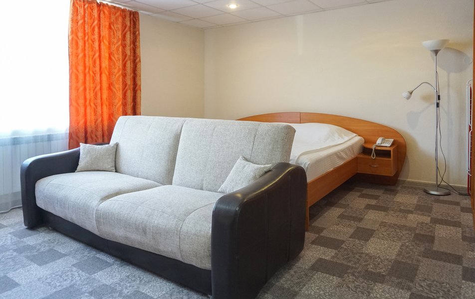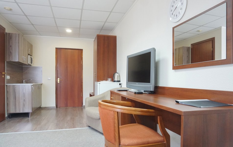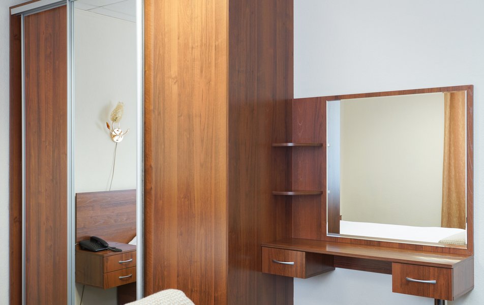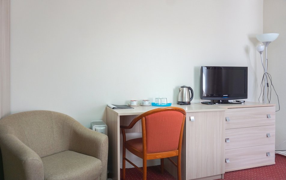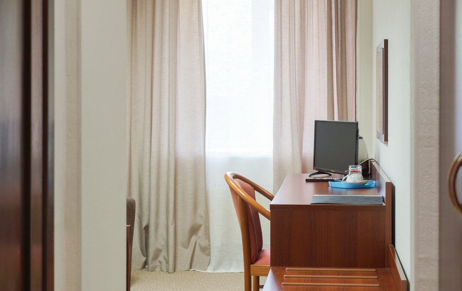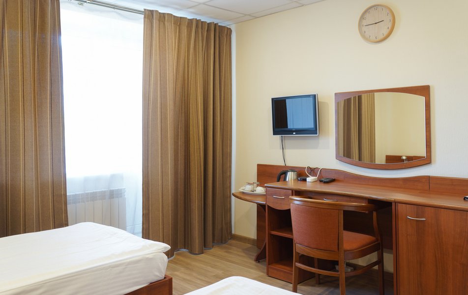 Стандартный 1-местный Количество комнат: 1-комнатный Тип номера: Стандартный Кол-во основных мест: 1 Площадь (кв. м): 14 Мебель: вешалка, зеркало, кровать односпальная, прикроватная тумбочка, стол, стул, шкаф Оборудование: мини-холодильник, телевизор, телефон, чайный набор посуды, электрочайник Санузел: с душевой кабиной, тапочки, туалетные принадлежности, фен Сервис: Wi-Fi бесплатно, смена полотенец, смена постельного белья, уборка номера, услуги внутренней телефонной связи