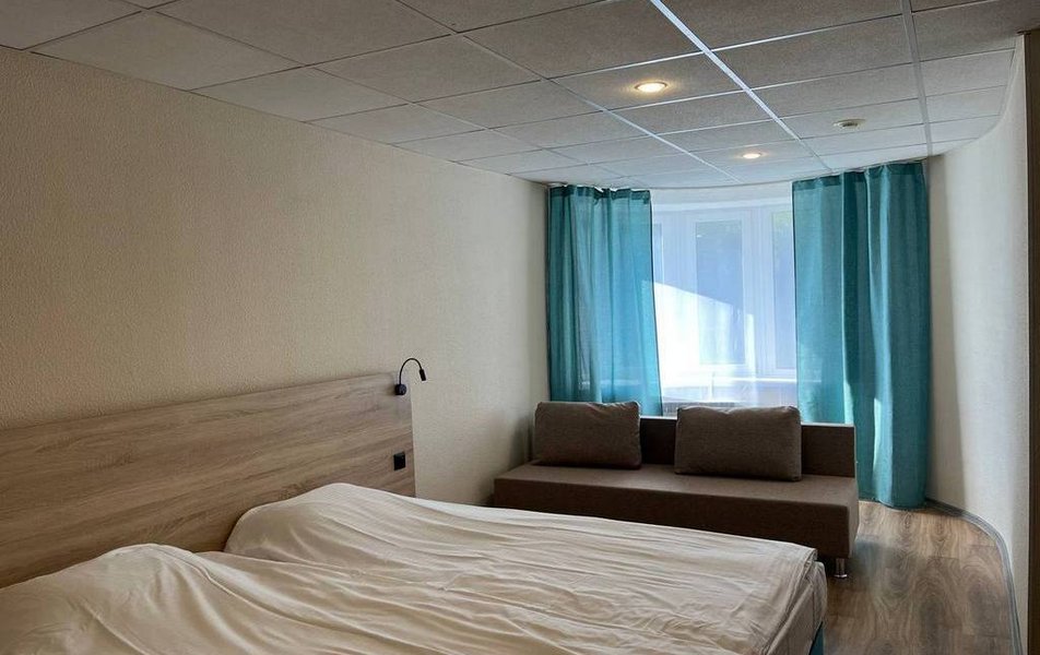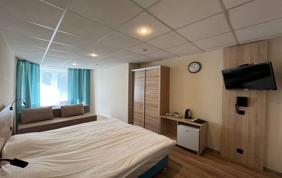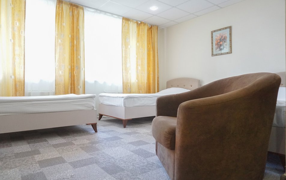Семейный 3-местный Количество комнат: 1-комнатный Тип номера: Семейный Кол-во основных мест: 3 Площадь (кв. м): 23 Мебель: вешалка, диван раскладной, зеркало, кровать двуспальная, прикроватные тумбочки, стол, стулья, шкаф Оборудование: мини-холодильник, телевизор, телефон, чайный набор посуды, электрочайник Санузел: с душевой кабиной, тапочки, туалетные принадлежности, фен Сервис: Wi-Fi бесплатно, смена полотенец, смена постельного белья, уборка номера, услуги внутренней телефонной связи