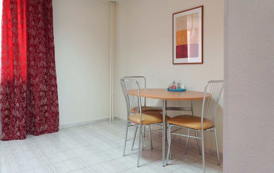 Апартаменты 3-местный (с кухней) Количество комнат: 1-комнатный Тип номера: Апартаменты Кол-во доп. мест: 1 Кол-во основных мест: 3 Площадь (кв. м): 43 Мебель: вешалка, диван раскладной, зеркало, кровать двуспальная, прикроватные тумбочки, стол, стулья, шкаф Оборудование: гладильная доска, микроволновая печь, набор посуды, стиральная машина, телевизор, телефон, утюг, холодильник, электрочайник Санузел: с душевой кабиной, тапочки, фен Сервис: Wi-Fi бесплатно, смена полотенец, смена постельного белья, уборка номера, услуги внутренней телефонной связи