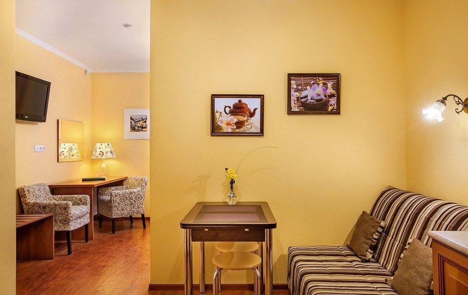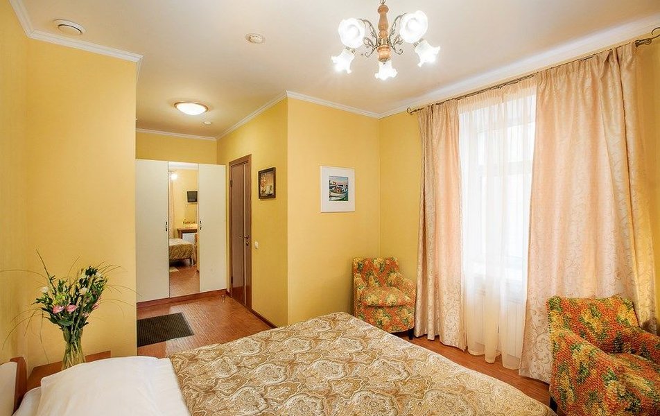 Небольшой уютный мини-отель. Останавливались на 3 дня с двумя детьми. В шаговой доступности вокзал, метро. Рядом с домом остановка автобусов/троллейбусов. Не так далеко и до основных достопримечательностей, если любите ходить пешком. Поблизости продуктовый магазин, кафе. Окно выходило в тихий двор. Кровати хорошие, высыпались отлично. В нашем номере были микроволновка, чайник, небольшой холодильник, кухонная раковина и посуда. Убирали в номере каждый день. Расходные принадлежности для гигиены обновляли ежедневно, как и питьевую воду, чай по количеству гостей. Помимо бутилированной воды в номере также есть кулер на ресепшене. Есть кофемашина. Полотенца по количеству гостей, дополнительно не приходилось ничего просить. Водонагреватель в ванной, поэтому никаких перебоев с горячей водой не было. В целом очень чисто, уютно. Завтрак заказывается накануне, на выбор 5 вариантов. Приносят в номер к указанному времени. Детям всегда добавляли барни. Отдельное спасибо за поздравление детей с днем рождения и торт в подарок от отеля) Есть вай-фай. Из минусов только отсутствие москитной сетки на окне. Хотя мы были в начале мая, насекомых еще было немного. Возможно, позднее сетку установят. Отдыхом довольны.