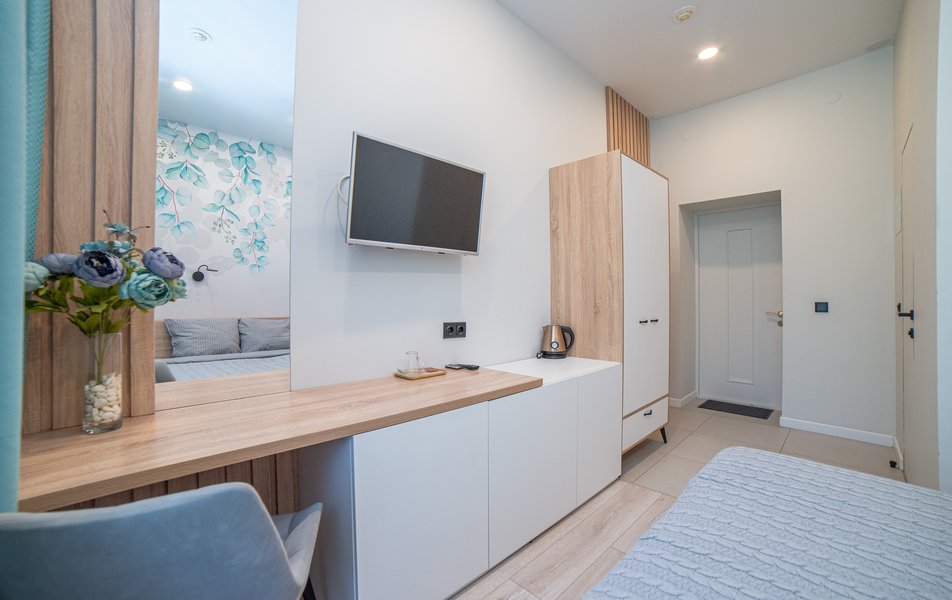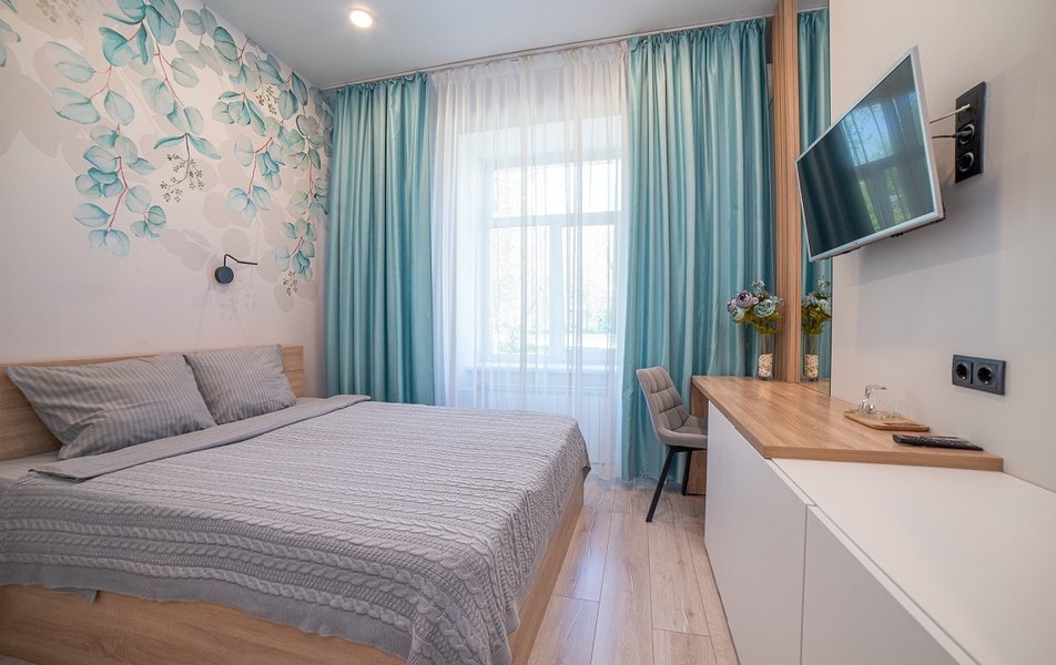 Небольшой бюджетный отель. Расположен на 1 этаже 5 этажного жилого дома сталинской постройки. Номера есть различные. Можно найти совсем скромный и недорогой номер, есть номера побольше и дороже. Вариант для командировочных на 1-2 ночи.