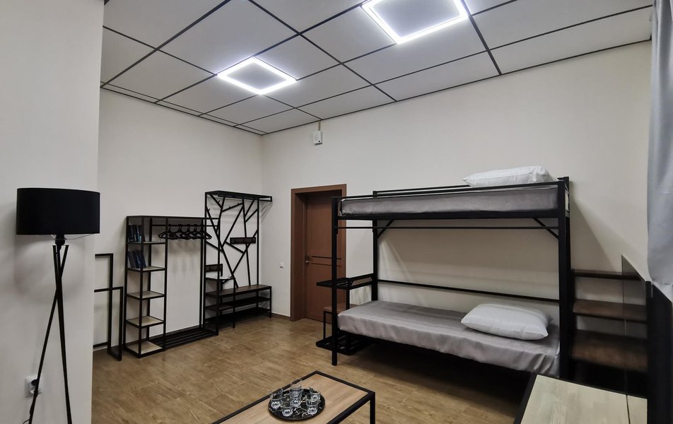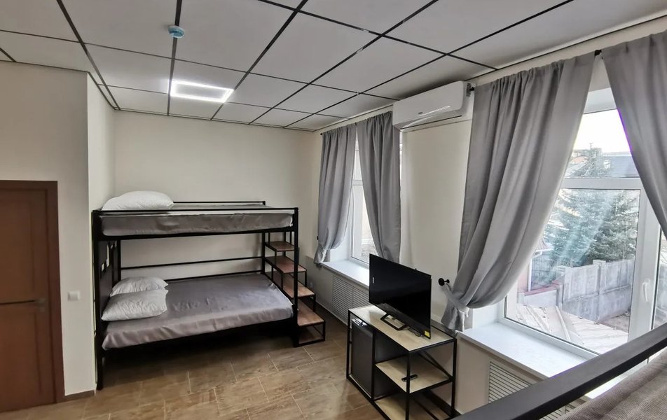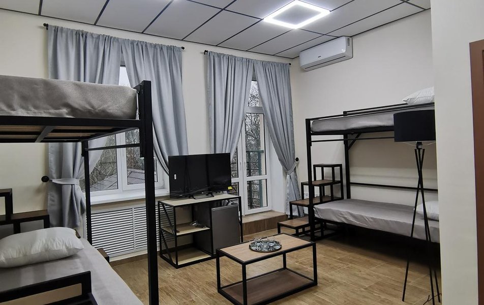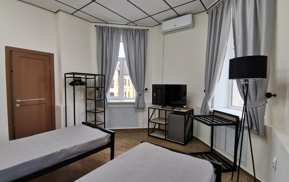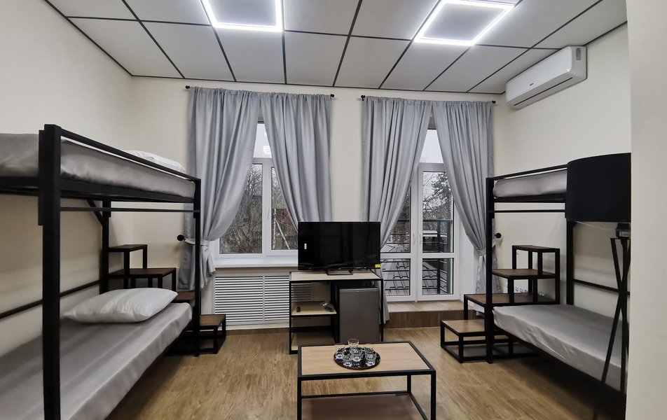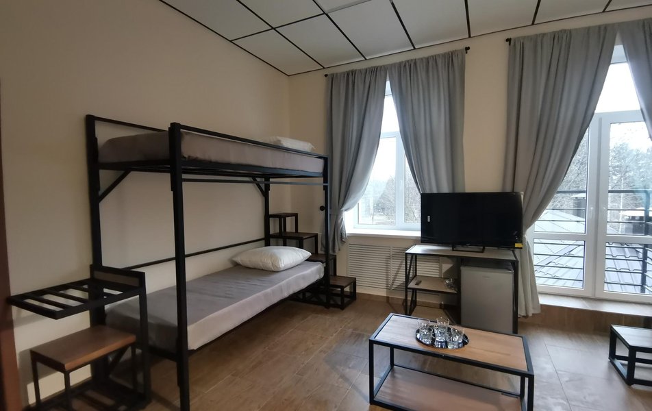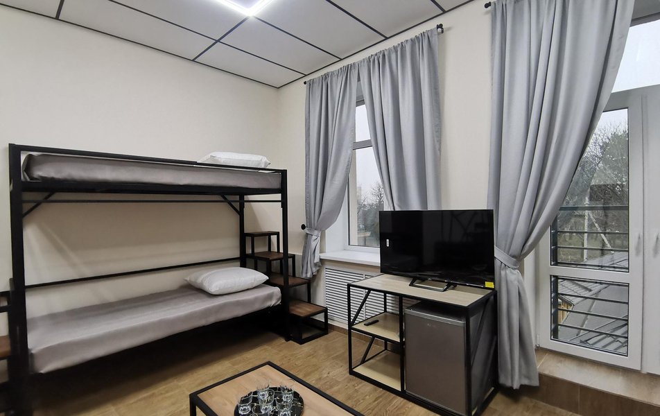 Стандартный 4-местный 1-комнатный (101, 102, 103, 104) Количество комнат: 1-комнатный Тип номера: Стандартный Вид из номера: на двор Кол-во номеров: 5 Кол-во основных мест: 4 Площадь (кв. м): 17 Мебель: зеркало, кресло, кровать двухъярусная: 2, прикроватные тумбочки, тумба, шкаф Оборудование: мини-холодильник, телевизор ЖК Санузел: с душем, тапочки, фен Сервис: Wi-Fi бесплатно, смена полотенец, смена постельного белья, уборка номера