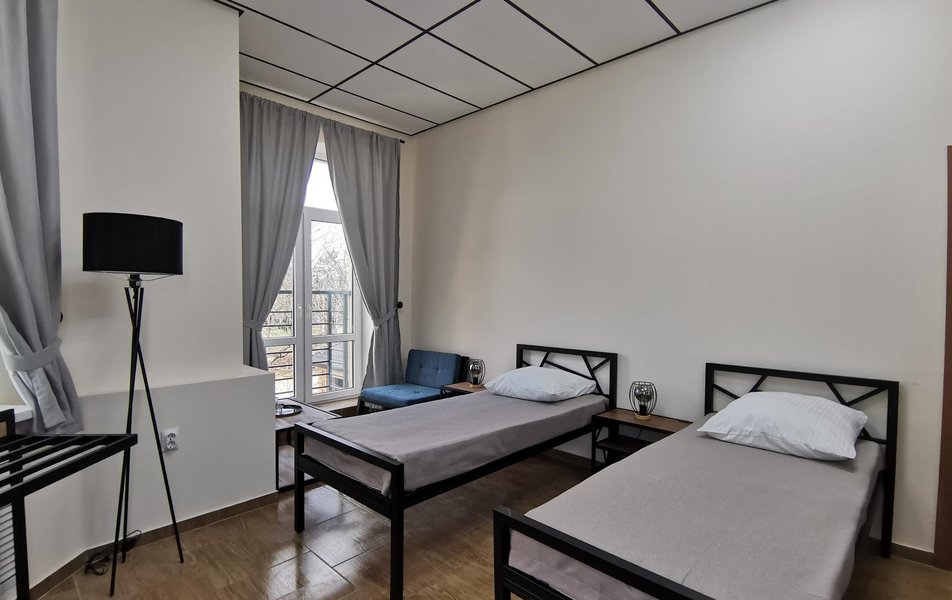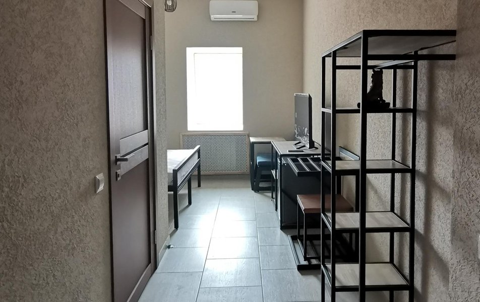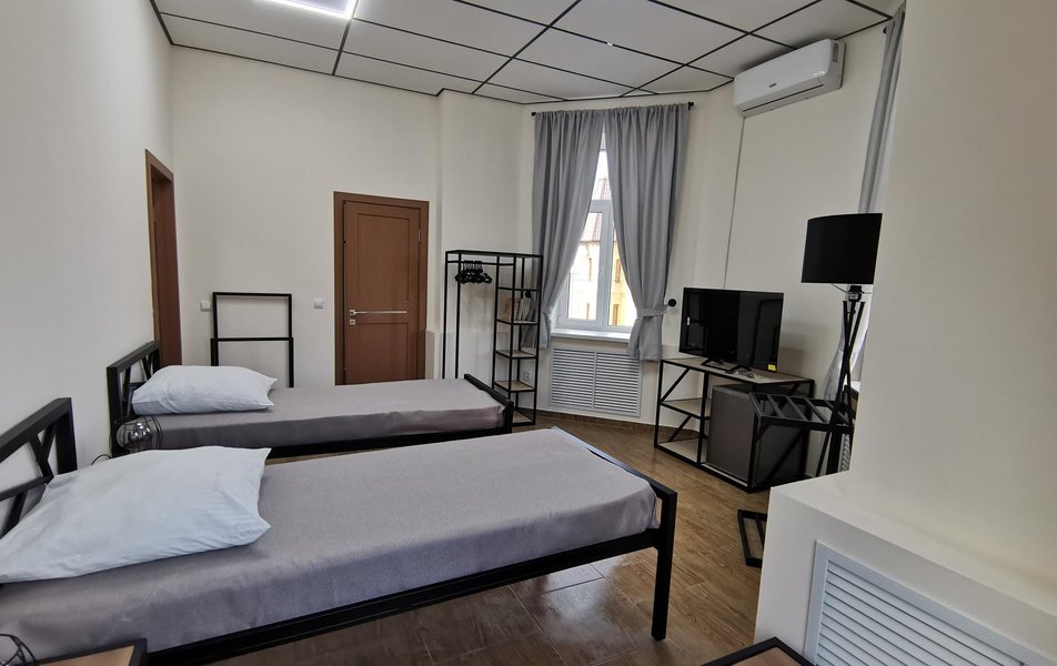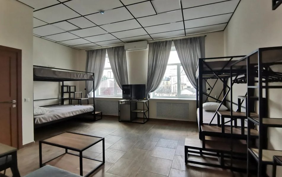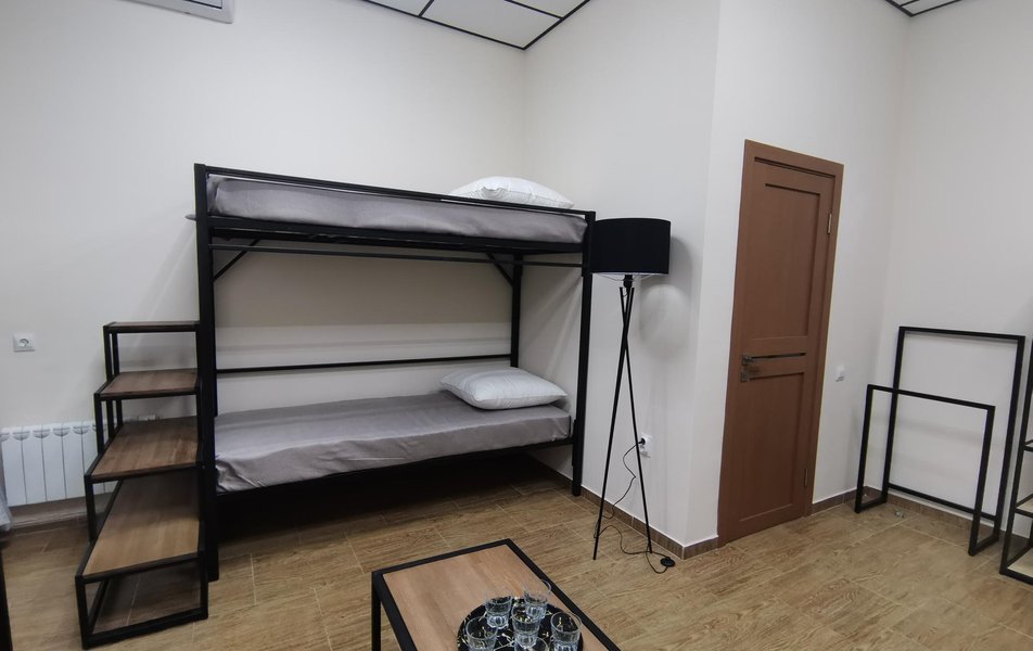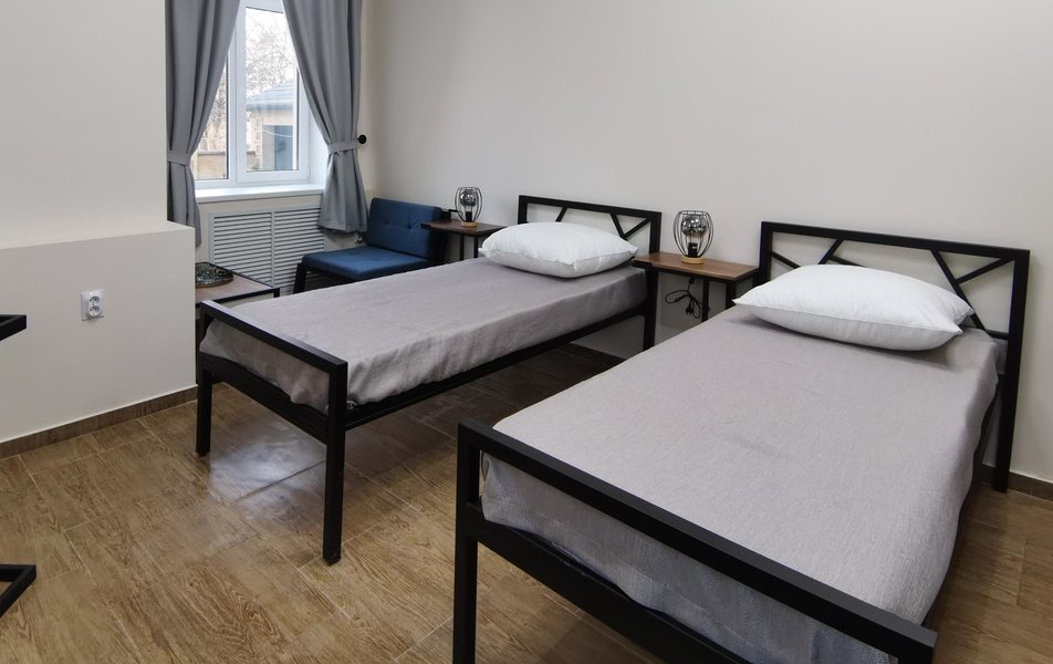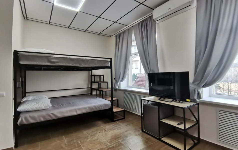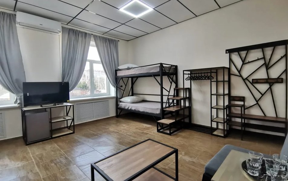 Стандартный 4-местный 1-комнатный (101, 102, 103, 104) Количество комнат: 1-комнатный Тип номера: Стандартный Вид из номера: на двор Кол-во номеров: 5 Кол-во основных мест: 4 Площадь (кв. м): 17 Мебель: зеркало, кресло, кровать двухъярусная: 2, прикроватные тумбочки, тумба, шкаф Оборудование: мини-холодильник, телевизор ЖК Санузел: с душем, тапочки, фен Сервис: Wi-Fi бесплатно, смена полотенец, смена постельного белья, уборка номера