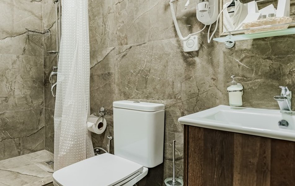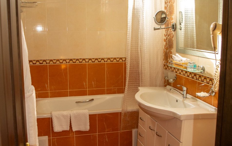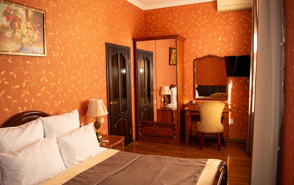 Повышенной комфортности 2-местный 2-комнатный (семейный) Количество комнат: 2-комнатный Тип номера: Семейный Кол-во доп. мест: 2 Кол-во основных мест: 2 Мебель: вешалка, зеркало, кровать двуспальная, прикроватные тумбочки, шкаф Оборудование: кондиционер, телевизор ЖК, чайный набор посуды, электрочайник Санузел: биде, с ванной, с душевой кабиной, тапочки, туалетные принадлежности, фен, халат Сервис: Wi-Fi бесплатно, смена полотенец, смена постельного белья, уборка номера