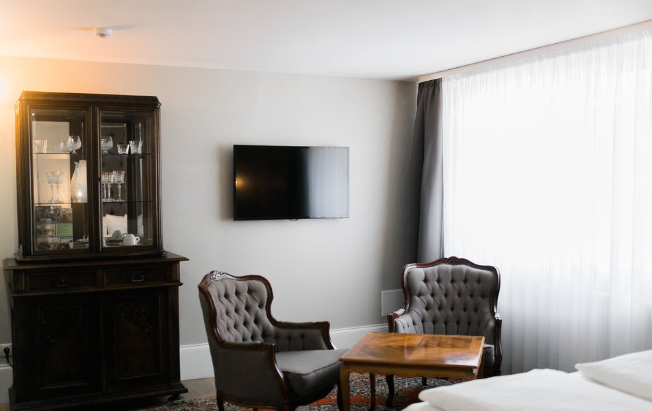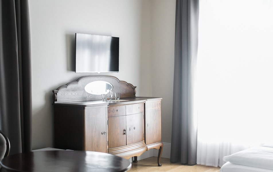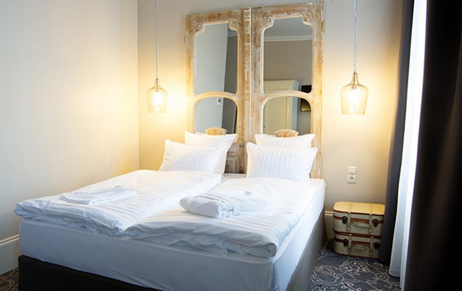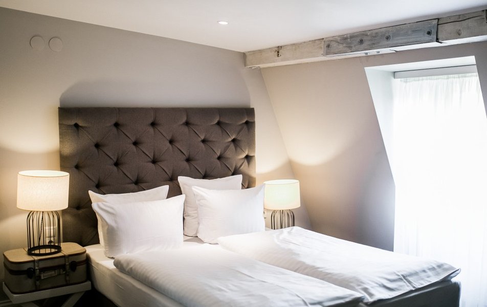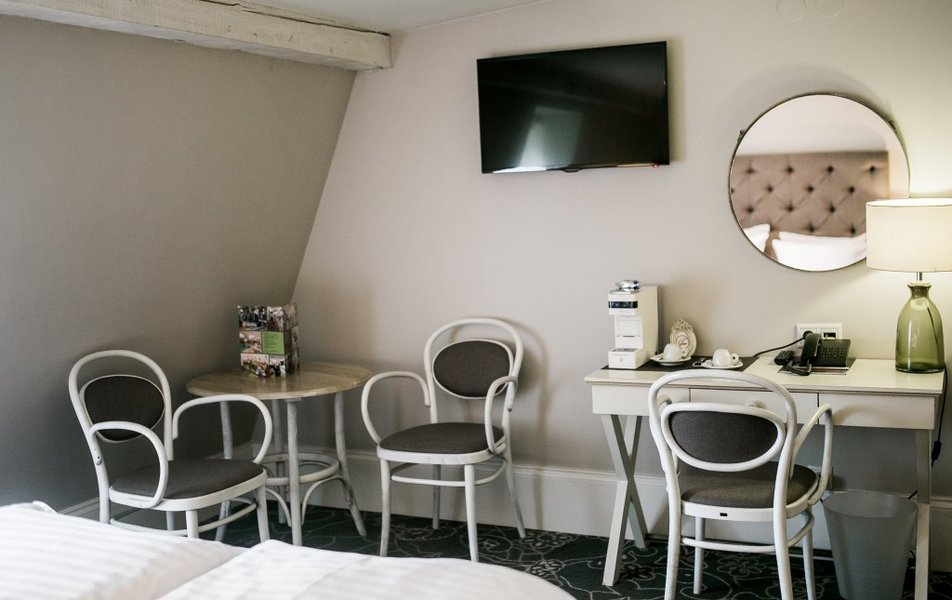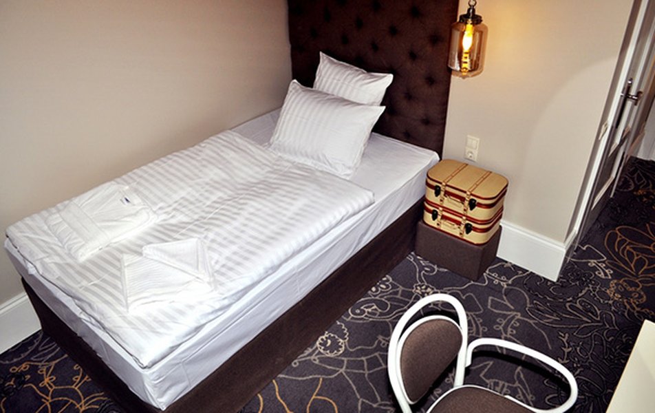 Приятный и уютный отель. Для проживания выбрали мансардный номер. Удобная кровать, подушки, небольшая ванная с душевой кабиной. В качестве комплимента - кофе, чай, вода каждый день. Если вы рано ложитесь, не рекомендую брать номера на втором этаже, над рестораном. В сезон в пятницу-воскресенье там довольно людно, празднуют, долго играет музыка. На четвёртом этаже её не было слышно. Персонал вежливый, учтивый, днем есть портье, который поможет с чемоданом (лифта нет). Мастер по ремонту починил чемодан.