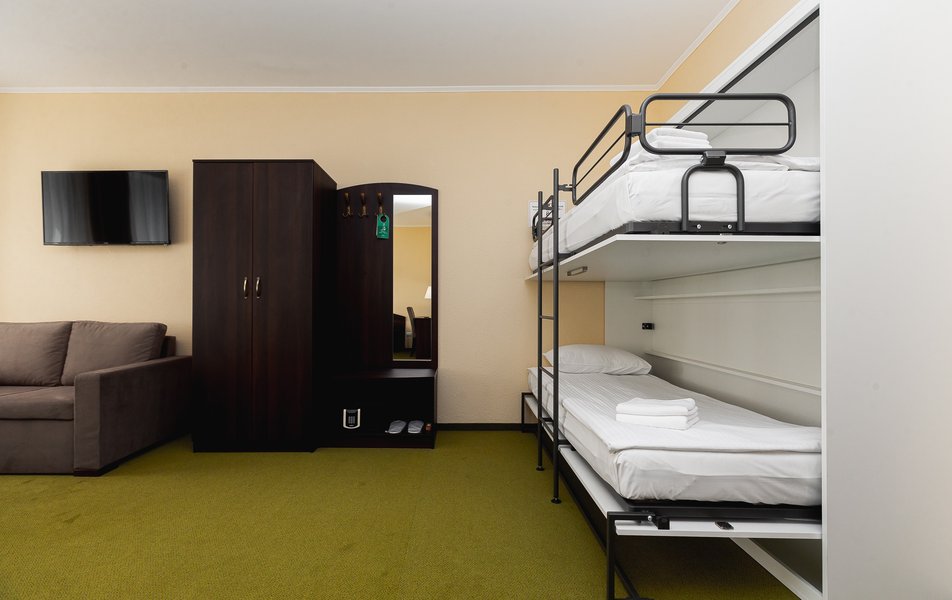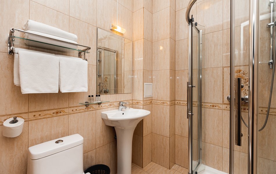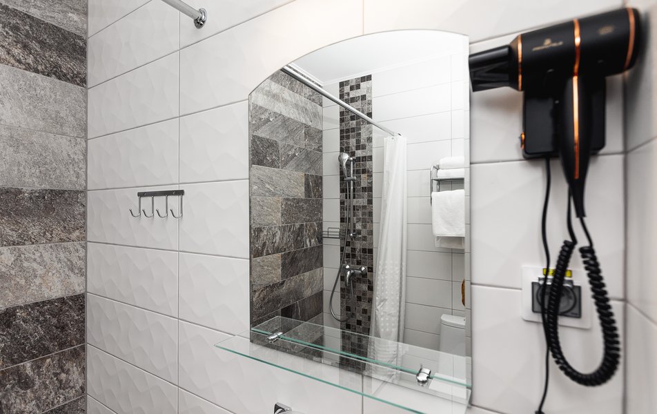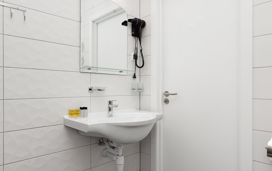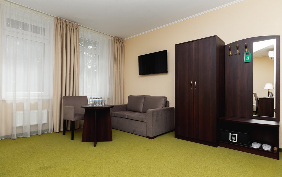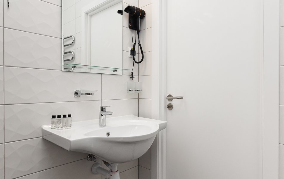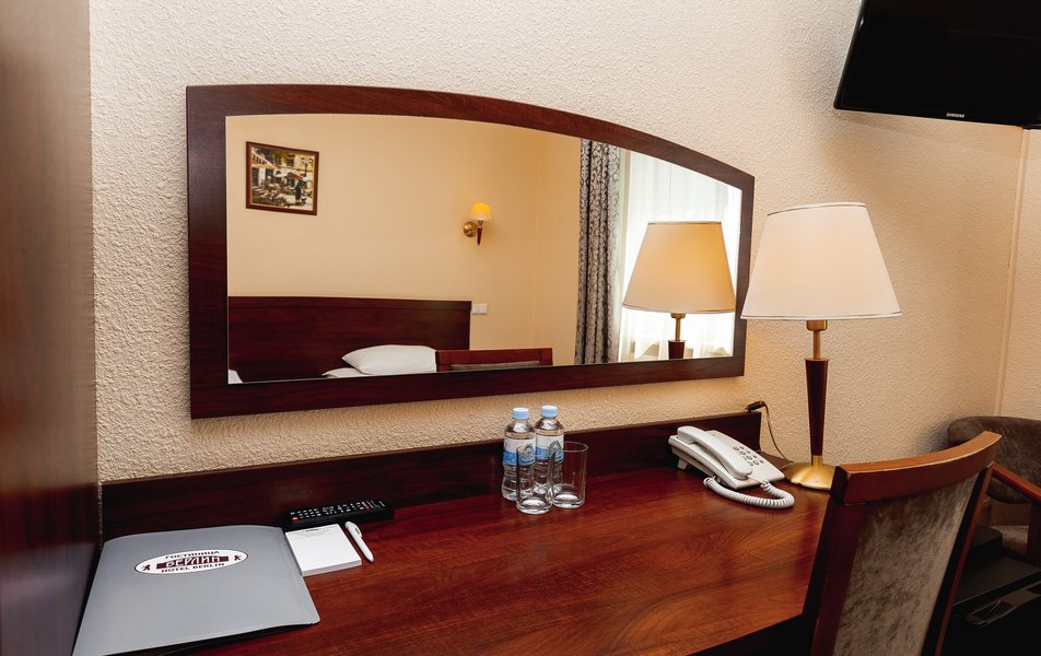 Доброго всем времени суток. Мы останавливались в этой гостиницы во время нашего путешествия по Калининграду. Мы сами ничего не выбирали и не бронировали, за нас это сделал наш туроператор. Наше заселение прошло быстро и мы отправились по номерам. Номер нам достался на четвёртом этаже. Сказать, что он маленький- это вообще ничего не сказать. Он просто мизерный! Никогда ещё не видали таких маленьких номеров. Он настолько маленький, что чтобы подойти к кровати нужно было отодвинуть в сторону стул. Окна номера выходили на дорогу и постоянно было слышно проезжающие мимо гостиницы машины. Порадовало наличие бутылочек с питевой водой, чайника, растворимого кофе и чая в пакетированного чая. Мелочь как говориться, а приятно. Ванная комната тоже не большая. Вместо ванной душевая со шторкой. Из гигиенических принадлежностей маленькое круглое мыло, гель для душа и шампунь. Набор полотенец заботливо был развешен на специальной полочке. Вся сантехника работала исправно. Перебоев с водой не было. Очень порадовало наличие фена. В номере, как и во всей гостинице, очень чисто! Отдельное спасибо горничным! Интерьер гостиницы выполнен в сине-белых тонах. На стенах, по всей гостиницы, развешены фотографии Калининграда разных эпох. В холле, возле лифтов устроена читальная зона, с уютными диванчиками и полками с книжками. Возле ресепшен сделана уютная зона отдыха со старинным пианино и баром. У входа небольшая витрина с сувенирами, которые при желании можно приобрести на память о Калининграде. Что нас очень огорчило даже больше чем мизерные номера, так это ресторан гостиницы. Он физически не вмещал всех гостей гостиницы. Чтобы попасть на завтрак нужно было сначала отстоять большую очередь к шведскому столу, а потом долго ждать пока появиться свободный столик. Персонал ресторана не справлялся с таким количеством постояльцев и нам приходилось долго ждать пока они принесут чисты ножи, вилки, ложки, посуду и еду. Очень не приятно- это реально напрягало. Приходилось буквально завтракать стоя. Да и ещё делать это побыстрее, чтобы не опоздать на автобус. Отвратительно! Этот отель из-за маленьких номеров и огромного количества народа в ресторане чуть не испортил всё впечатление о Калининграде.