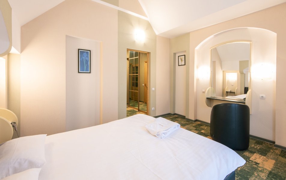Отель очень понравился. Тихий, отличная шумоизоляция. Просторные номера, 2 комнаты и санузел. Большой шкаф- купе в номере. Отличный бассейн, который можно посещать с 8 утра. Рядом озеро. Недалеко от центра. Красивая ухоженная территория.