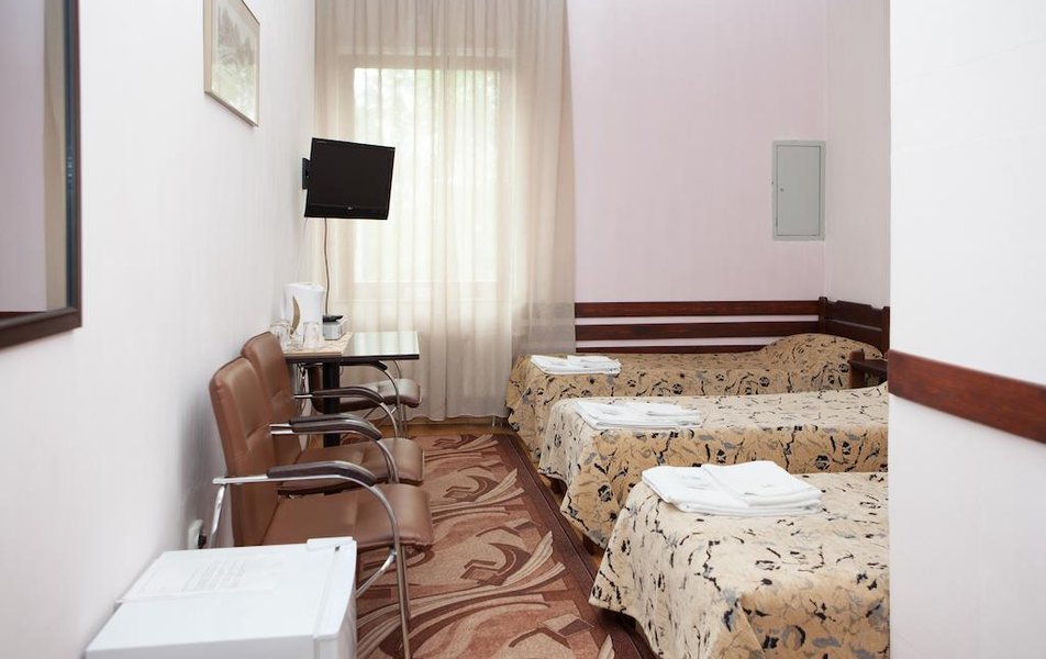 Ребята, мы здесь остановились на пару дней в конце апреля 2025. За громким названием кроется небольшой курятник в Московском районе города, довольно далеко от центра. Мебель старая. В телевизоре 1.5 канала. Санузел грязный и старый. Автономное отопление этой избушки администрация отключила, когда на улице было 9 градусов тепла. В номерах было очень холодно. Но хамский администратор Алла отказалась дать обогреватель или поменять номер. Были вынуждены купить свой обогреватель. Рекомендуем обойти этот сарай десятой дорогой. Хотя, конечно, вам решать...