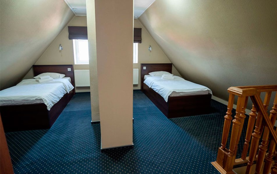 Первые впечатления были приятными, вопреки ожиданиям после отзывов: приветливые девушки на стойке регистрации, симпатичный ремонт на входе, порадовал открытый шкаф на входе, где тут же оказался клатч. Но когда начала раскладывать вещи, прочтённые отзывы начали оправдывать себя: клатч пошёл искать другое место, т.к выяснилось, что этот шкаф единственный, и что закрытой мебели в номере нет. Очень хотелось поставить что-нибудь на тумбочку, но их высота не превосходила уровень щиколодки; стол занят бумагами и телефоном; полки в шкафу - одна на уровне груди, а остальные две выше головы - одна годится под одежду. Для двоих номер уже тесноват, поскольку негде разместить вещи - ремонт красив, но не функционален. И долго сохранялась неловкость оттого, что всё навиду... С дороги очень хотелось отдохнуть, но слышны были топот на лестнице, голоса, мастер ходил туда-сюда. - Сон не шёл. Людям с верхних этажей, видимо, не знакома проблема, поэтому топот был постоянным. Понятно, что это проблема деревянного дома, но можно бы тогда повесить просьбу жильцам. За три ночи я так и не отдохнула. Завтраки за такую цену могли бы и включить. Чайника и фена в номере нет; кипяток по расписанию два раза в день в столовой. Кипятят поздно; если вам на работу, но пьёшь сырой тёплый. - Не очень-то гостеприимно. Понравилось, что номер тёплый и не было проблем с водой, поэтому не стала переезжать. Но в другой раз за эти деньги поищу другие варианты. Вообще, было ощущение, что сюда селятся только из-за расположения. Район действительно приятный, но в гостинице слишком много приходится думать о решении бытовых вопросов, вроде добычи кипятка или планирования сушки головы. Видно, что всё не от души, и простые вещи приходится просить.