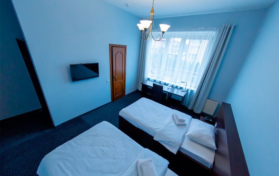 Плюс отеля- хорошее местоположение на тихой уютной улице в центре города. на этом все. Минусы-слышимость; отсутствие штор на окнах; при входе в номер в коридорчике нет ничего - некуда элементарно положить ключи, поставить сумку; в ванной комнате шторка для душа очень длинная, лежит складками на дне ванны, шторка плохо двигается по направляющей; ковролин грязный, на полу под столом валялись орехи, разложили диван - спальное место - весь в волосах, крошках. просили дополнительно пропылесосить; по стенам пробегают паучки....При заселении выяснилось, что номер забронирован, но не оплачен (мы оплатили туроператору 12.04, заселялись 24.05) администратор сказала, что по стационарному телефону дозвониться туроператору не может, а с сотового дорого....пришлось звонить и разбираться самим...администратор же только сетовала, что у нее очень тяжелый день.. В итоге все благополучно разрешилось и нас заселили...Фен по запросу на ресепшен - убитый и без насадки, попросила другой - вообще не работал...Были 5 дней, за это время вынесли мусор два раза и добавили туалетную бумагу и гель, других признаков уборки не заметила...Гостиница предлагает завтраки (300 руб.) - за эти деньги слишком простенькие на мой взгляд, на завтрак нужно записываться на определенное время, один раз пришлось ждать (завтраки подает администратор и видимо не всегда успевает), это надо учитывать при планировании времени. Калининград очень понравился, но если еще поедем, скорее всего выберем другой отель.