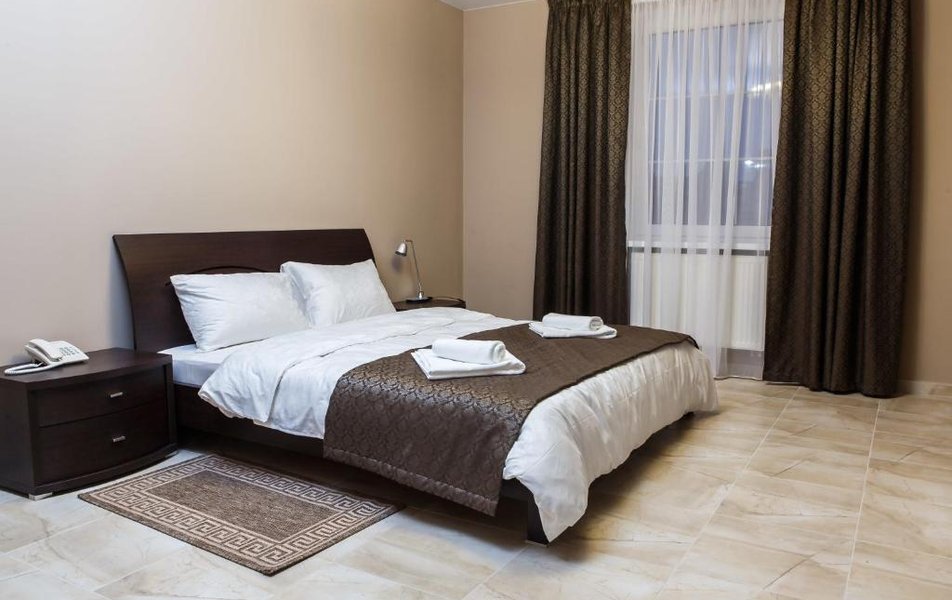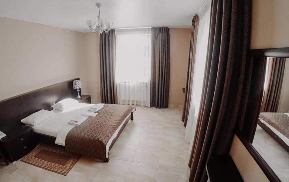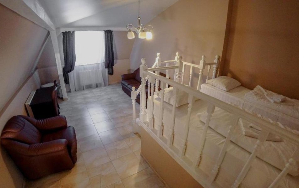 Люкс 4-местный 2-комнатный Количество комнат: 2-комнатный Тип номера: Люкс Кол-во основных мест: 4 Площадь (кв. м): 60 Мебель: вешалка, зеркало, кресла, кровати односпальные, кровать двуспальная, прикроватные тумбочки, стол, стулья, шкаф Оборудование: телевизор, телефон, холодильник Санузел: с ванной, тапочки, туалетные принадлежности, халат Сервис: Wi-Fi бесплатно, смена полотенец, смена постельного белья, уборка номера