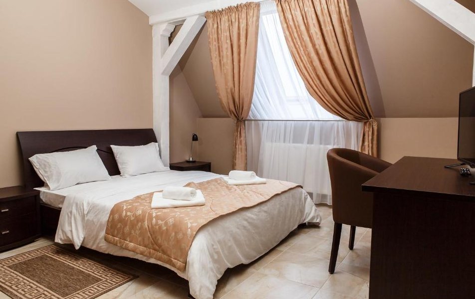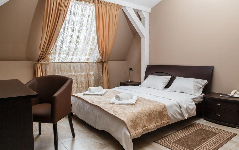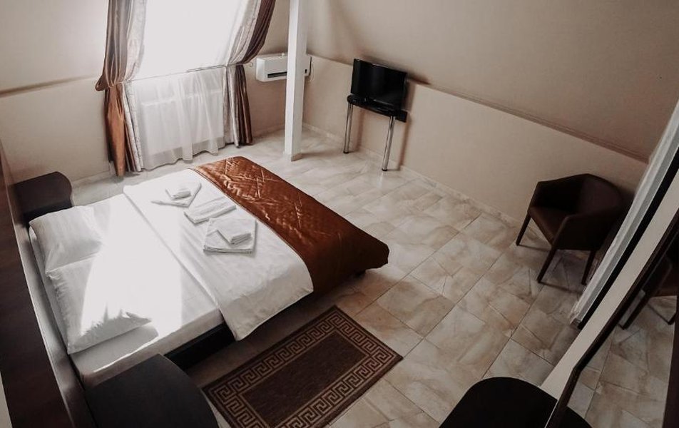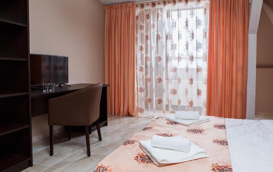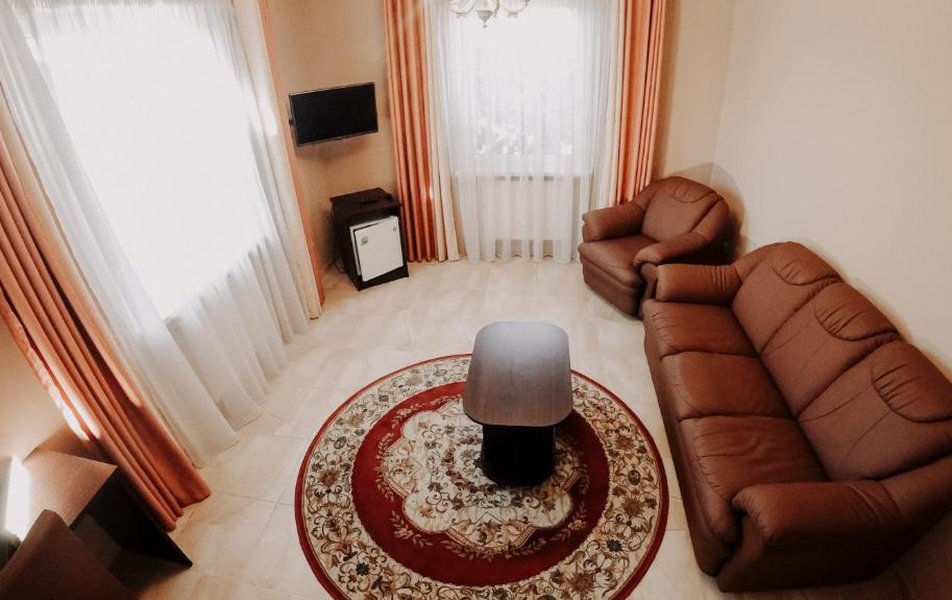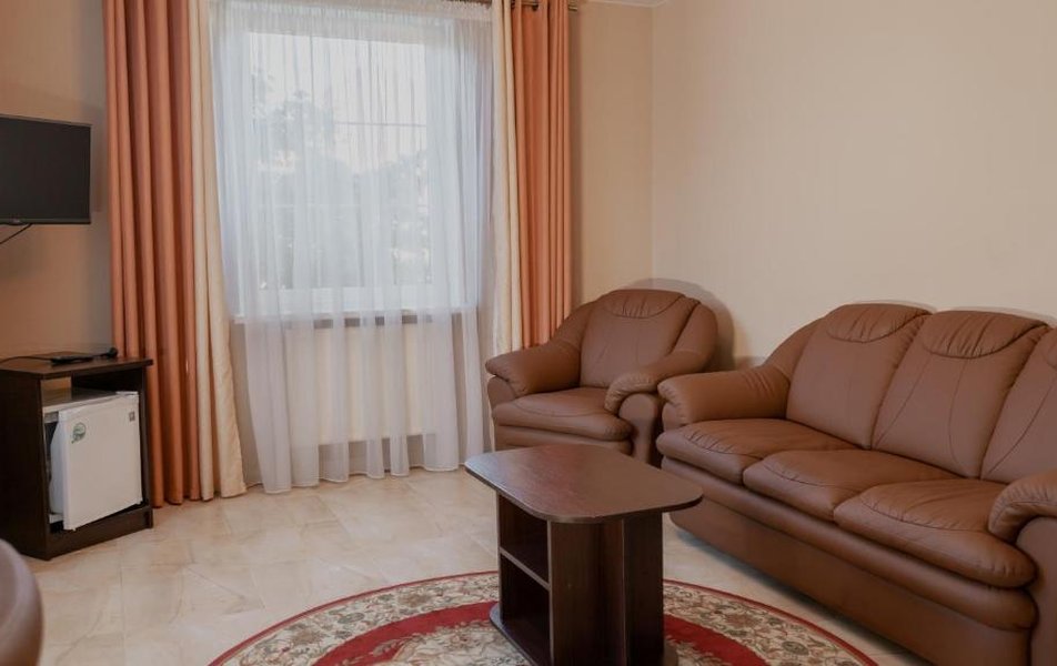 Люкс 2-местный Количество комнат: 2-комнатный Тип номера: Люкс Кол-во основных мест: 2 Площадь (кв. м): 48 Мебель: вешалка, диван раскладной, зеркало, кресло, кровать двуспальная, прикроватные тумбочки, столик туалетный, стул, шкаф Оборудование: телевизор, телефон, холодильник Санузел: с ванной, тапочки, туалетные принадлежности, халат Сервис: Wi-Fi бесплатно, смена полотенец, смена постельного белья, уборка номера