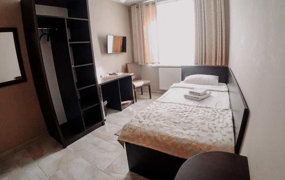 Стандартный 1-местный Количество комнат: 1-комнатный Тип номера: Эконом Кол-во доп. мест: 1 Кол-во основных мест: 1 Площадь (кв. м): 12 Мебель: вешалка, зеркало, кровать односпальная, прикроватная тумбочка, стол, стул, шкаф Оборудование: телевизор, телефон Санузел: с душем, туалетные принадлежности Сервис: Wi-Fi бесплатно, смена полотенец, смена постельного белья, уборка номера