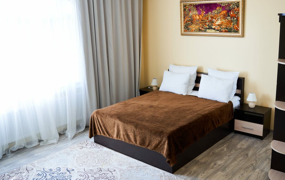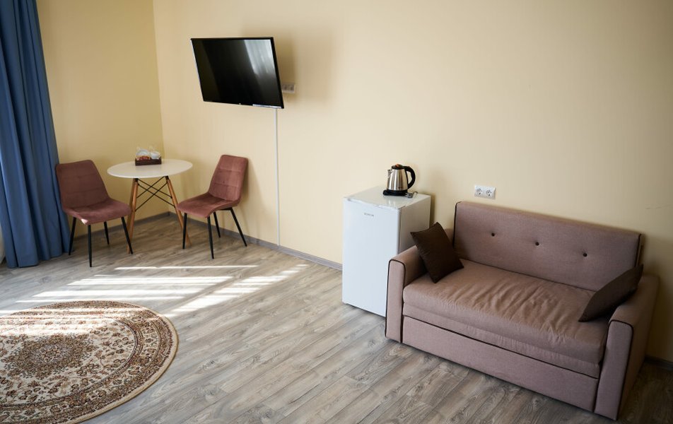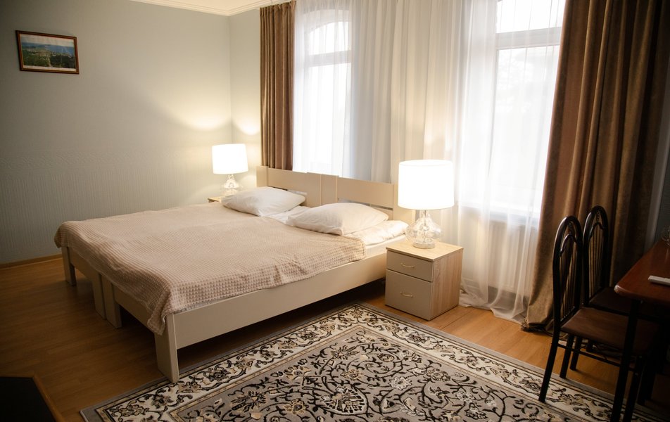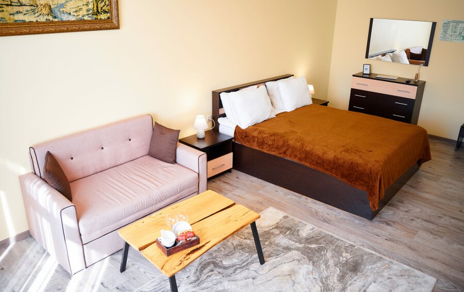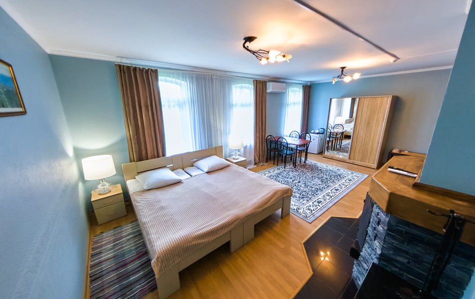 Комфорт 2-местный 1-комнатный Улучшенный Количество комнат: 1-комнатный Тип номера: Апартаменты Дополнительное место: диван Кол-во доп. мест: 2 Кол-во номеров: 1 Кол-во основных мест: 2 Площадь (кв. м): 120 Мебель: вешалка, диван, зеркало, кровать двуспальная, прикроватные тумбочки, стол, стулья, тумба, шкаф Оборудование: кондиционер, мини-холодильник, телевизор, электрочайник Санузел: с душем, туалетные принадлежности, фен Сервис: Wi-Fi бесплатно, смена полотенец, смена постельного белья, уборка номера