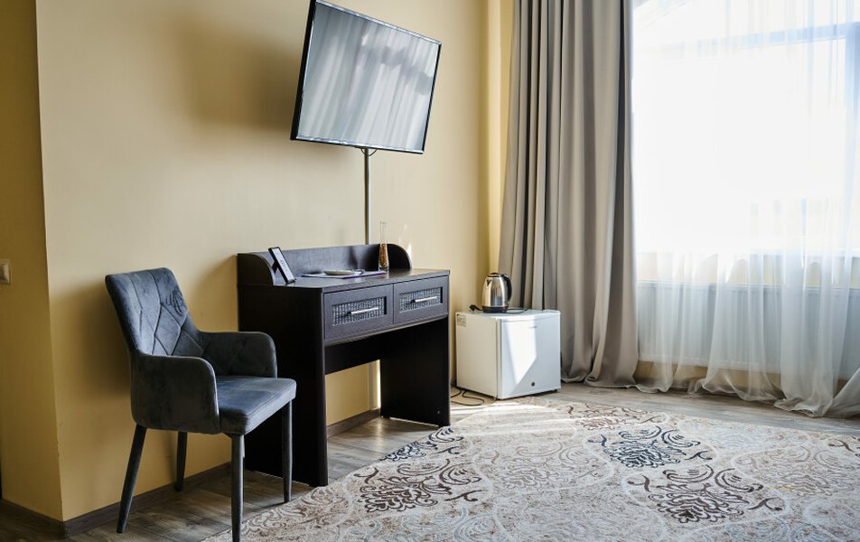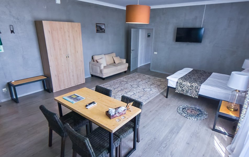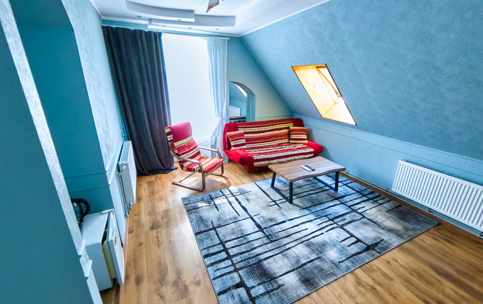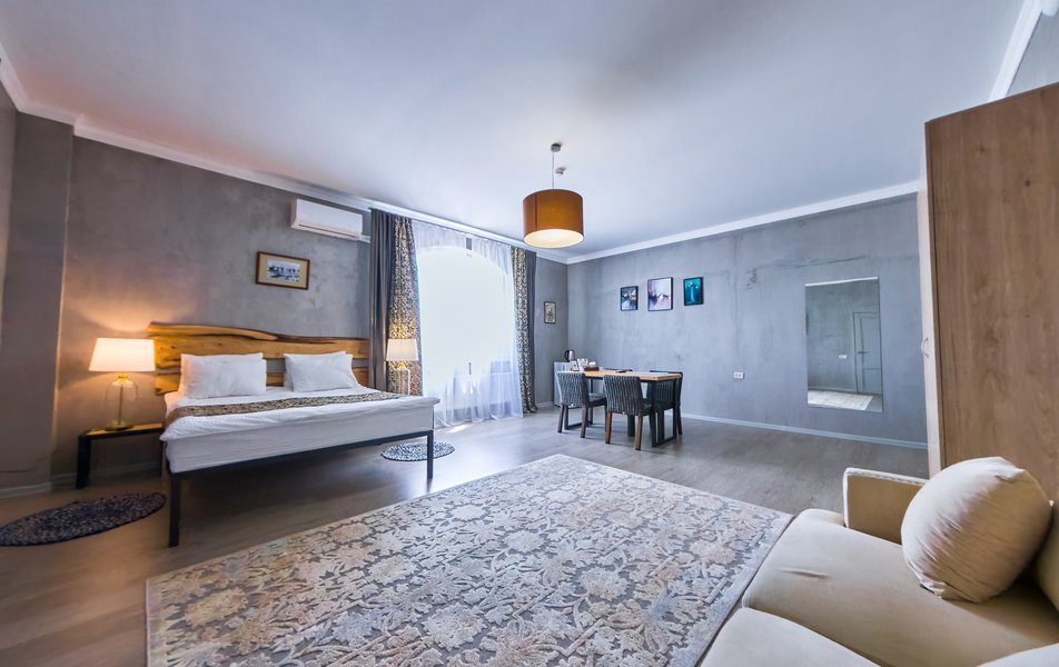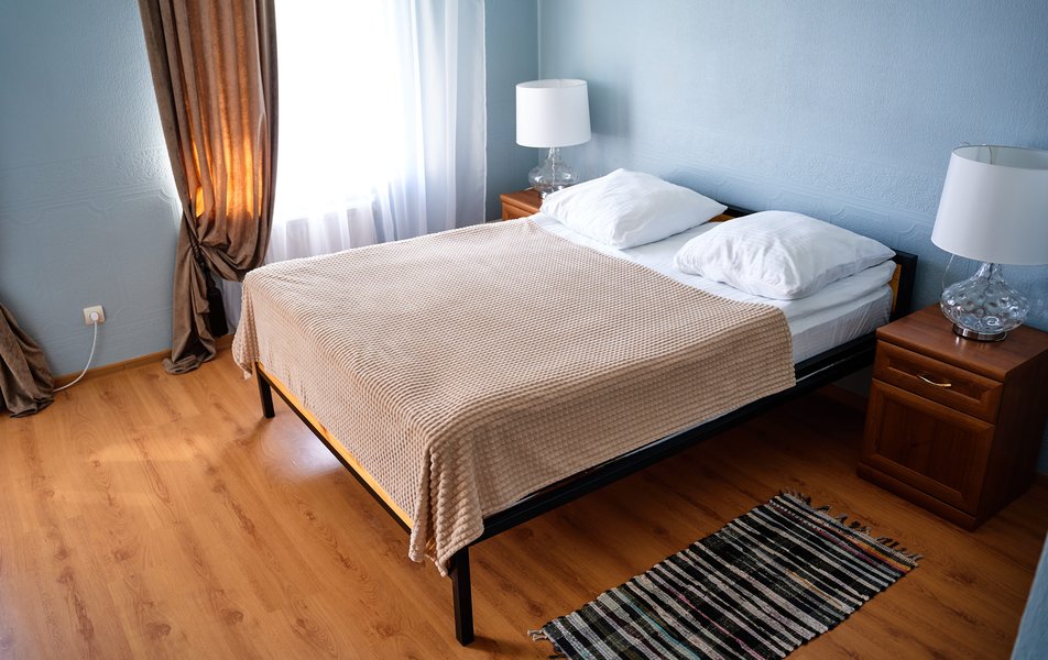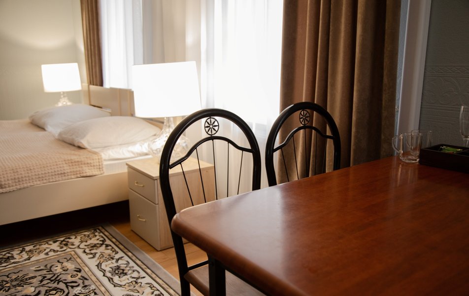 Комфорт 2-местный 1-комнатный Улучшенный Количество комнат: 1-комнатный Тип номера: Апартаменты Дополнительное место: диван Кол-во доп. мест: 2 Кол-во номеров: 1 Кол-во основных мест: 2 Площадь (кв. м): 120 Мебель: вешалка, диван, зеркало, кровать двуспальная, прикроватные тумбочки, стол, стулья, тумба, шкаф Оборудование: кондиционер, мини-холодильник, телевизор, электрочайник Санузел: с душем, туалетные принадлежности, фен Сервис: Wi-Fi бесплатно, смена полотенец, смена постельного белья, уборка номера