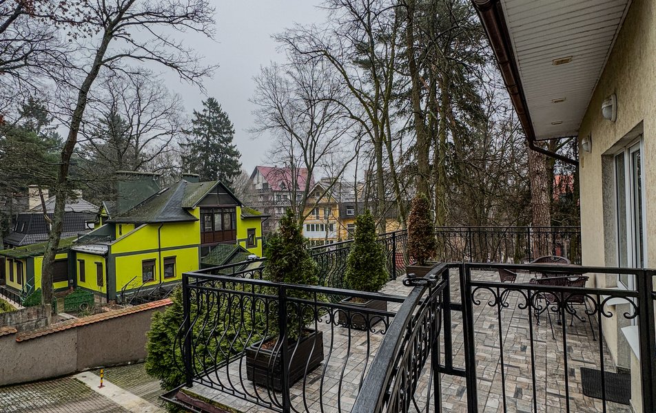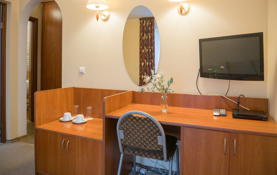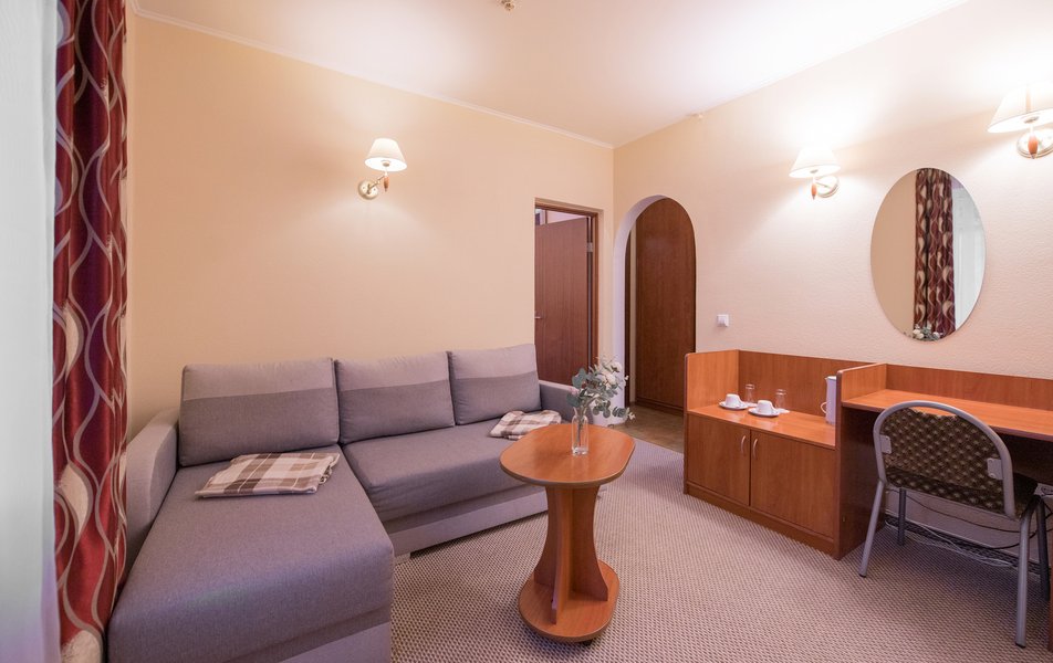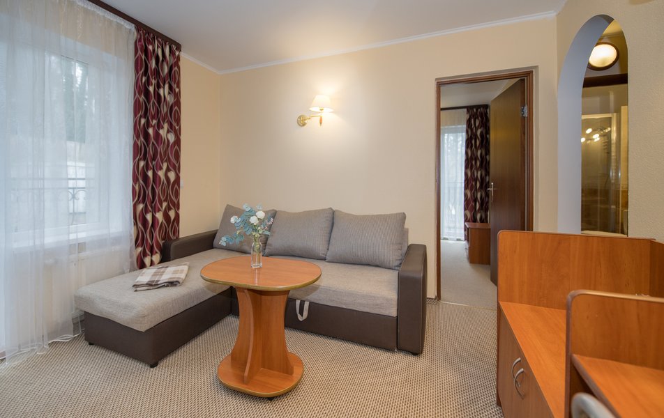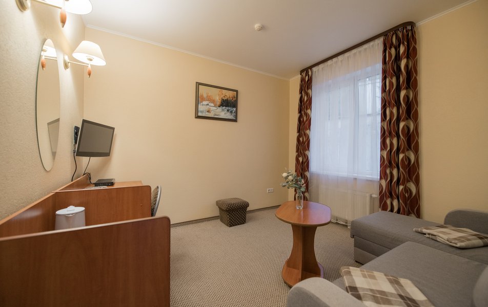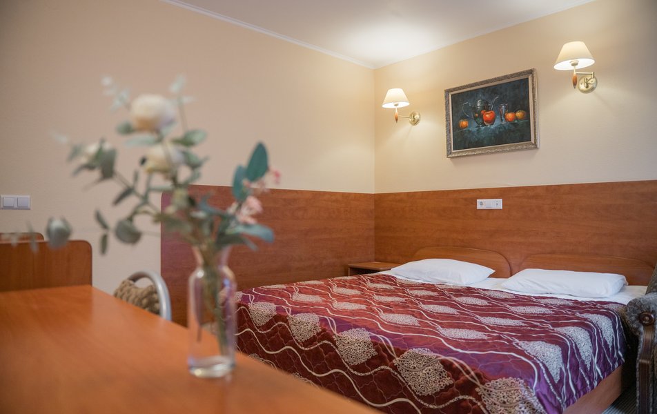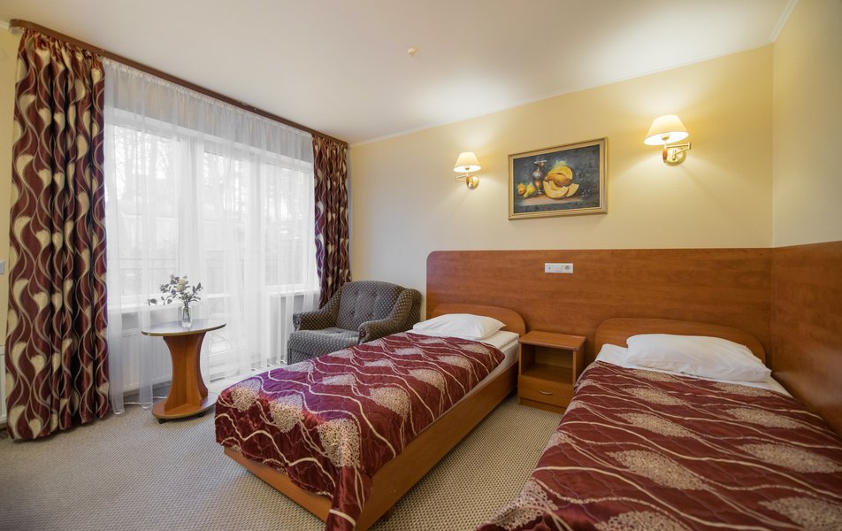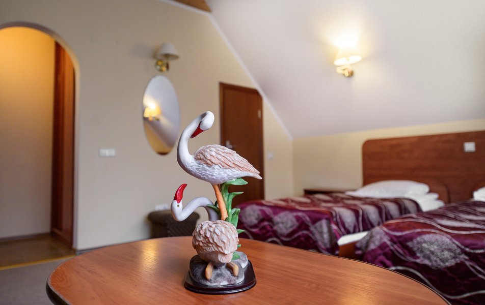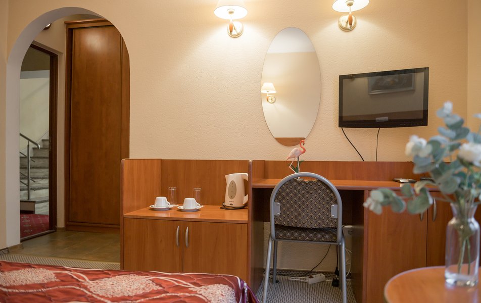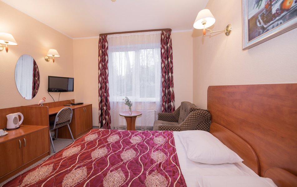 Это мини-отель, при этом очень компактный, красивый и удачно расположенный по отношению к тем достопримечательностям, что так важны гостям Светлогорска. Близость к ж.д. станции "Светлогорск-2" не влияет на тишину, царящую в этом милом уголке города. Снимали полу-люкс, на 2 этаже. Мне было очень приятно, что в нем две комнаты, два балкона, прекрасный матрас (с моими протрузиями и грыжами это очень важно) на котором я спала глубоким сном и без болей просыпалась! Есть телевизор, телефон, холодильник, фен, диван в гостиной, освещение можно подстраивать под нужды. Отметим еще воду - она настолько мягкая, что я лишений раз зале зала в душ. Завтраки готовят по вашему выбору из меню и договору с вечера. Персонал приветливый, заботливый, нет недостатков))) Мы за 4 ночи отдохнули как за месяц в санатории. Есть в самом отеле и сауна, что актуально для зимних месяцев, и бильярд.