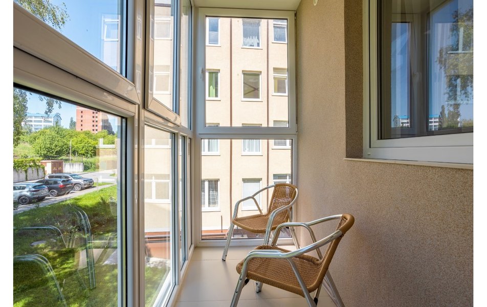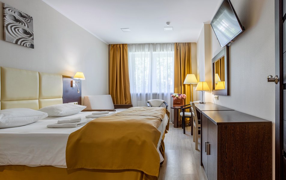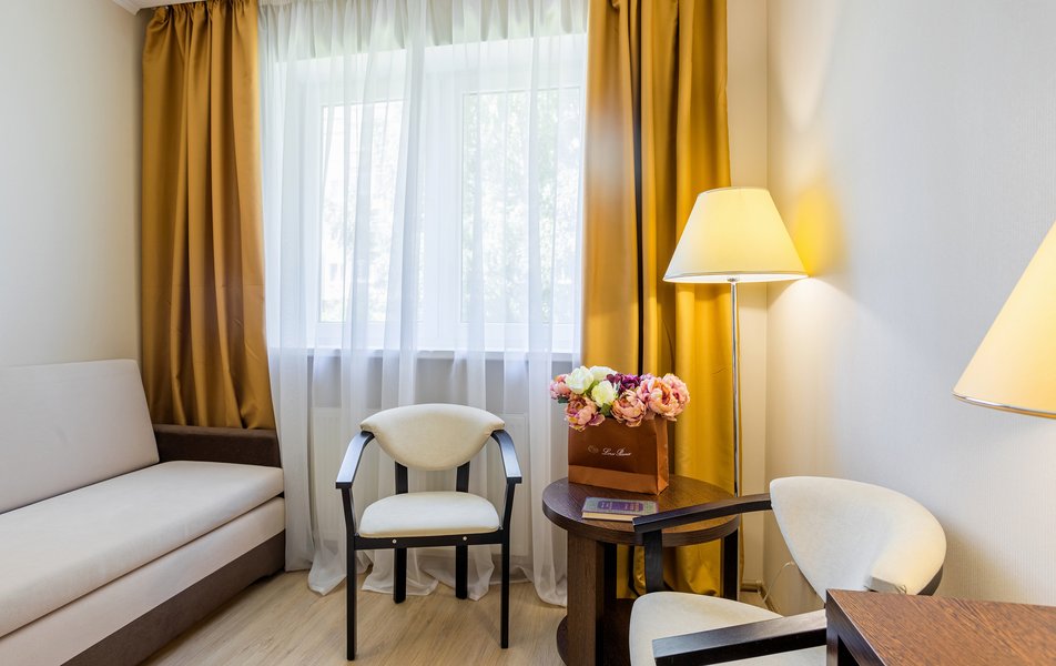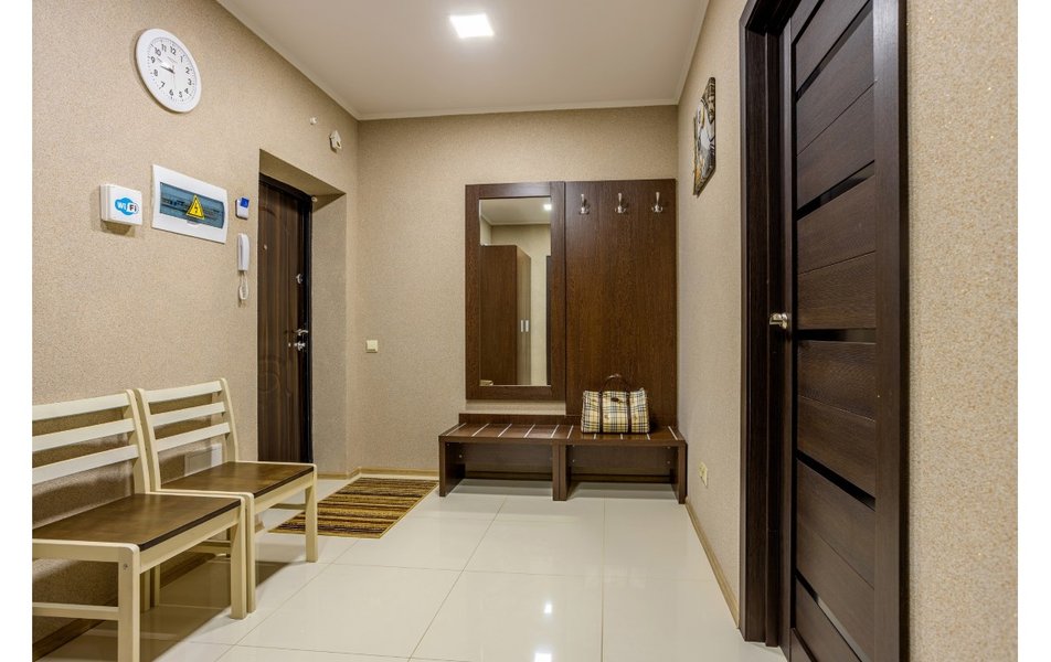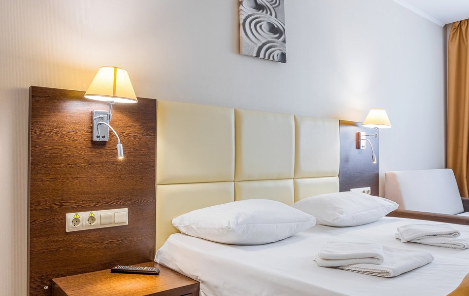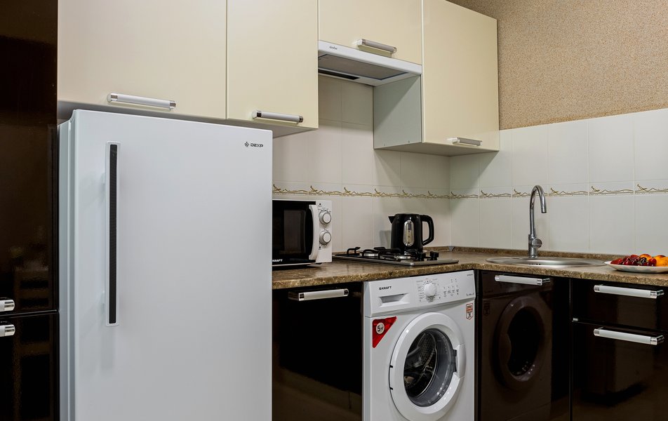 Апартаменты 2-местный 1-комнатный Количество комнат: 1-комнатный Тип номера: Апартаменты Дополнительное место: кресло-кровать Кол-во доп. мест: 1 Кол-во основных мест: 2 Площадь (кв. м): 35 Балкон: лоджия Мебель: зеркало, кровать двуспальная, прикроватные тумбочки, стол, стулья, тумба багажная, шкаф Оборудование: вентилятор, набор посуды, плита электрическая, стиральная машина, телевизор, утюг, холодильник, электрочайник Санузел: с душевой кабиной, туалетные принадлежности, фен Сервис: Wi-Fi бесплатно