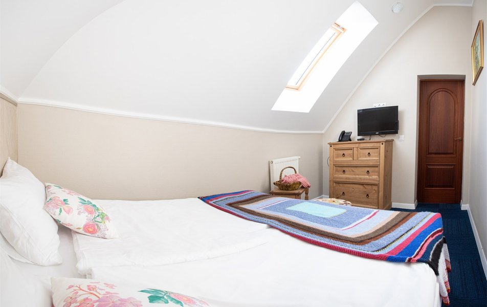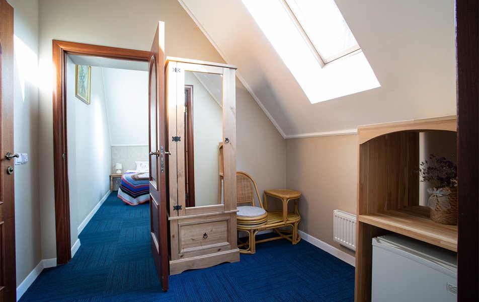 Отель небольшой - всего 10 номеров. Очень спокойный, уютный, с доброжелательным персоналом. Каждый номер оформлен в своем стиле и "принадлежит" своему персонажу. Кроме Гретты, хозяйки, здесь живут родители Карл и Аннет, няня Марта, кузина Хельга, дядюшка Вольдемар, бабушка Эльфрид, тётушка Берта, тётушка Оделия и Агнета (я забыла, кем она приходится Гретте). Мы жили в "дядюшке Гансе", самом простом и дешевом номере. Остались довольны. Смена полотенец и уборка ежедневно, смена белья раз в три дня. Завтраки хорошие, сытные, вкусные. Кофемашина с капсульным кофе. Плохо только то, что летом отключают отопление, а обогревателей не дают. А мы были в такую холодину, что приходилось греться в ванной комнате (там пол с подогревом). Вайфай неплохой, но иногда глючит, приходится переподключаться. В номере есть чайник, фен, гель-шампунь-мыло и тапочки. Отличное расположение - рядом центральная улица, "Янтарь Холл", лифт, множество сувенирных магазинов, кафе, "Пятёрочка" и "Спар". В общем, душевный отель, рекомендую.