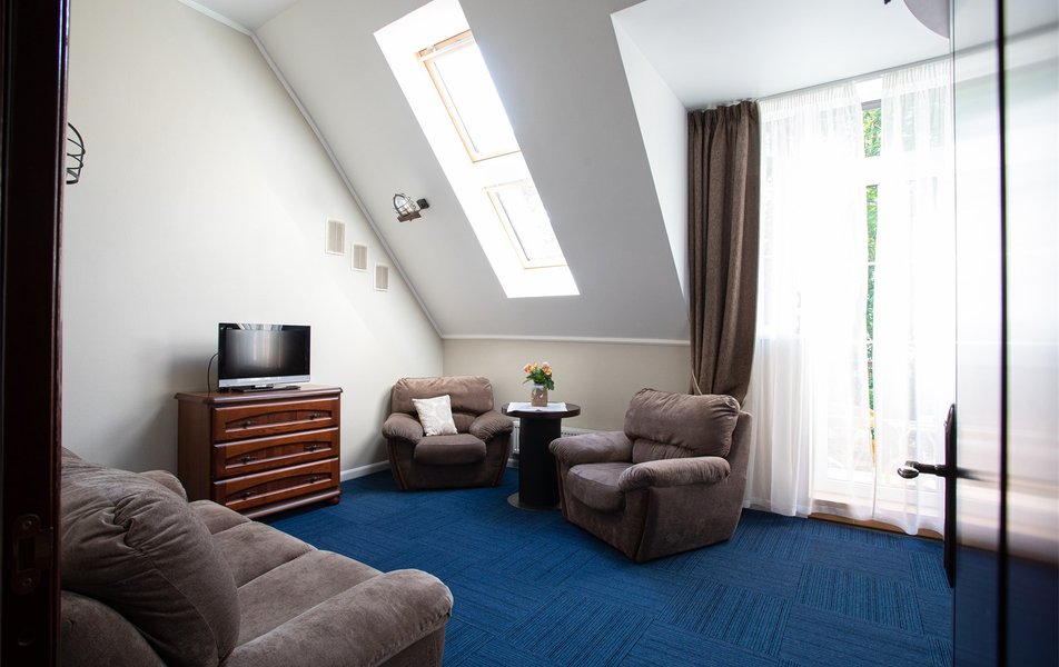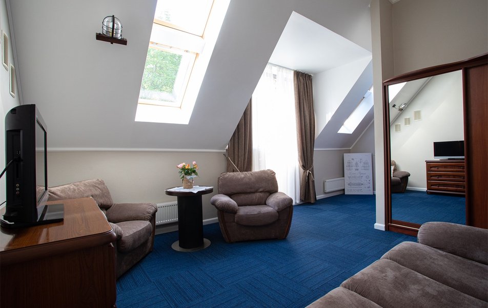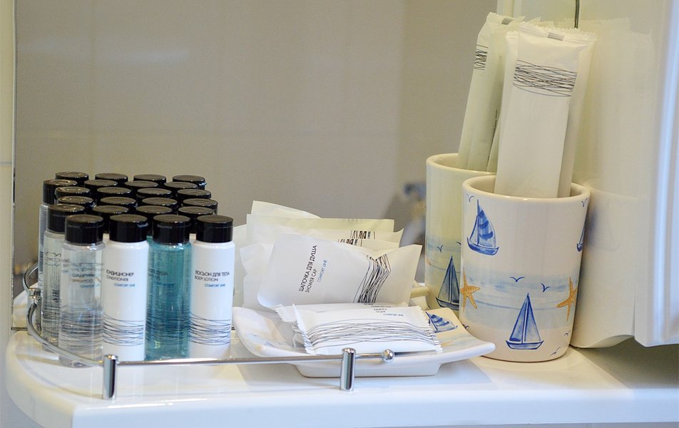 Локация лучше не бывает, берег моря, сосны, тишина и одновременно центр, рядом Янтарь холл. Отель небольшой уютный, оформлен с любовью и стильно. Чувствуется женская рука - уют, комфорт, красиво. Дамы, которые там дежурят, тоже в стиле отеля выглядят и ведут себя очень приветливо. Номер для 3* более, чем хорош, никаких нареканий. Если очень сильно придираться, то в нашем номере над душевой кабиной облупилась краска с потолка, заметила случайно. В ванной есть крючечки, умывальные принадлежности, фен. В номере Маленький холодильник, халаты, тапки, нобходимый набор посуды, вода в кулере на 3 этаже, чайные пакетики в номере. Завтраки сытные, довольно типовые, качество продуктов хорошее. Можно не задумываясь отель рекомендовать.