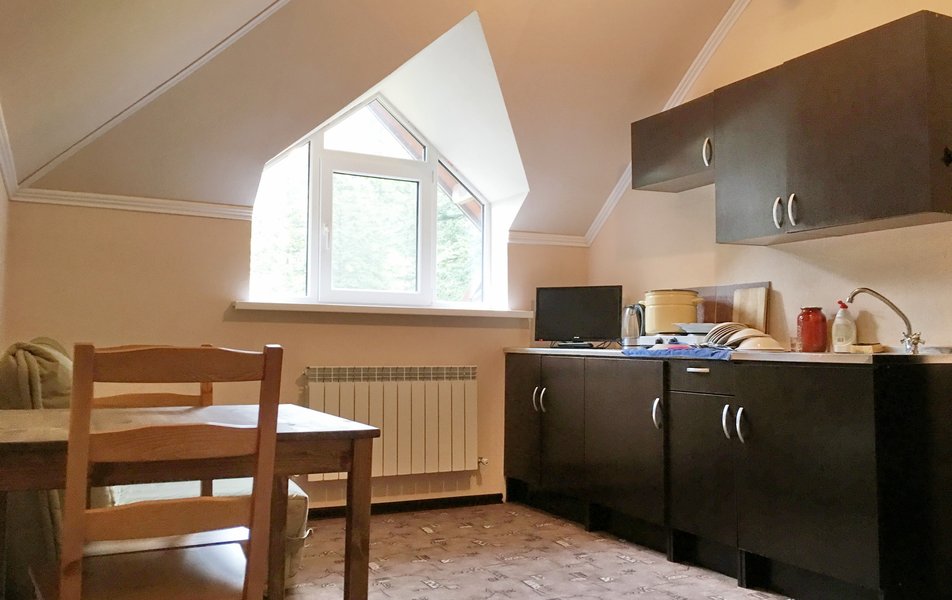 Отличный гостевой дом, уютный и тёплый. Нет перебоев с горячей водой, что немаловажно тут. После 22.00 тишина) Виды невероятные из любого окна. В номерах тепло, в ванной /туалете тёплый пол. Второй год останавливаемся тут и очень довольны. Любовь 🫶 В номере есть все необходимое, включая посуду. Единственный минус - не убирается мусор, но не вижу проблемы захватить его с собой. Очень удобное месторасположение от канатки, а главное - от конца Лесной трассы. Практически сразу дома)