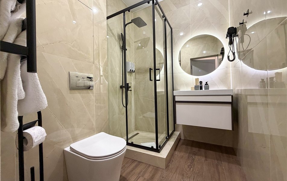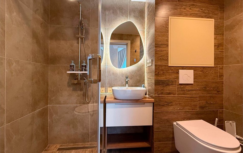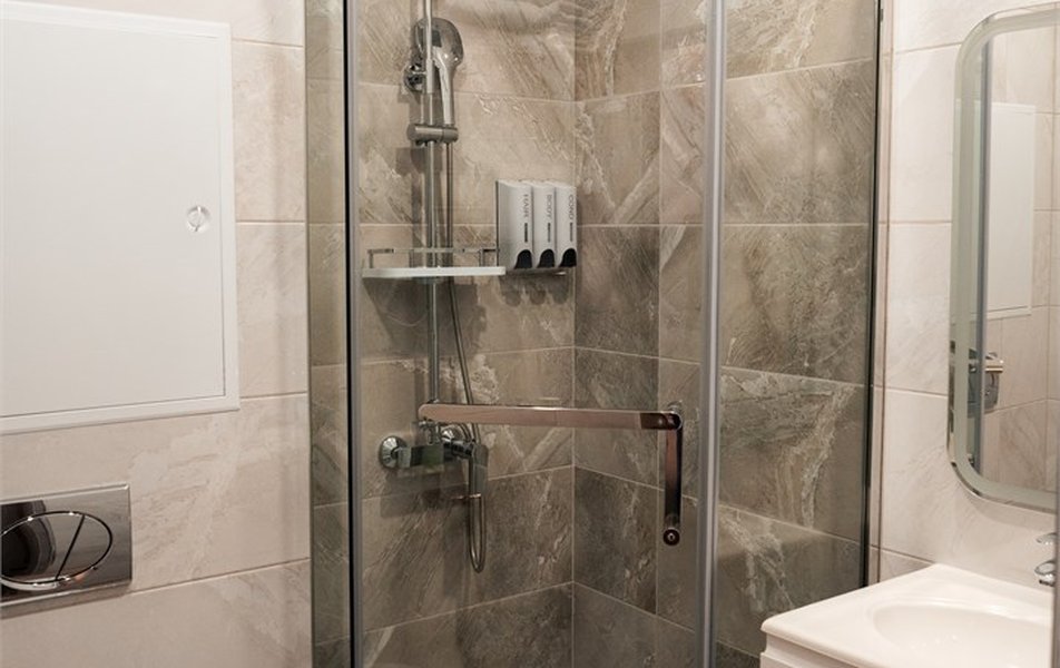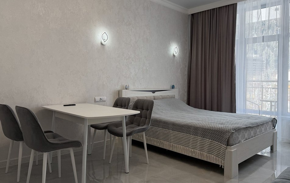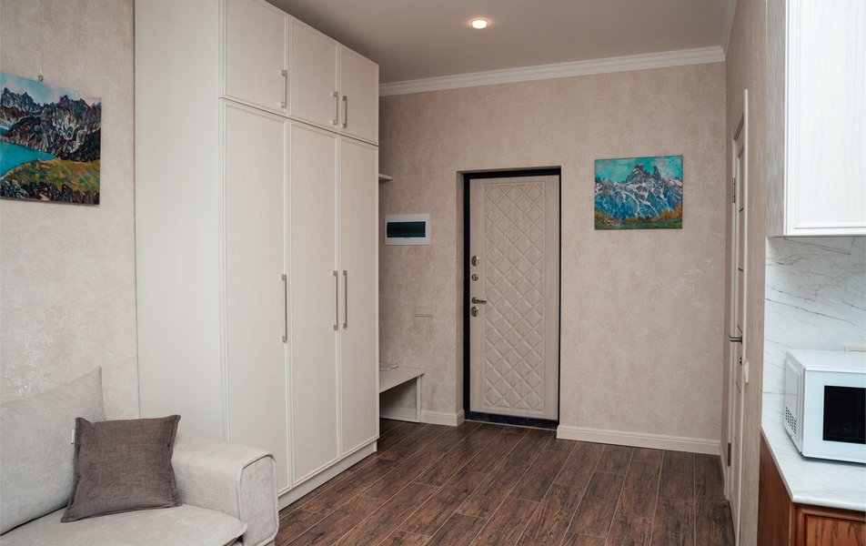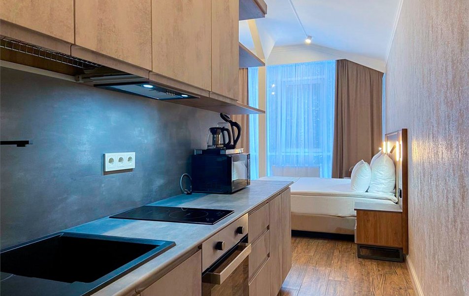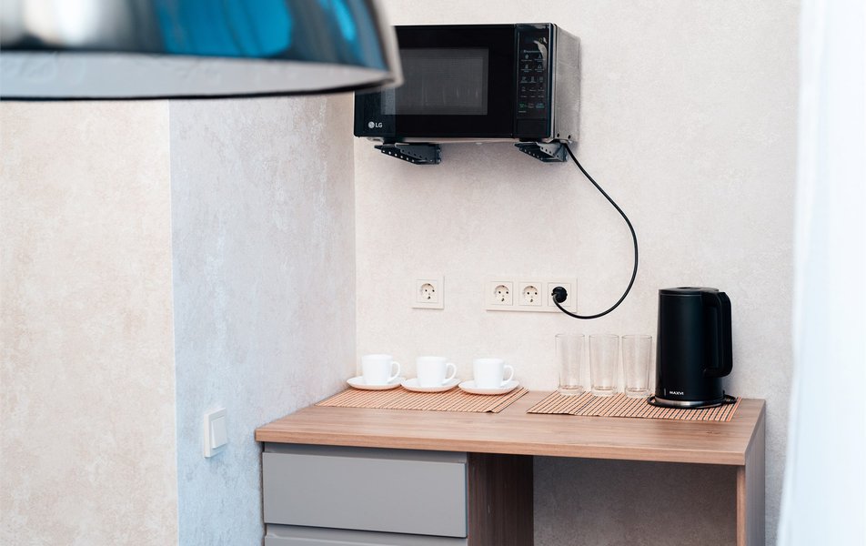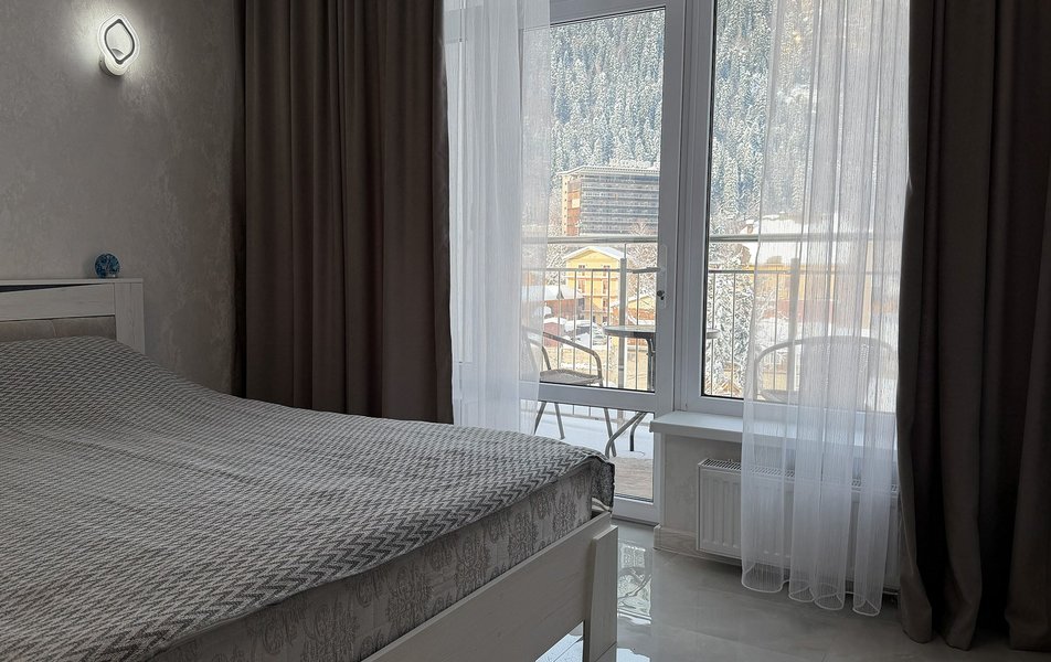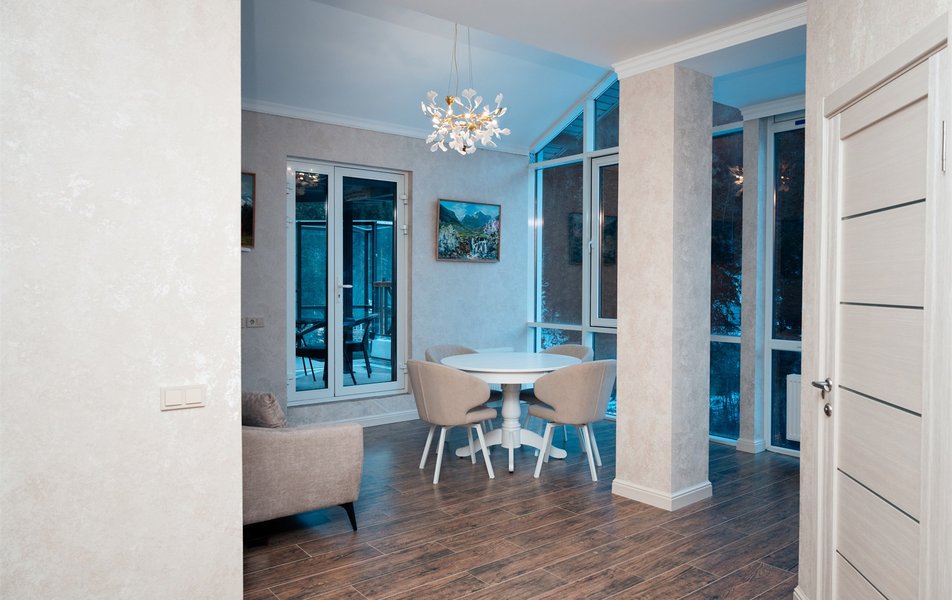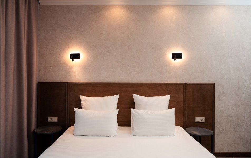 Люкс 2-местный 2-комнатный Количество комнат: 2-комнатный Тип номера: Люкс Кол-во доп. мест: 4 Кол-во основных мест: 2 Площадь (кв. м): 42 Мебель: вешалка, диван, зеркало, кровать двуспальная, прикроватные тумбочки, стол, стулья, шкаф Оборудование: микроволновая печь, набор посуды, плита электрическая, телевизор, холодильник, чайный набор посуды, электрочайник Санузел: с душем, туалетные принадлежности, фен Сервис: Wi-Fi бесплатно, смена полотенец, смена постельного белья, уборка номера
