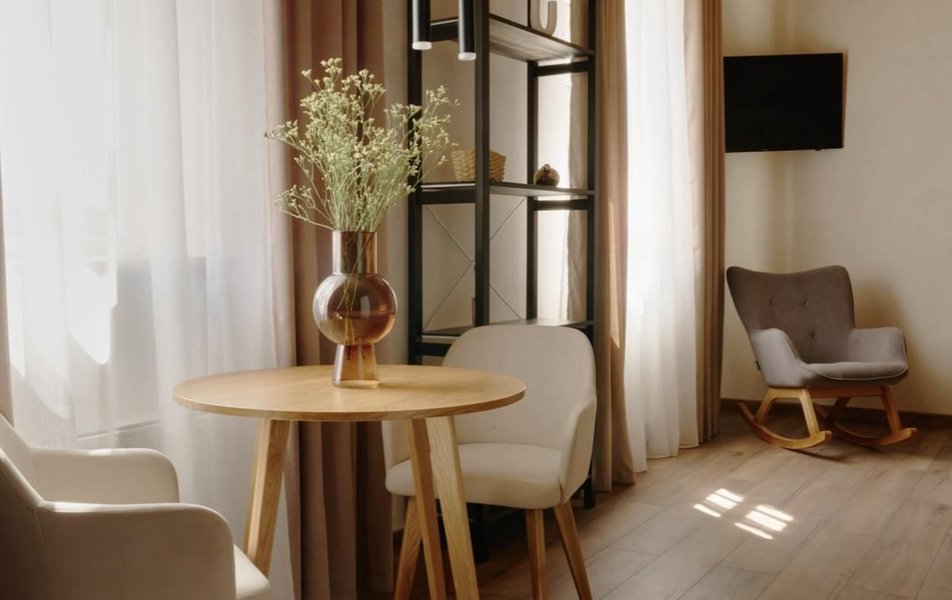 Номер 2-местный 1-комнатный (TWIN/DBL) Количество комнат: 1-комнатный Тип номера: Апартаменты Вид из номера: на двор Кол-во основных мест: 2 Площадь (кв. м): 25 Мебель: вешалка, зеркало, кровати односпальные /одна двуспальная кровать, прикроватные тумбочки, стол, стулья, шкаф Оборудование: телевизор ЖК, чайный набор посуды, электрочайник Санузел: с душем, туалетные принадлежности, фен Сервис: Wi-Fi бесплатно, смена полотенец, смена постельного белья, уборка номера