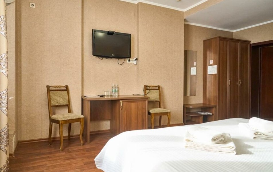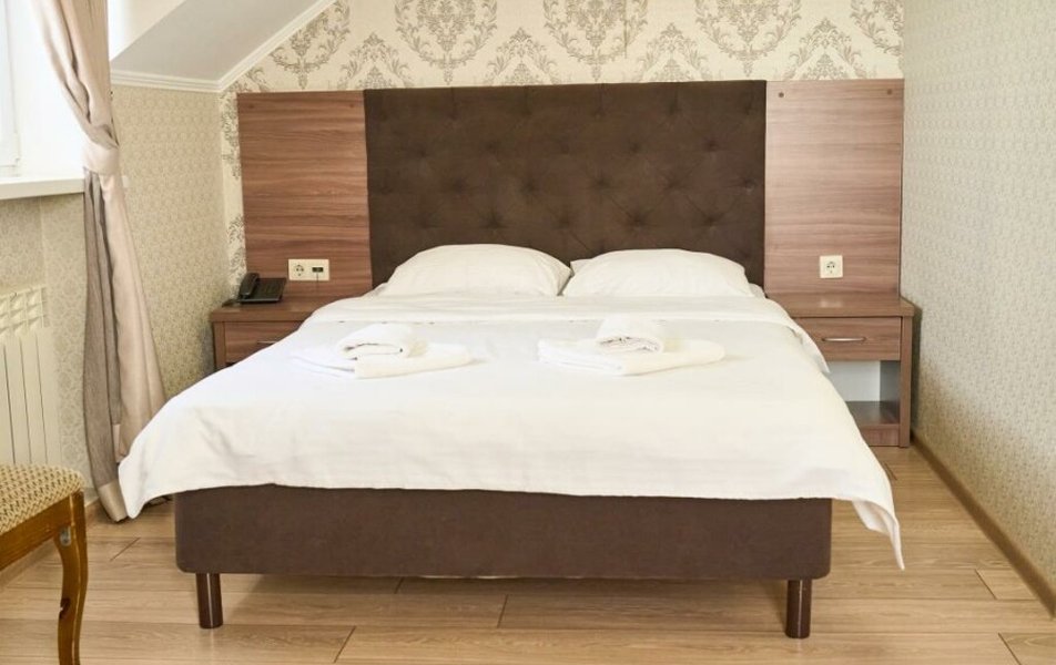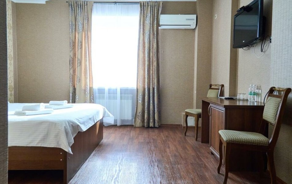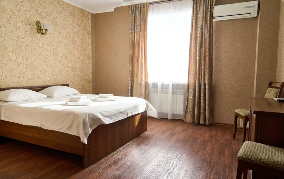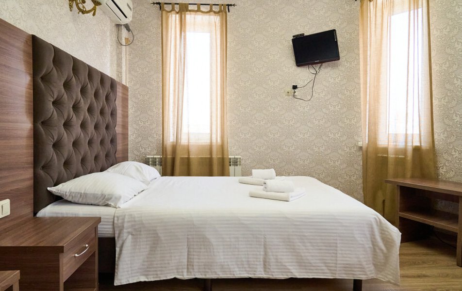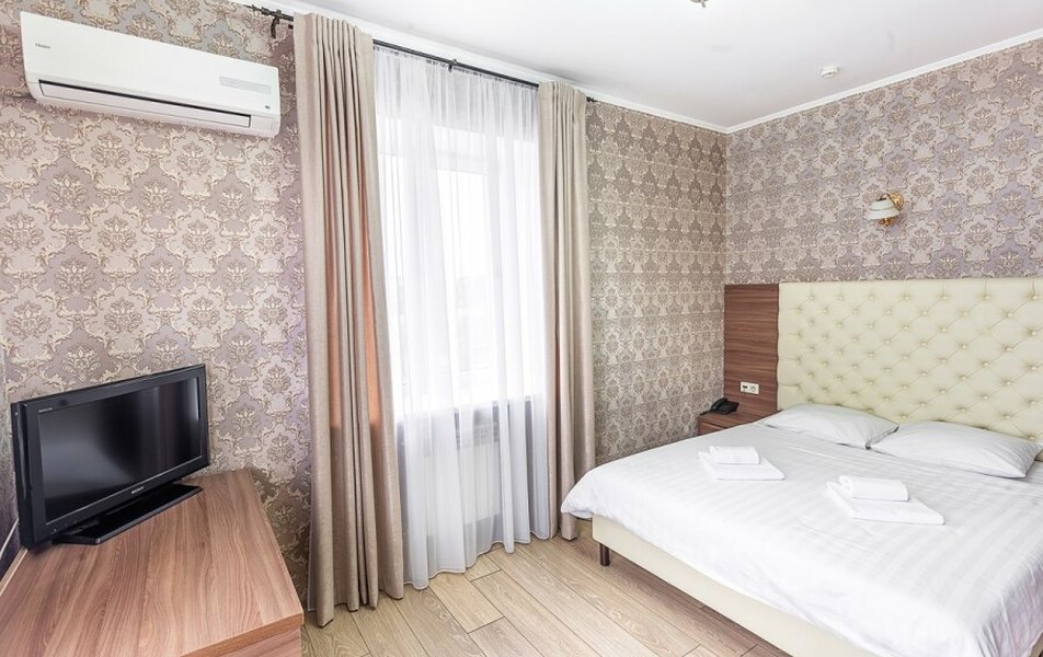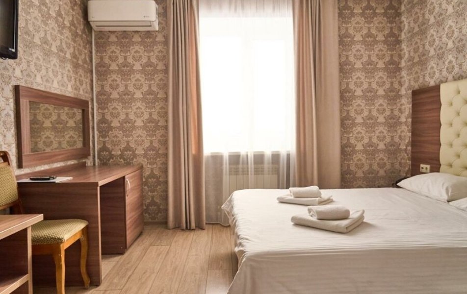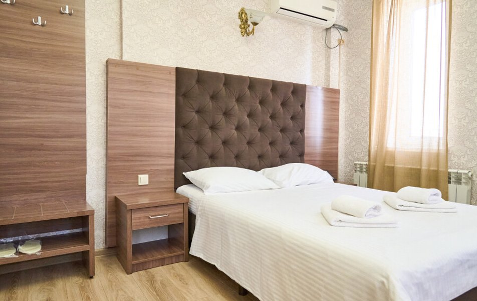Стандартный 2-местный (DBL) Количество комнат: 1-комнатный Тип номера: Стандартный Кол-во основных мест: 2 Мебель: вешалка, зеркало, кровать двуспальная, прикроватные тумбочки, стол, стулья, шкаф Оборудование: кондиционер, телевизор, телефон Санузел: с душем, туалетные принадлежности, фен Сервис: Wi-Fi бесплатно, смена полотенец, смена постельного белья, уборка номера