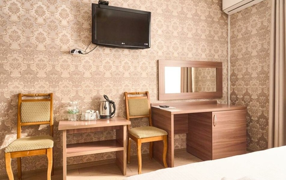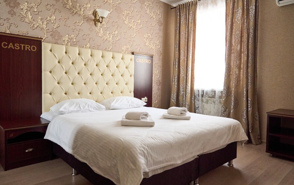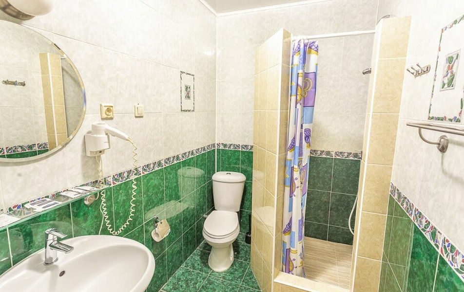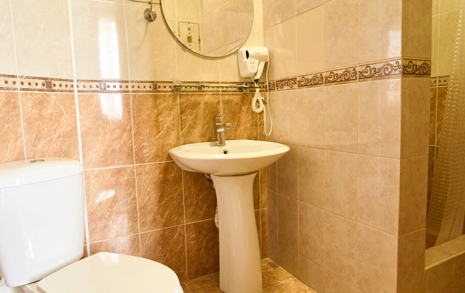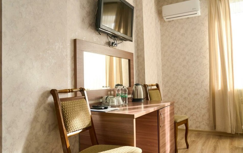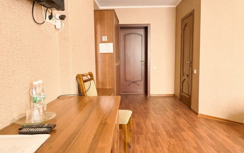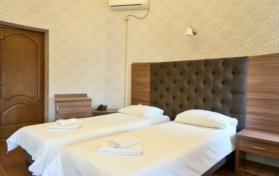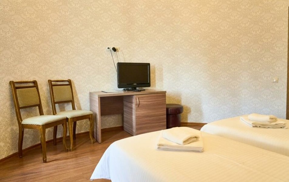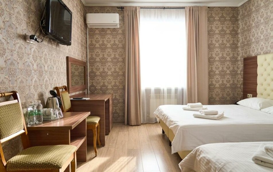 Стандартный 2-местный (DBL) Количество комнат: 1-комнатный Тип номера: Стандартный Кол-во основных мест: 2 Мебель: вешалка, зеркало, кровать двуспальная, прикроватные тумбочки, стол, стулья, шкаф Оборудование: кондиционер, телевизор, телефон Санузел: с душем, туалетные принадлежности, фен Сервис: Wi-Fi бесплатно, смена полотенец, смена постельного белья, уборка номера