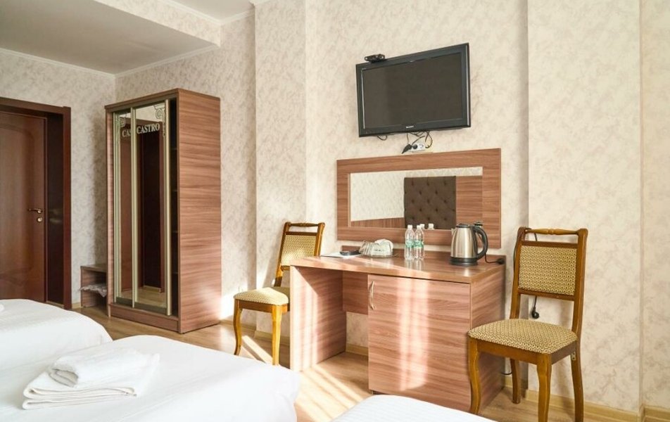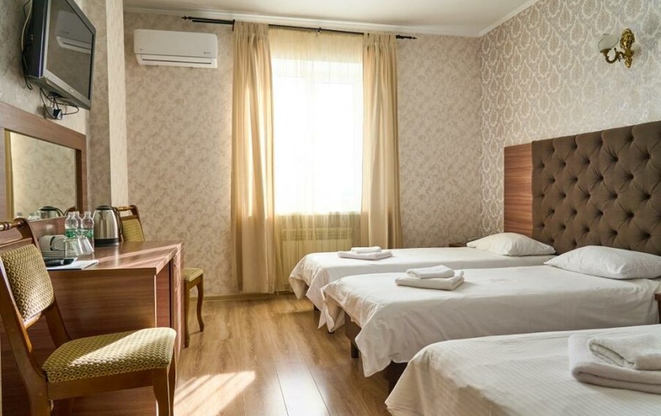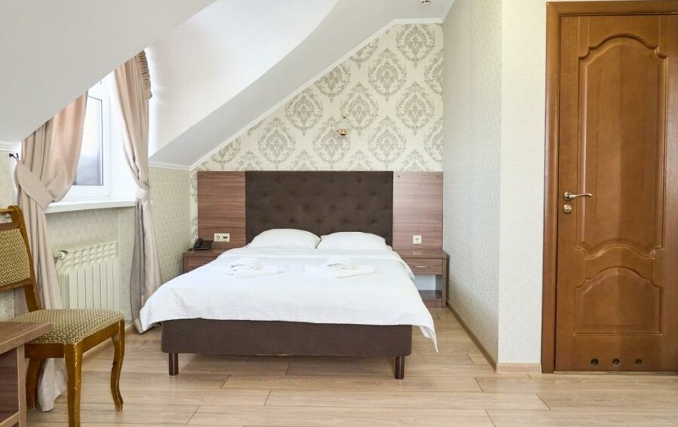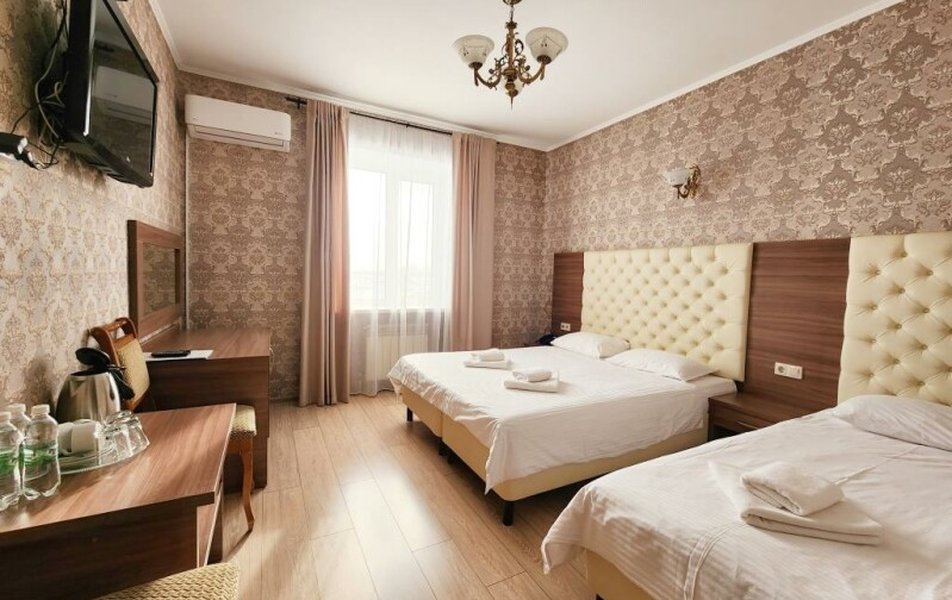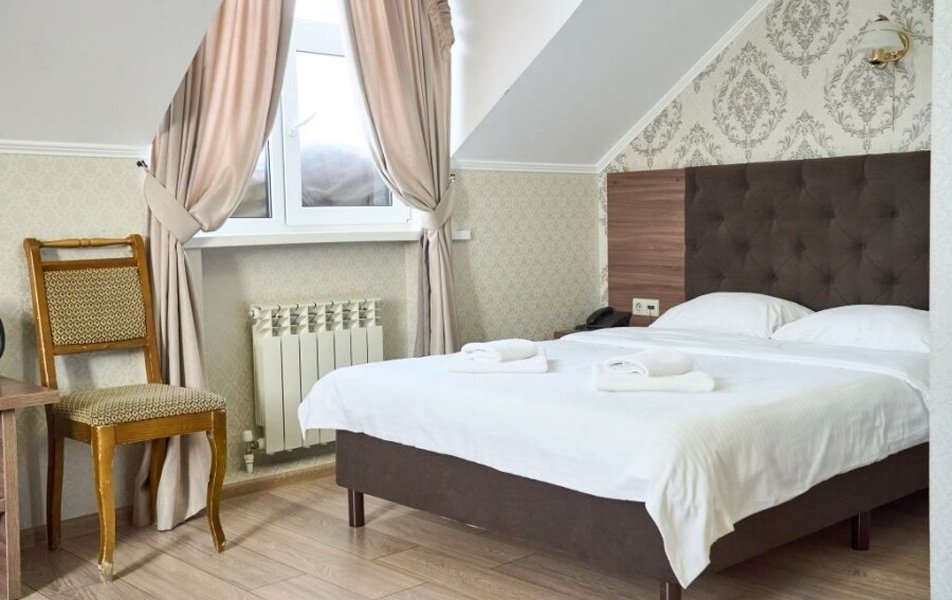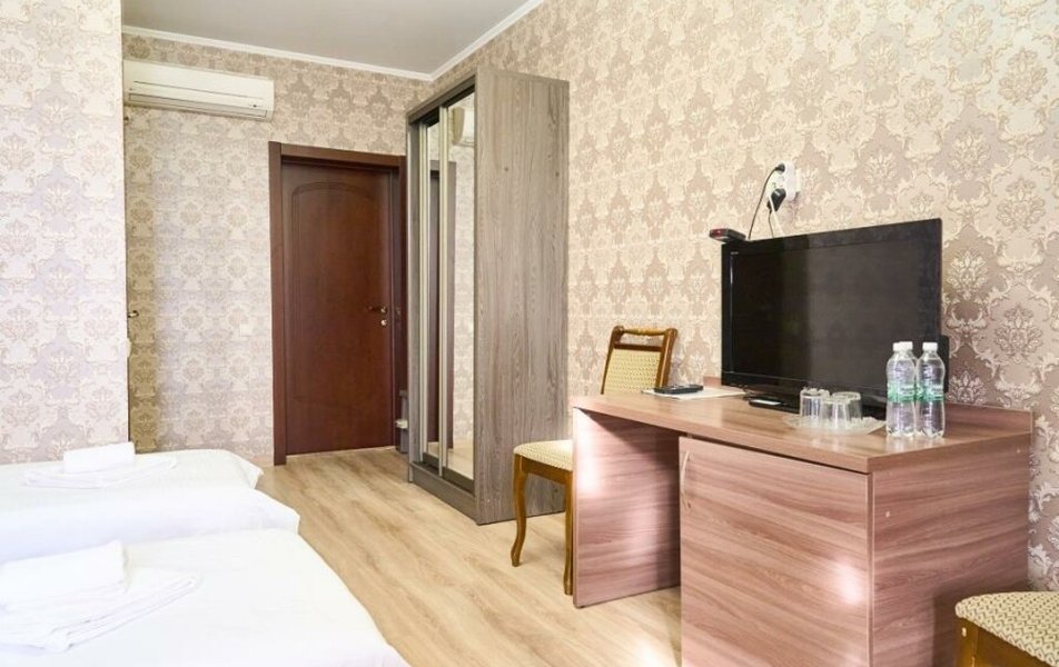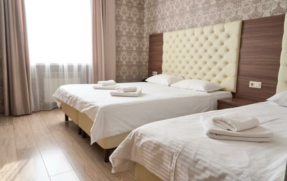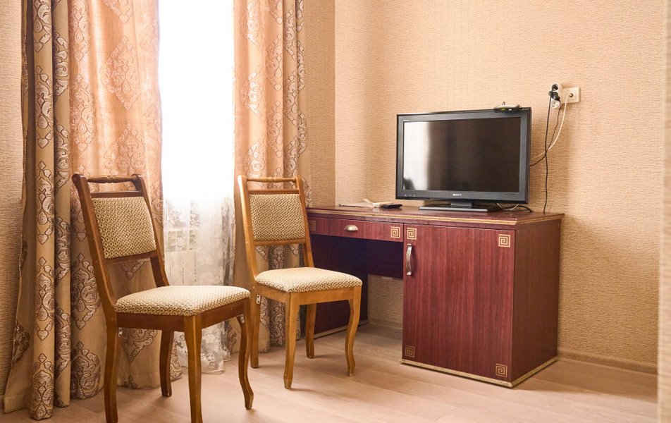 Стандартный 2-местный (DBL) Количество комнат: 1-комнатный Тип номера: Стандартный Кол-во основных мест: 2 Мебель: вешалка, зеркало, кровать двуспальная, прикроватные тумбочки, стол, стулья, шкаф Оборудование: кондиционер, телевизор, телефон Санузел: с душем, туалетные принадлежности, фен Сервис: Wi-Fi бесплатно, смена полотенец, смена постельного белья, уборка номера