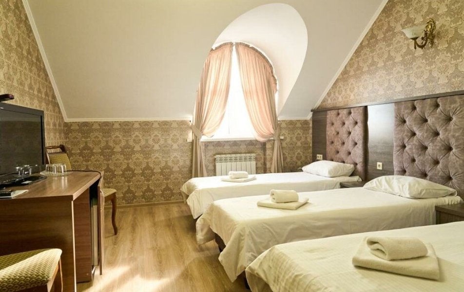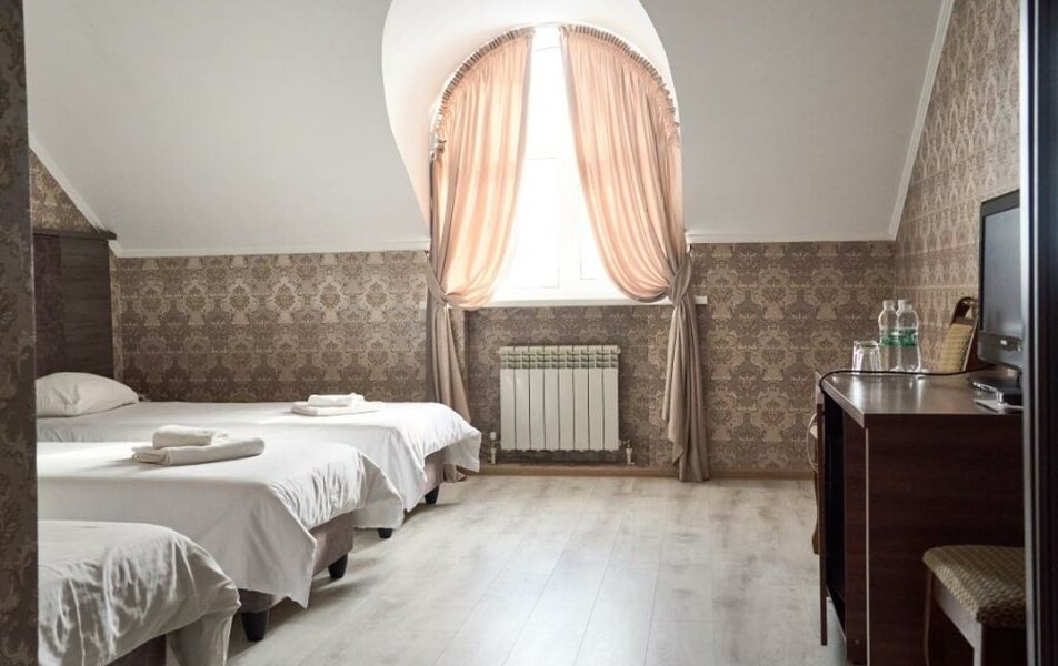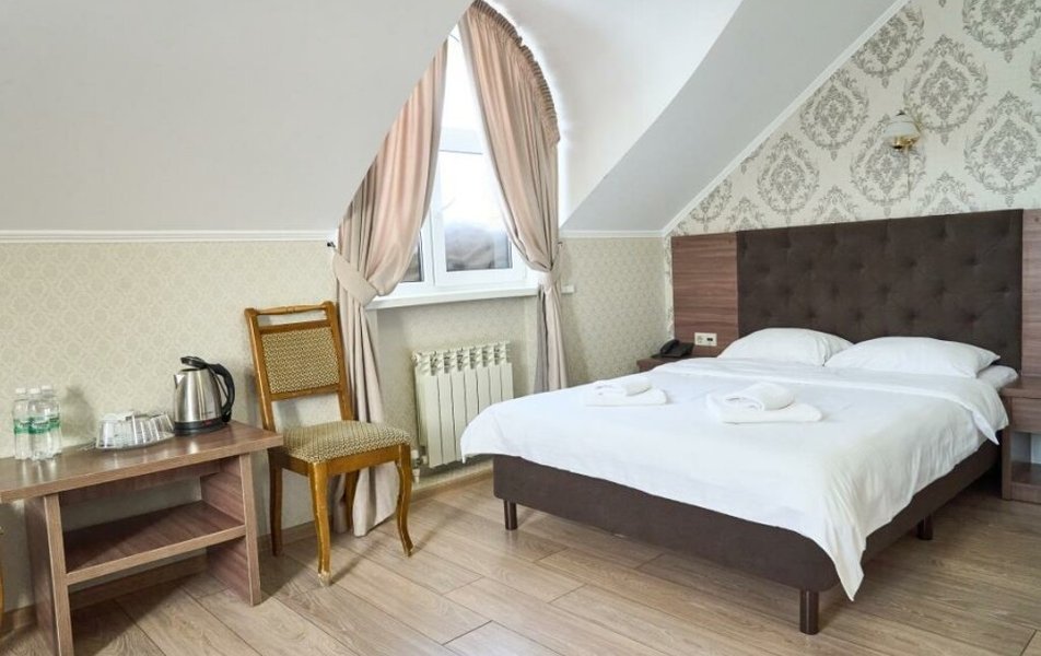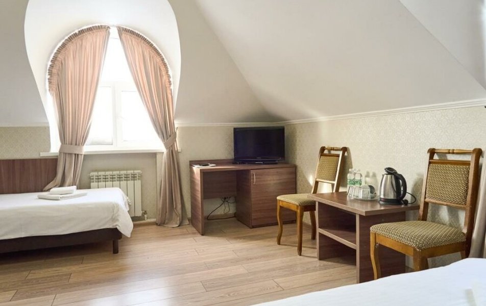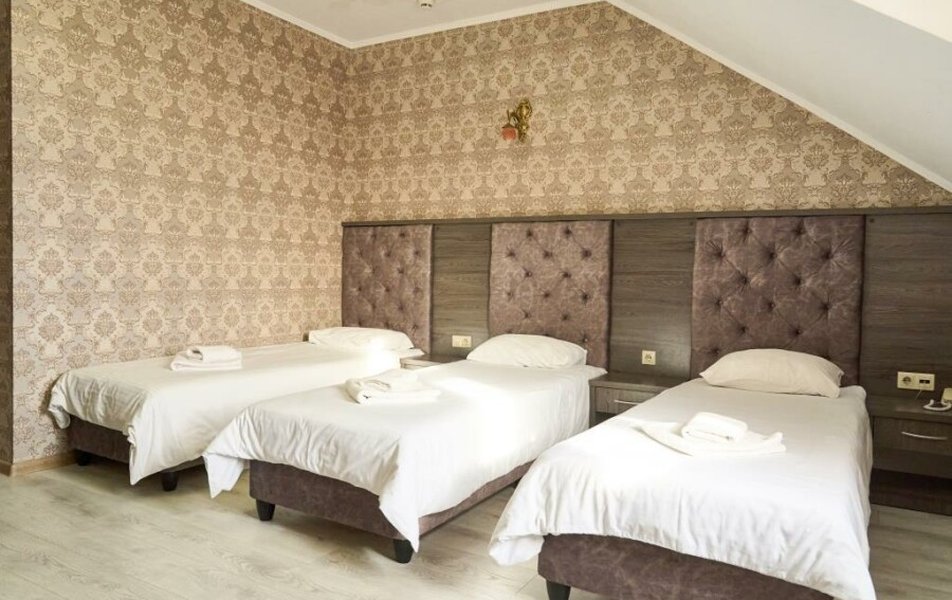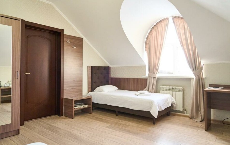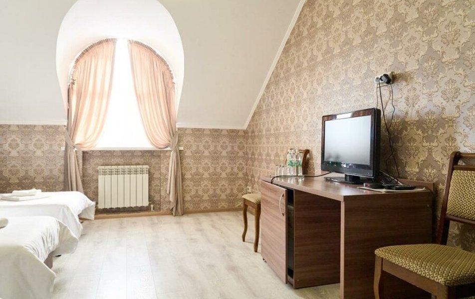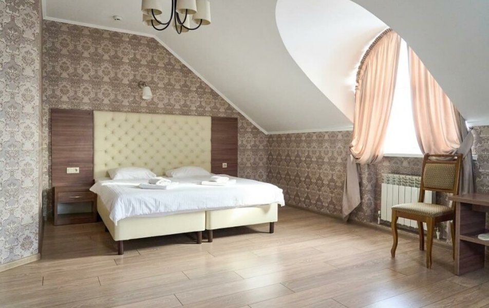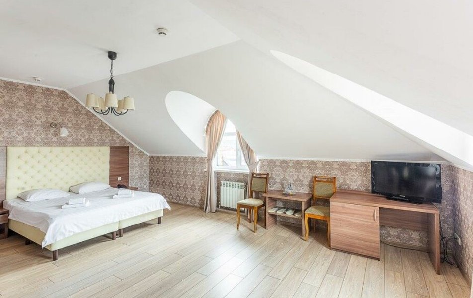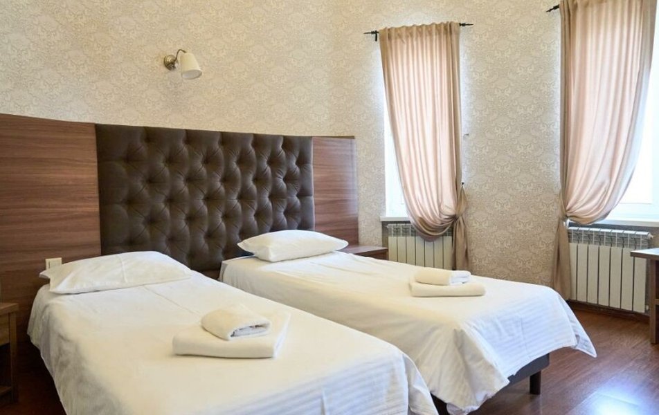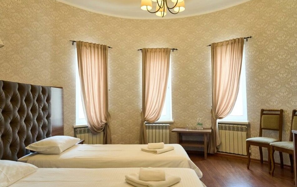 Полулюкс 2-местный (с ванной) Количество комнат: 1-комнатный Тип номера: Полулюкс Кол-во основных мест: 2 Площадь (кв. м): 25 Мебель: вешалка, зеркало, кровать двуспальная, прикроватные тумбочки, стол, стулья, шкаф Оборудование: кондиционер, телевизор, телефон Санузел: с ванной, туалетные принадлежности, фен Сервис: Wi-Fi бесплатно, смена полотенец, смена постельного белья, уборка номера