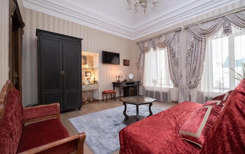 Отель замечательный! Маленький, уютный, супер чистые комнаты с очень прикольными дизайнерскими интерьерами. Кровати - суперудобные. Рядом ресторан, где подают вкуснейшие завтраки, которые включены в стоимость номера, но и обед там тоже был на высоте. Персонал любезный и внимательный. Удобное расположение в шаговой доступности от главных туристических мест- Кремль, ул. Баумана, набережная. Что ещё надо туристу? Были с детьми, они тоже были в восторге. Можно было бы, поставили 6 звёзд.