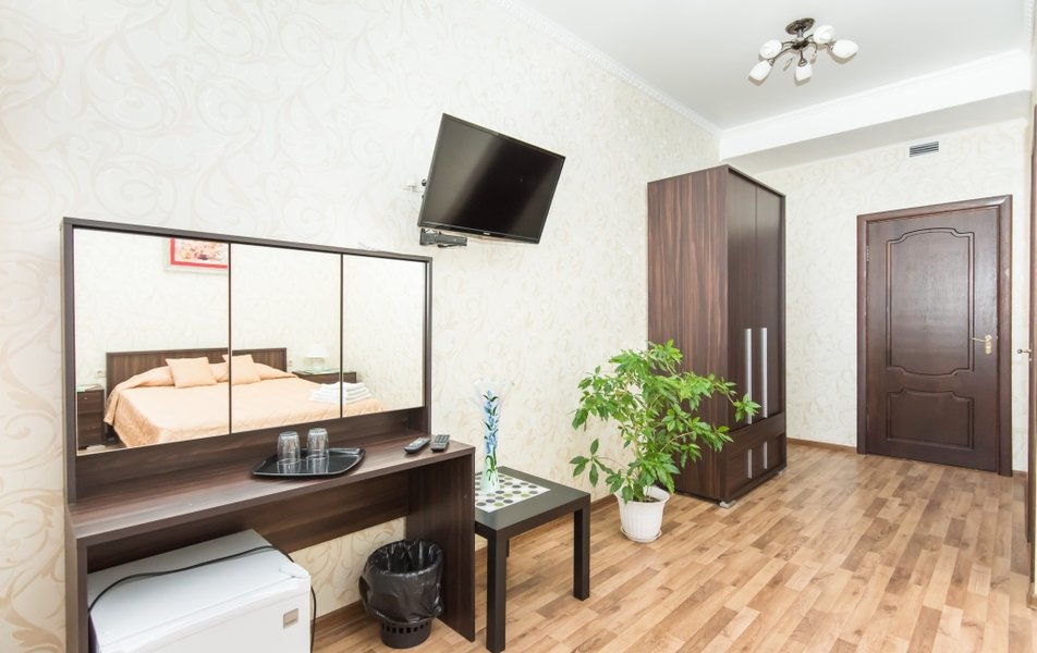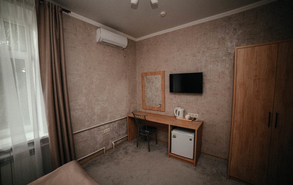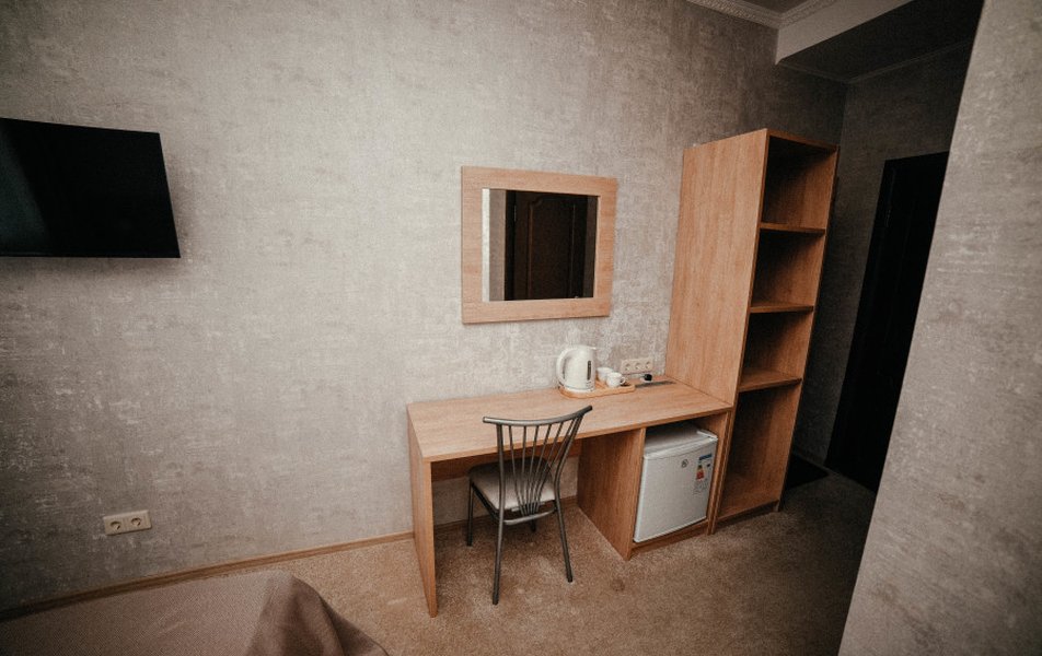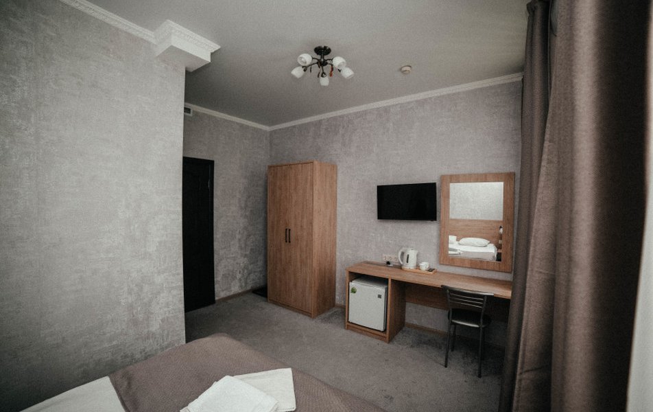Чистый номер , уютный. Мягкая кровать ,чайник , холодильник. Хороший напор горячей воды( единственное долго уходит вода с душа). Приветливый персонал. Нам понравилось. Даже был Чак Чак в качестве угощения)))