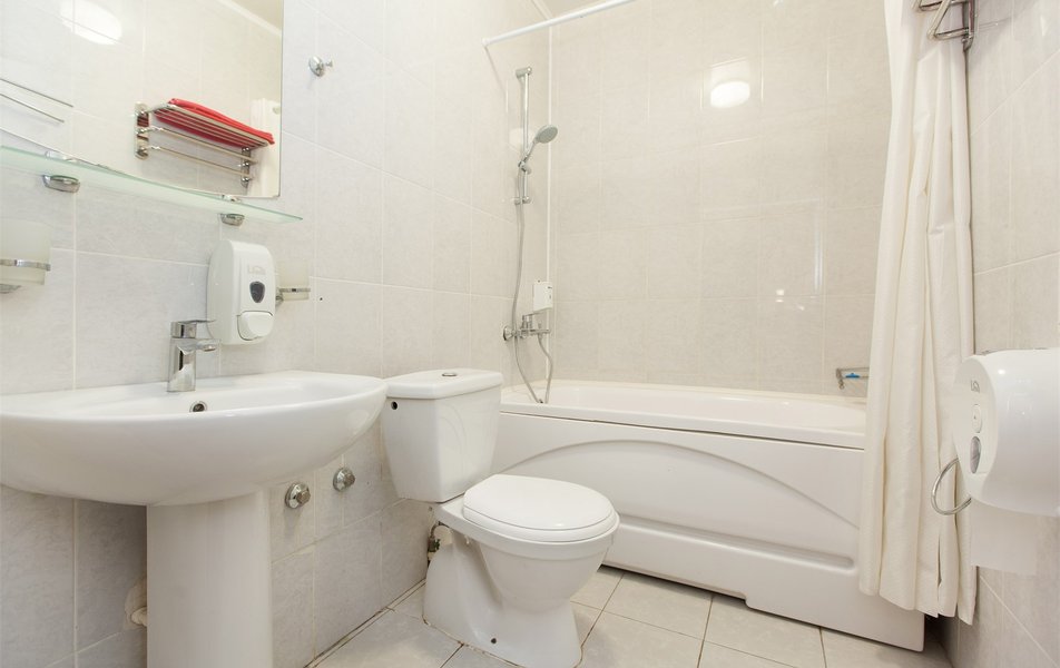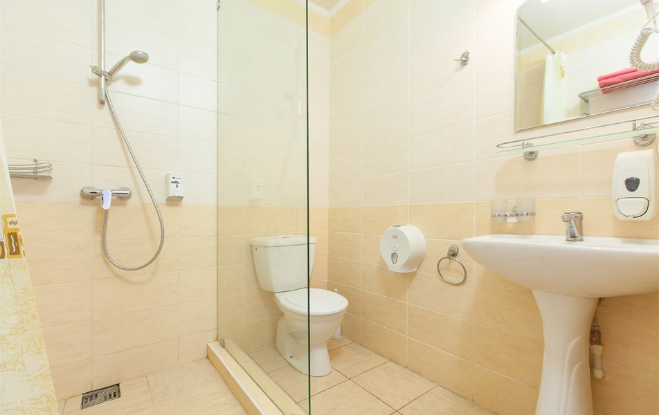 Стандартный 4-местный 2-комнатный Количество комнат: 2-комнатный Тип номера: Стандартный Вид из номера: на город Кол-во основных мест: 4 Площадь (кв. м): 16 Мебель: вешалка, зеркало, кровати односпальные, прикроватные тумбочки, шкаф Оборудование: кондиционер, телевизор ЖК, телефон Санузел: с душем, туалетные принадлежности, фен Сервис: Wi-Fi бесплатно, мини-бар, смена полотенец, смена постельного белья, уборка номера, услуги внутренней телефонной связи