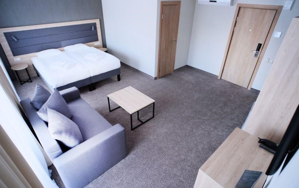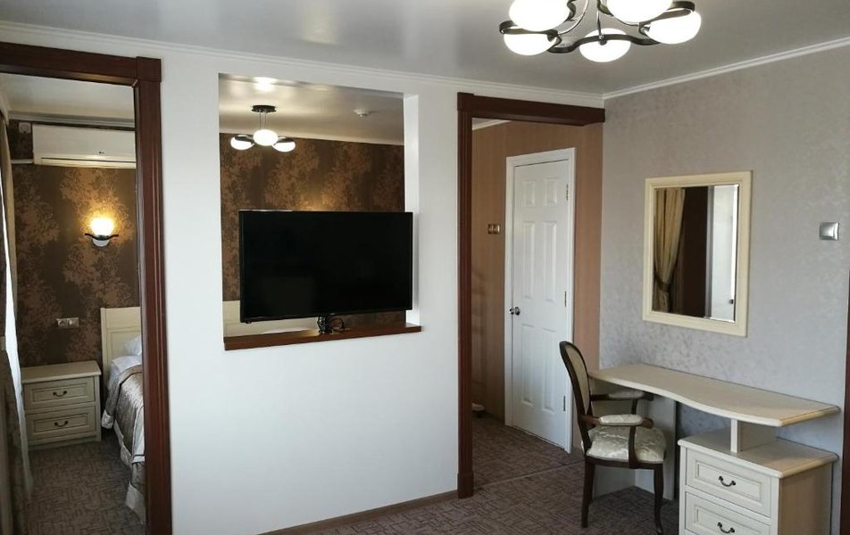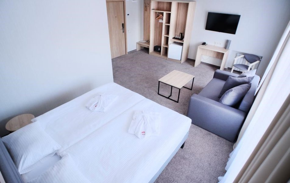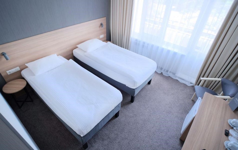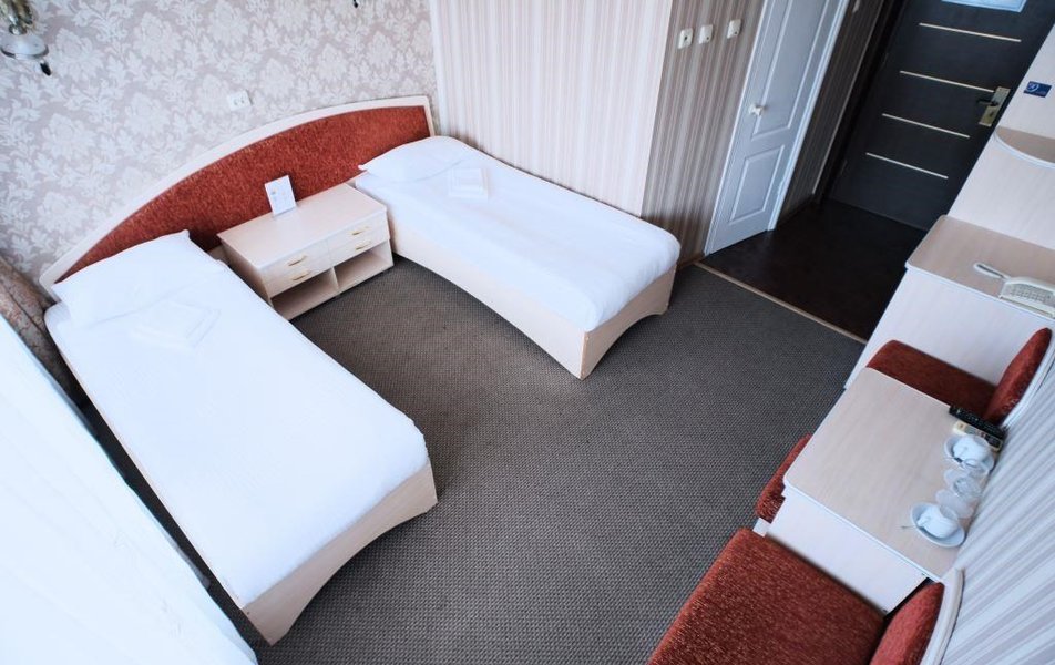 Стандартный 2-местный DBL Количество комнат: 1-комнатный Тип номера: Стандартный Кол-во номеров: 10 Кол-во основных мест: 2 Площадь (кв. м): 18 Мебель: вешалка, зеркало, кровать двуспальная, прикроватные тумбочки, стол, стулья, шкаф Оборудование: кондиционер: не во всех номерах, мини-холодильник, телевизор, телефон Санузел: с душем Сервис: Wi-Fi бесплатно, room-сервис, мини-бар, смена полотенец: ежедневно, смена постельного белья: на 3 день, уборка номера: ежедневно, услуги внутренней телефонной связи