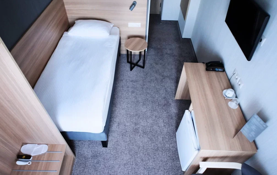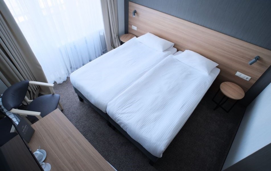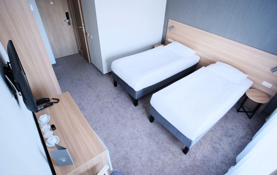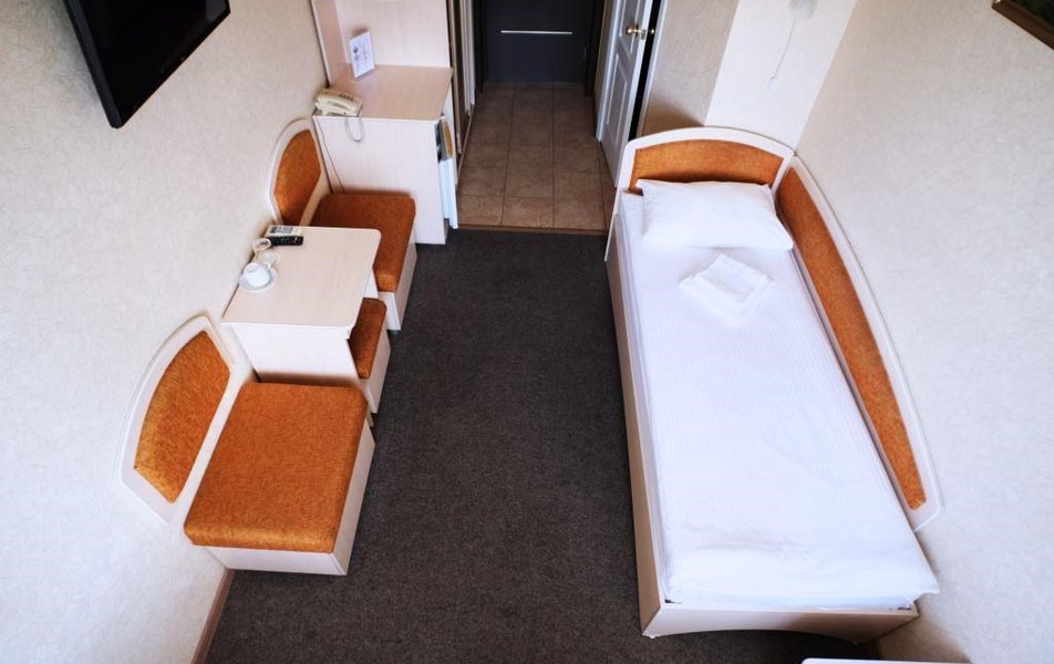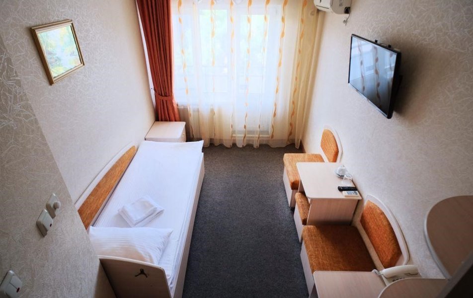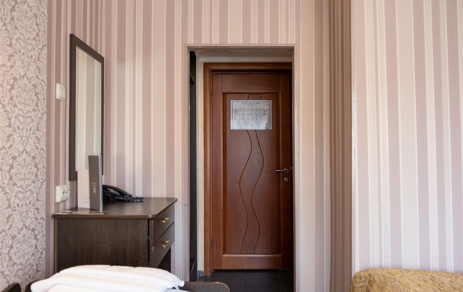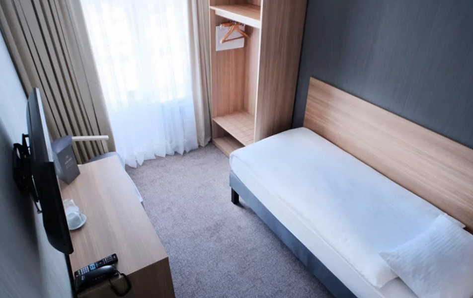 Стандартный 1-местный Количество комнат: 1-комнатный Тип номера: Стандартный Кол-во номеров: 41 Кол-во основных мест: 1 Площадь (кв. м): 13 Мебель: вешалка, зеркало, кровать односпальная, прикроватная тумбочка, стол, стул, шкаф Оборудование: кондиционер: не во всех номерах, мини-холодильник, телевизор, телефон Санузел: с душем Сервис: Wi-Fi бесплатно, room-сервис, мини-бар, смена полотенец: ежедневно, смена постельного белья: на 3 день, уборка номера: ежедневно, услуги внутренней телефонной связи
