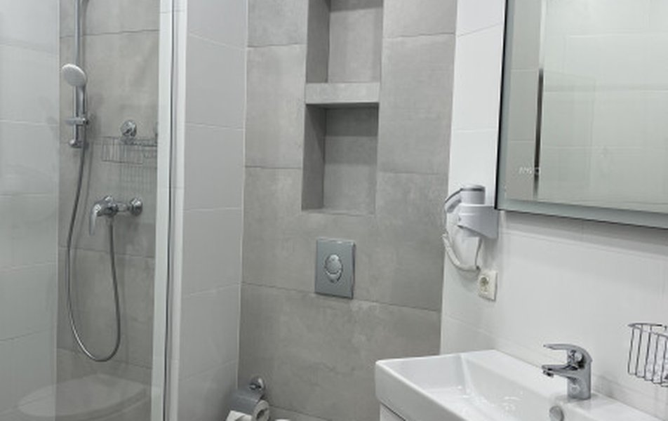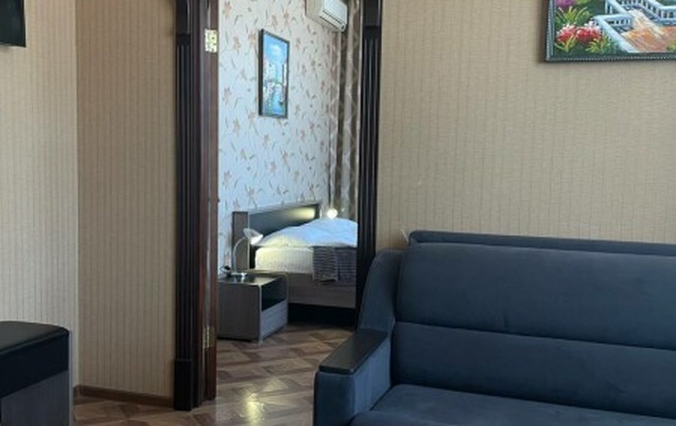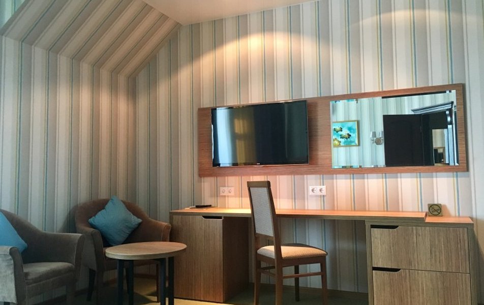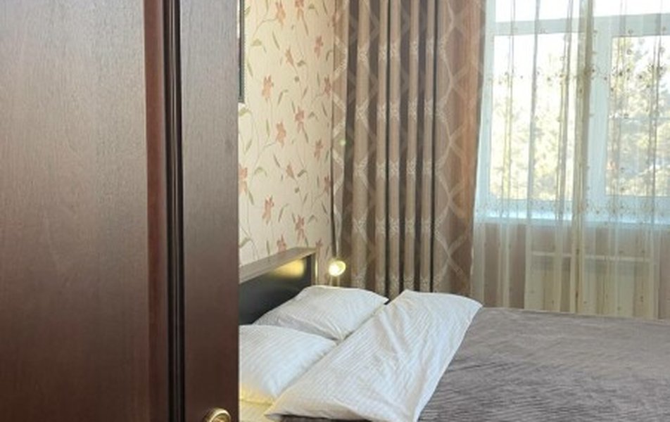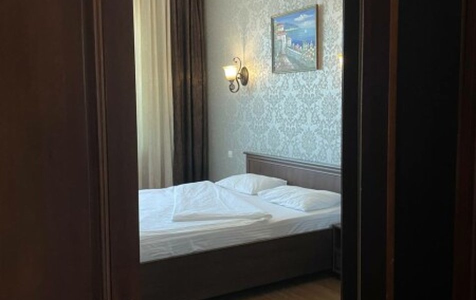 Апартаменты 2-местный (DBL) Количество комнат: 1-комнатный Тип номера: Апартаменты Кол-во основных мест: 2 Мебель: вешалка, зеркало, кровать двуспальная, прикроватные тумбочки, стол, стулья, шкаф Оборудование: кондиционер, набор посуды, плита электрическая, сейф, телевизор, холодильник, чайный набор посуды, электрочайник Санузел: с душем, тапочки, туалетные принадлежности, халат Сервис: Wi-Fi бесплатно, смена полотенец, смена постельного белья, уборка номера