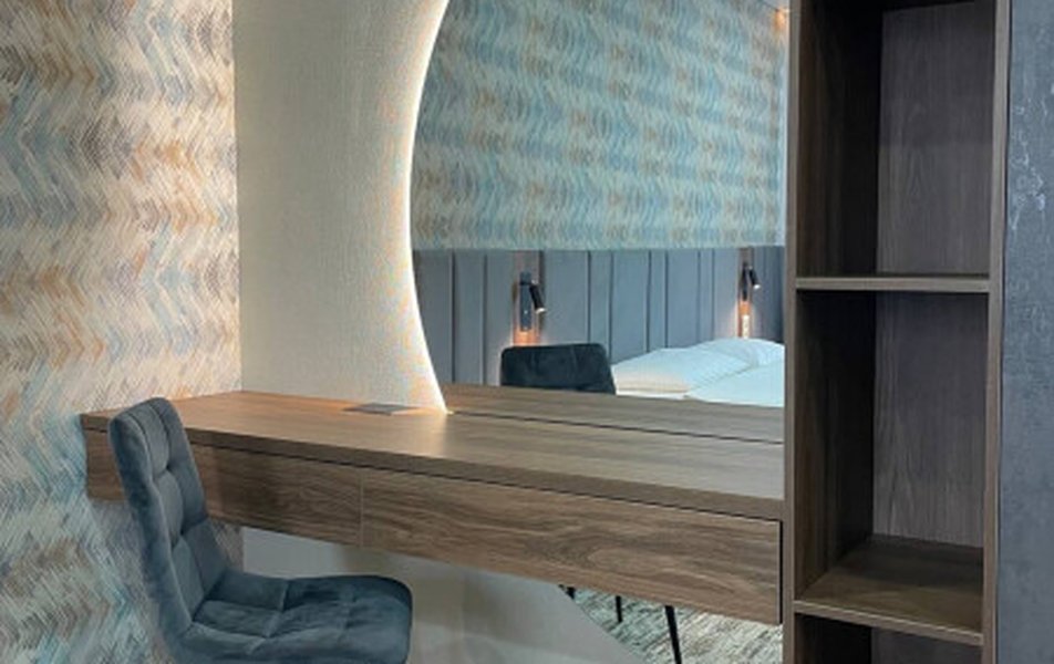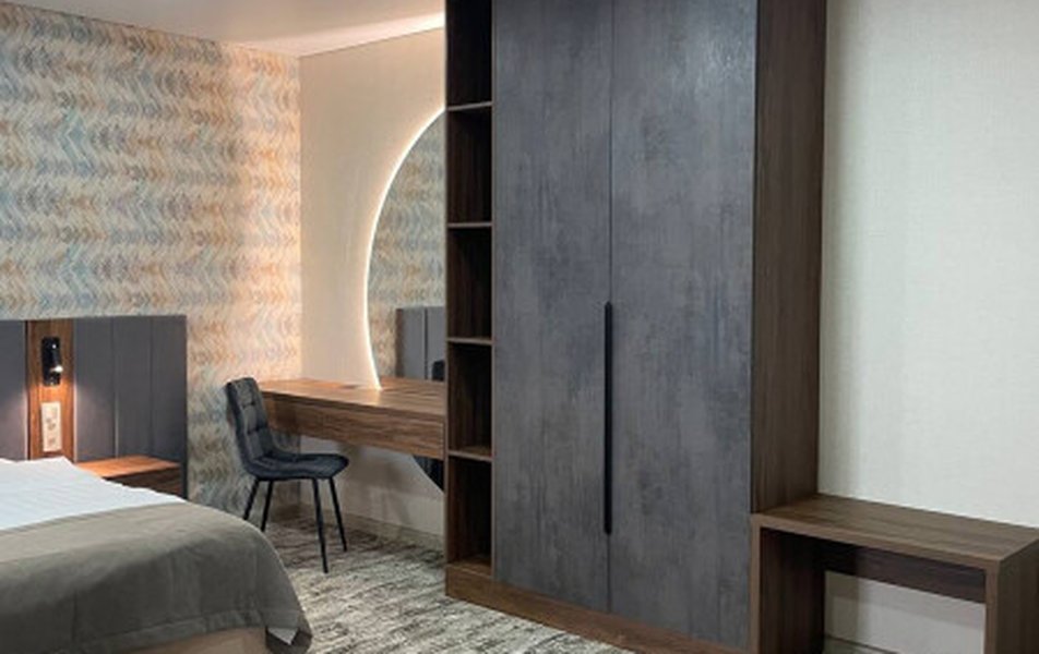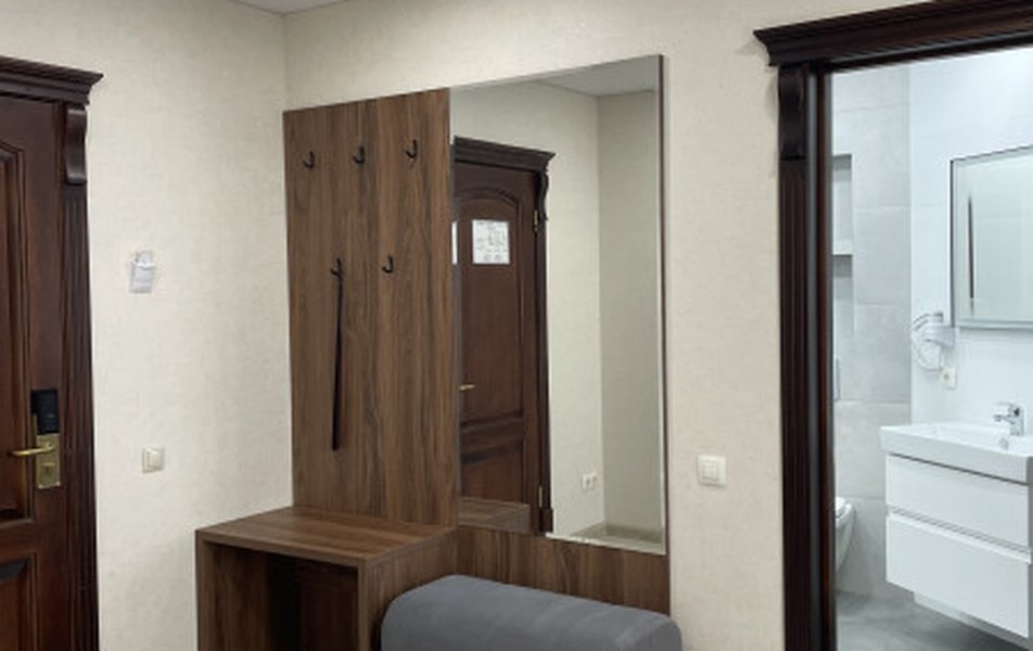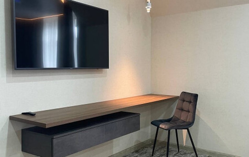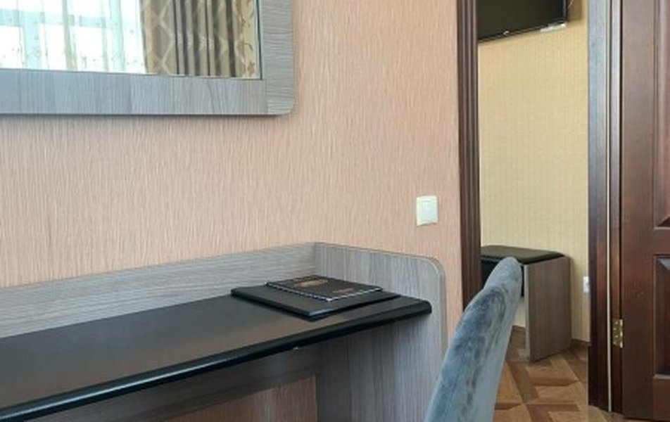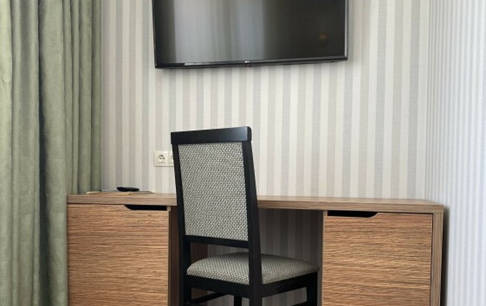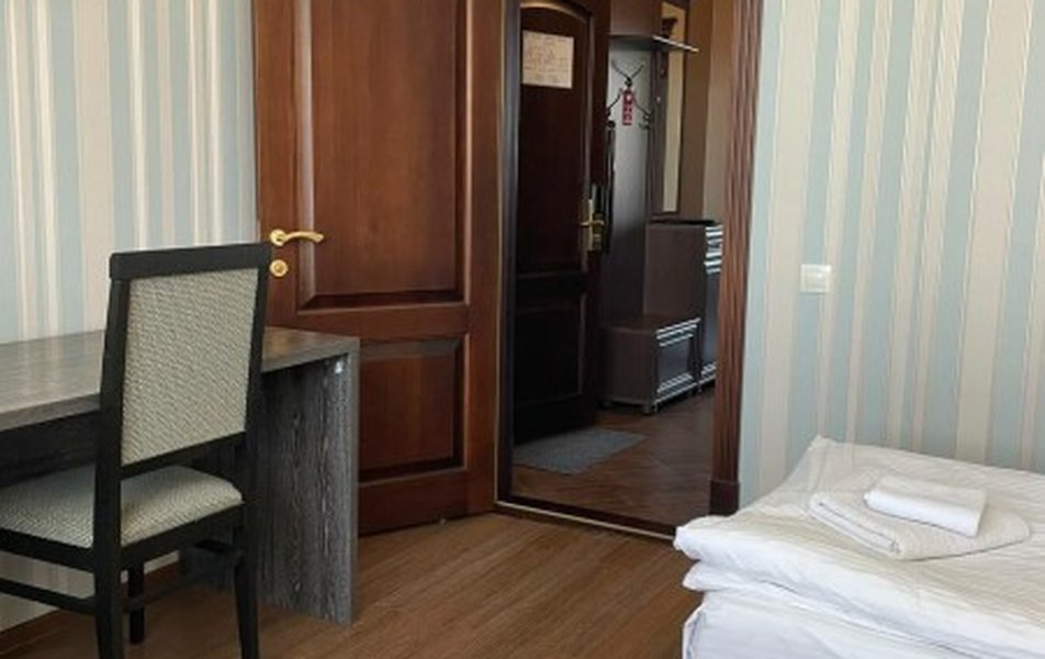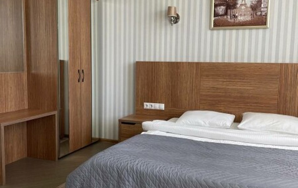 Стандартный 1-местный Количество комнат: 1-комнатный Тип номера: Стандартный Кол-во основных мест: 1 Мебель: вешалка, зеркало, кровать полутороспальная, прикроватная тумбочка, стол, стул Оборудование: кондиционер, телевизор, холодильник Санузел: с душем, туалетные принадлежности Сервис: Wi-Fi бесплатно, смена полотенец, смена постельного белья, уборка номера