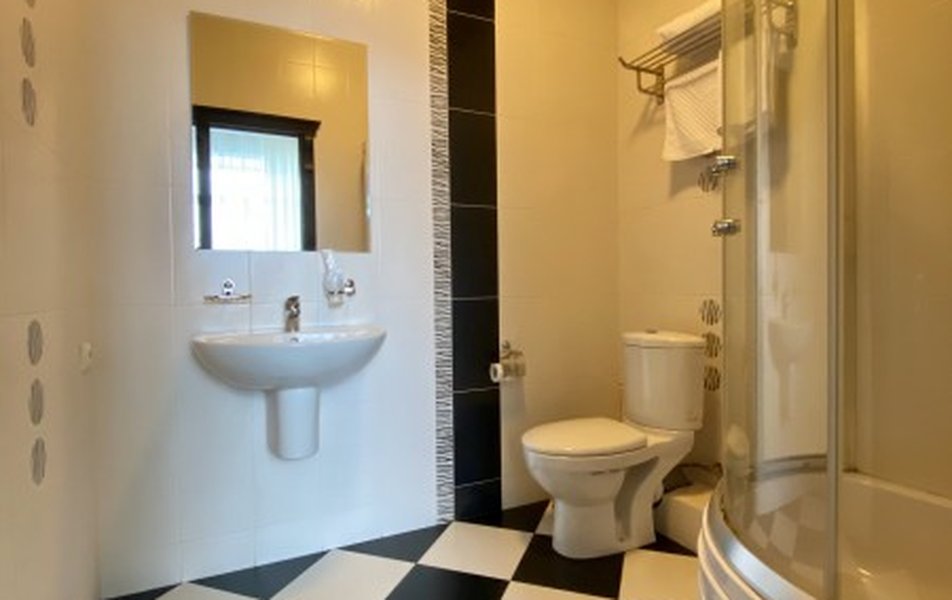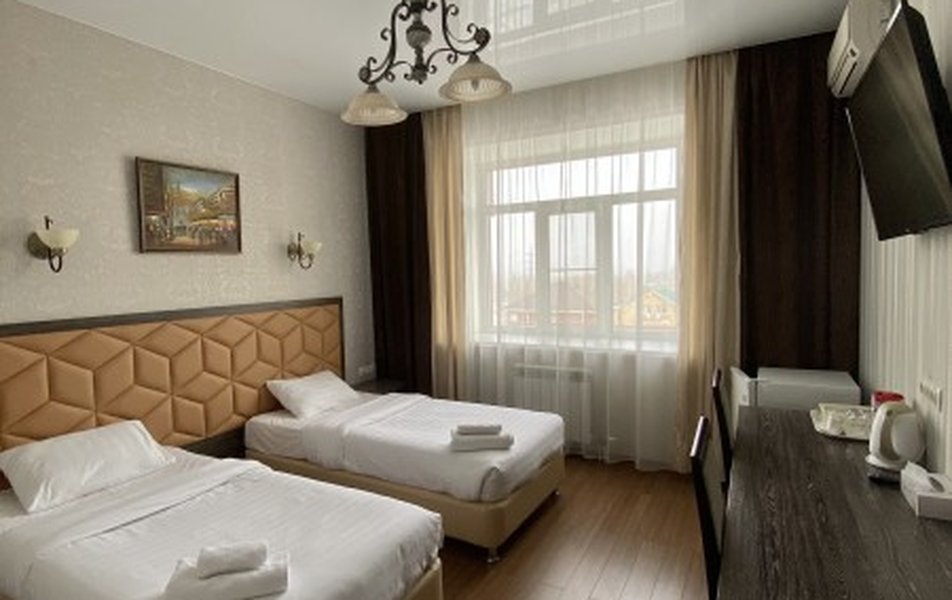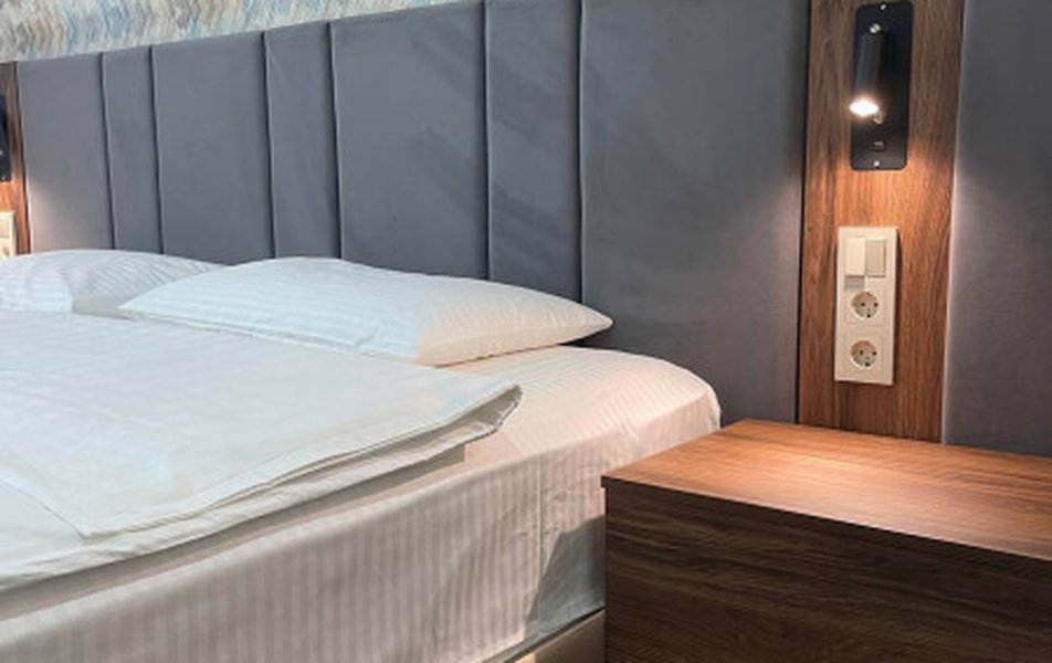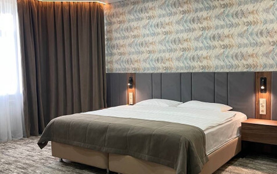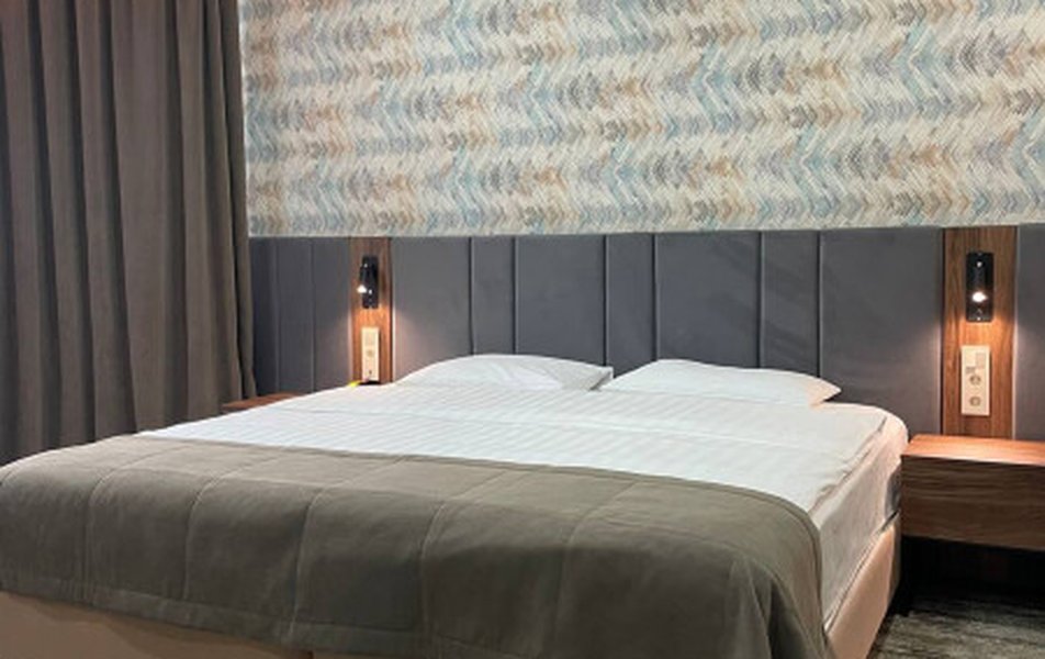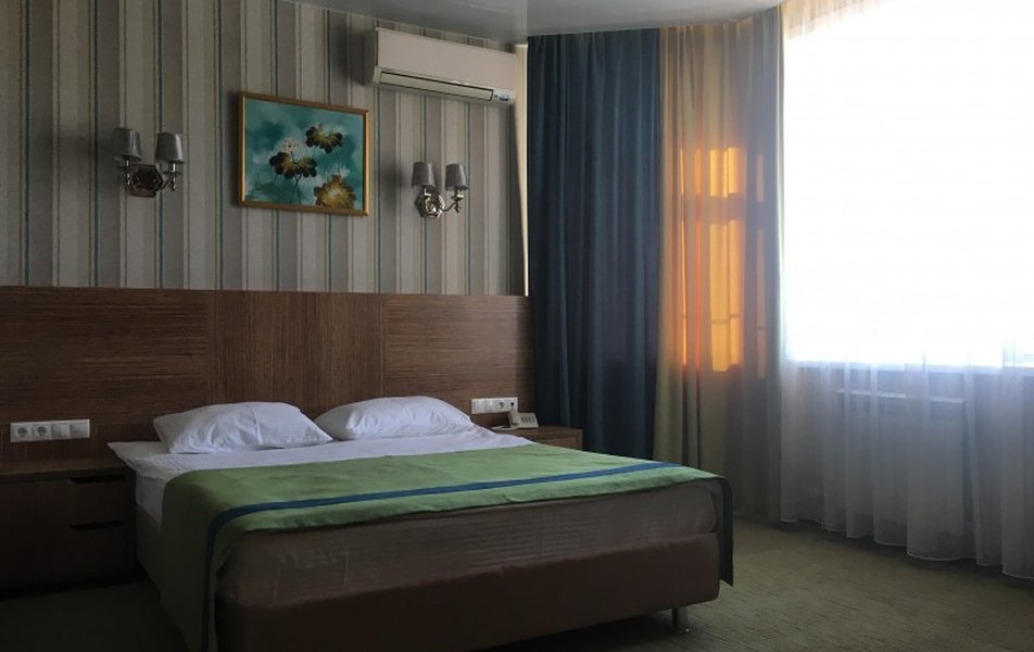 Стандартный 2-местный (DBL) Количество комнат: 1-комнатный Тип номера: Стандартный Кол-во основных мест: 2 Мебель: вешалка, зеркало, кровать двуспальная, прикроватные тумбочки, стол, стулья, шкаф Оборудование: кондиционер, сейф, телевизор, холодильник Санузел: с душевой кабиной, туалетные принадлежности Сервис: Wi-Fi бесплатно, смена полотенец, смена постельного белья, уборка номера