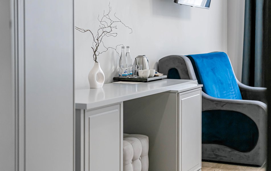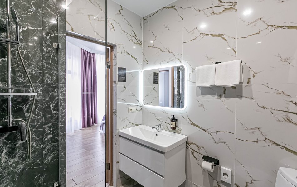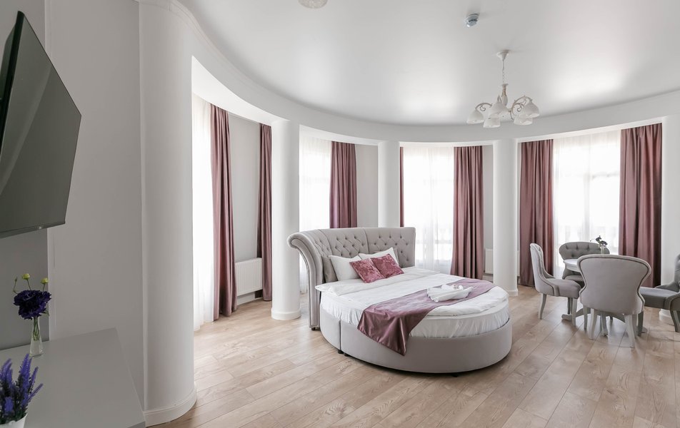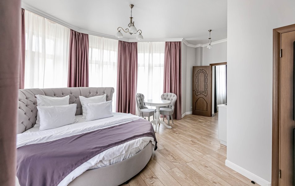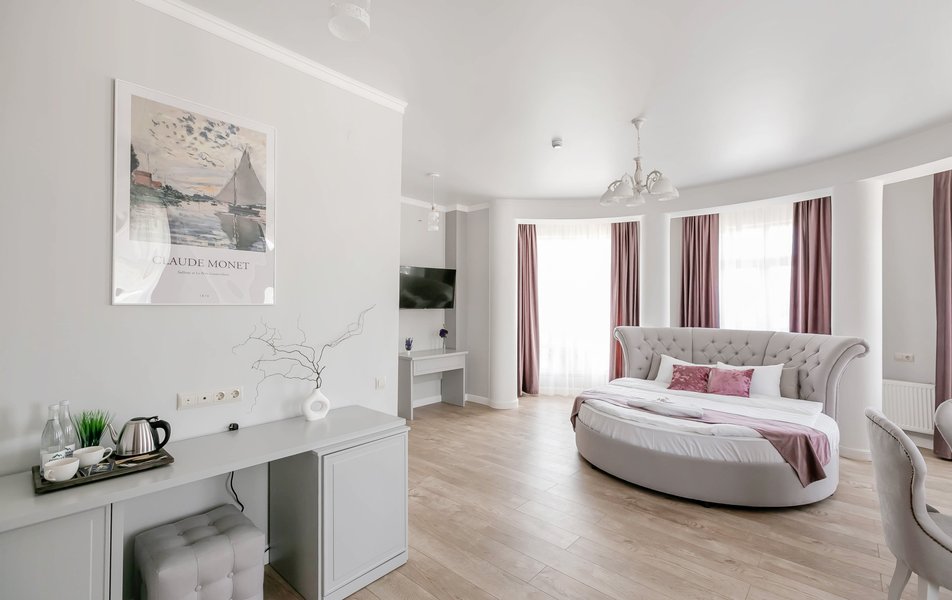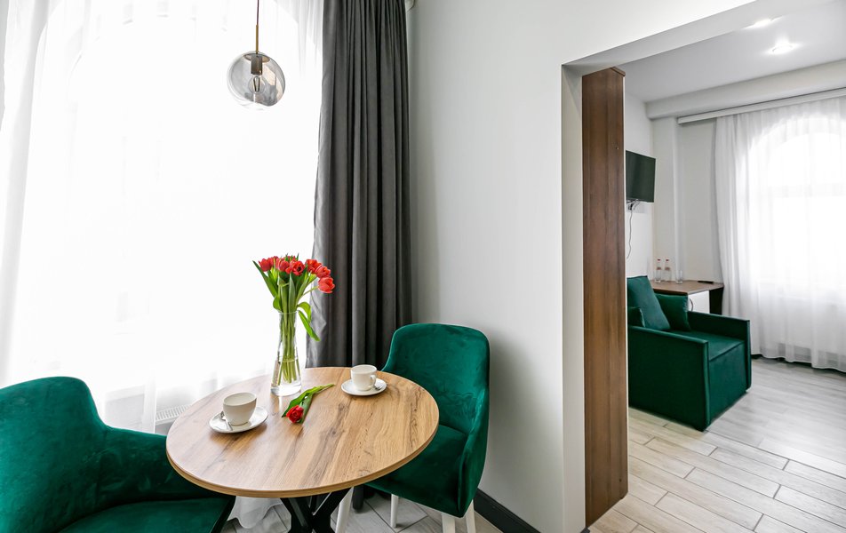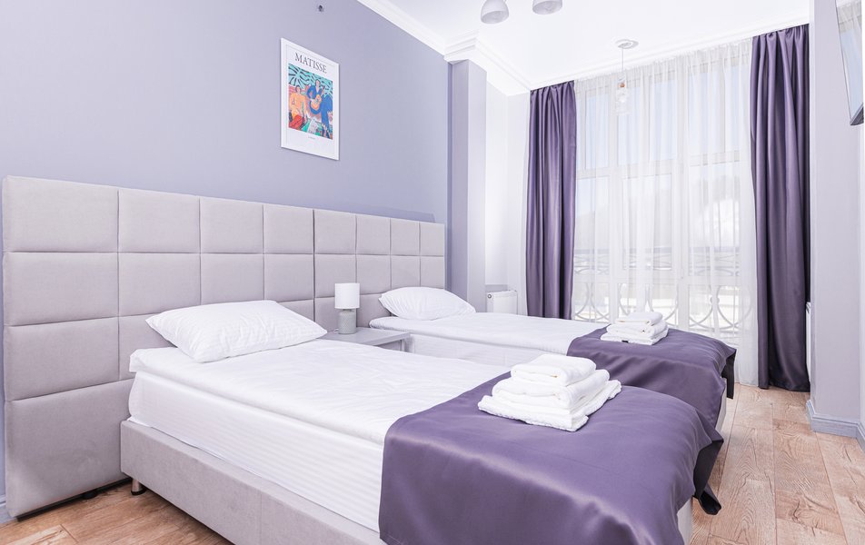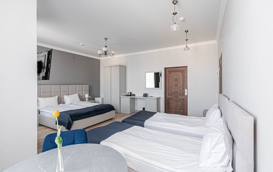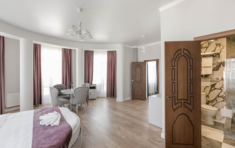 Люкс 4-местный 2-комнатный Количество комнат: 2-комнатный Тип номера: Люкс Вид из номера: на город Кол-во доп. мест: 1 Кол-во основных мест: 2 Мебель: диван, зеркало, кровати односпальные, кровать двуспальная, прикроватные тумбочки, стол, стулья, шкаф Оборудование: кондиционер, телевизор, чайный набор посуды, электрочайник Санузел: с душевой кабиной, туалетные принадлежности, фен Сервис: Wi-Fi бесплатно, смена полотенец, смена постельного белья, уборка номера