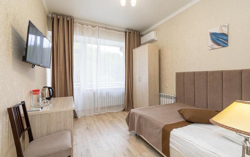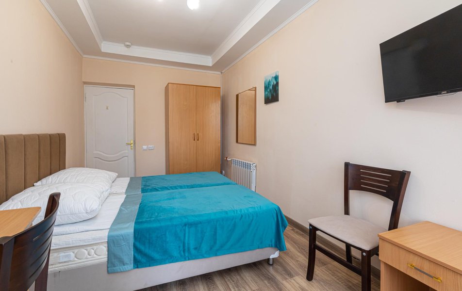 1 категория 1-местный 1-комнатный (корпус 4) Количество комнат: 1-комнатный Дополнительное место: еврораскладушка Кол-во доп. мест: 1 Кол-во основных мест: 1 Корпус: 4 Площадь (кв. м): 10 Мебель: вешалка, зеркало, кровать односпальная, прикроватная тумбочка, стол, стул, шкаф Оборудование: телевизор, холодильник, чайный набор посуды, электрочайник Санузел: с душем, туалетные принадлежности, фен Сервис: Wi-Fi бесплатно, смена полотенец, смена постельного белья, уборка номера