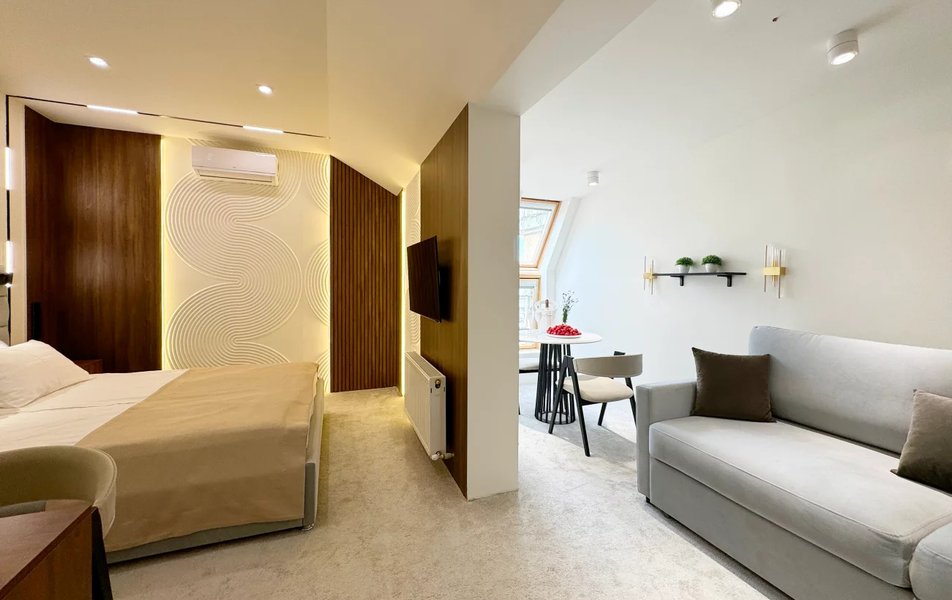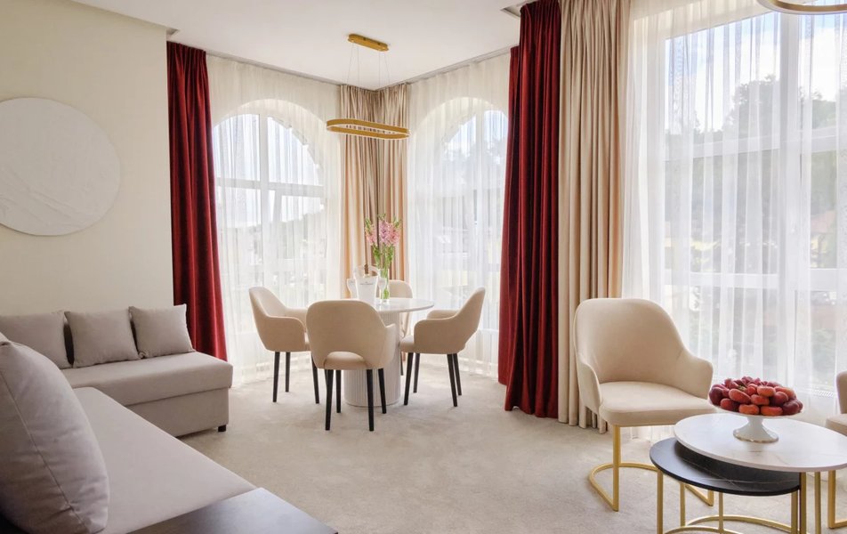 Решив отдохнуть в Кисловодске, мы выбрали гостиницу PANinter & Mineral spa в самом начале Курортного бульвара. Заранее созвонились с администрацией гостиницы, согласовали все условия (нам во все пошли навстречу), мы заказали через гостиницу трансфер из аэропорта Минеральные Воды. По прибытии в отель нас гостеприимно и очень радушно встретила администратор Ольга, что было приятно, заселили быстро и сразу выдали бесплатные талоны на разовое посещение аква-зоны (сауна, хаммам, бассейн и чай с медом). Что касается проживания, великолепный двухкомнатный номер, все необходимое для проживания в наличии, уборка в номере каждый день дважды смена белья, полотенца каждый день новые. Каждый день пользовались оздоровительными процедурами, которые, в отличие от санаториев, можно было согласовывать на удобное для нас время. Также в гостинице есть свой бювет с натуральной минеральной водой. Специалисты Mineral spa квалифицированные и опытные. Отдельно хотели бы поблагодарить массажистов Динислама, Владислава, Татьяну и Жанну, а также девочек Рамину, Арусю, Лилию и Саиду работающих на спа-процедурах, они действительно мастера своего дела. В округе большое количество кафе и ресторанов. Положительно оцениваем находящееся в двух шагах кафе «Шашлычная №1». Вкусно, быстро, недорого, обходительный и доброжелательный персонал. Наверное гвоздем нашего пребывание явилась обширная туристическая программа. Все это благодаря Георгию (именно он встретил нас в аэропорту). Попутешествовали и посмотрели с его подачи незабываемые просторы Кавказа. Всегда обходительный, интересный собеседник, готовый многое рассказать из истории посещаемых мест, культуры проживающих народов. Поездка на комфортабельном автомобиле в самые запоминающиеся места. А еще Георгий предоставлял возможность вкусно и недорого поесть на природе или в ресторанах национальной кухни горских народов. На 5 . Из пожеланий на будущее (а мы точно вернемся) - хотелось бы иметь в номере несколько больших размеров холодильник для охлаждения приобретенных в городе фруктов, овощей и прохладительных напитков. Спасибо всем тем, кто сделал наш отдых великолепным и запоминающимся надолго.